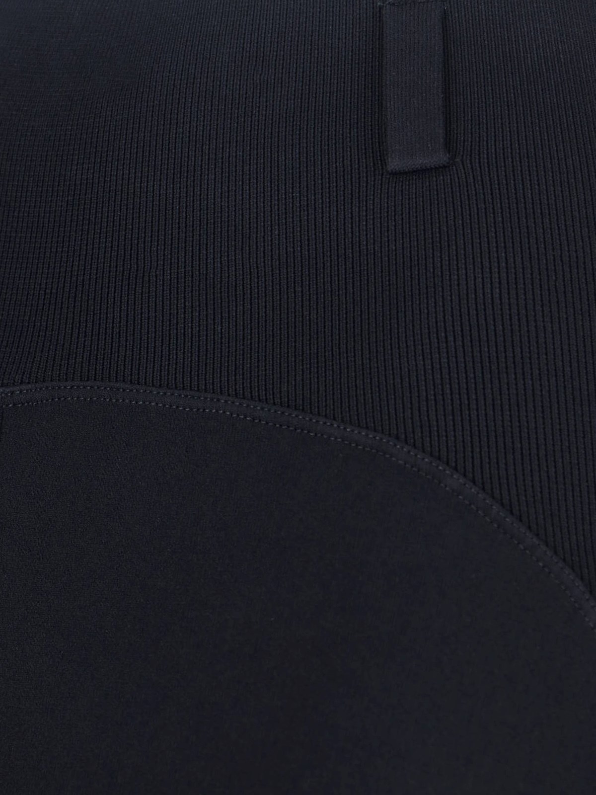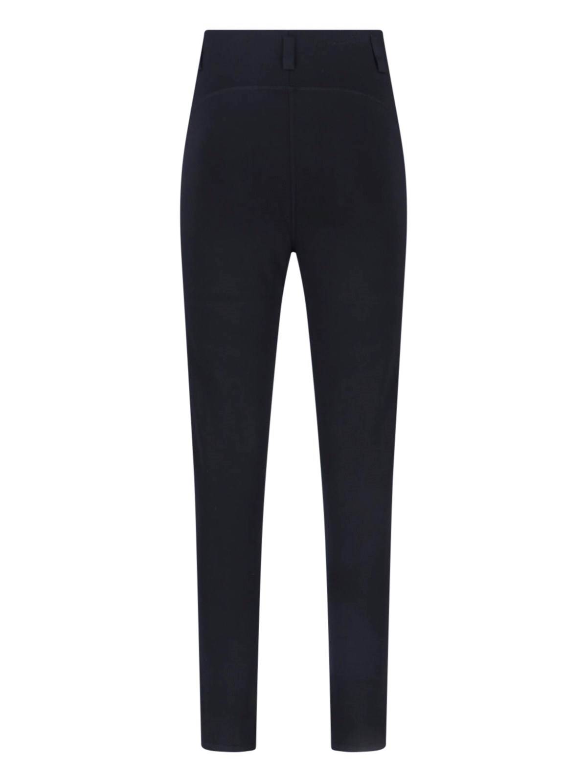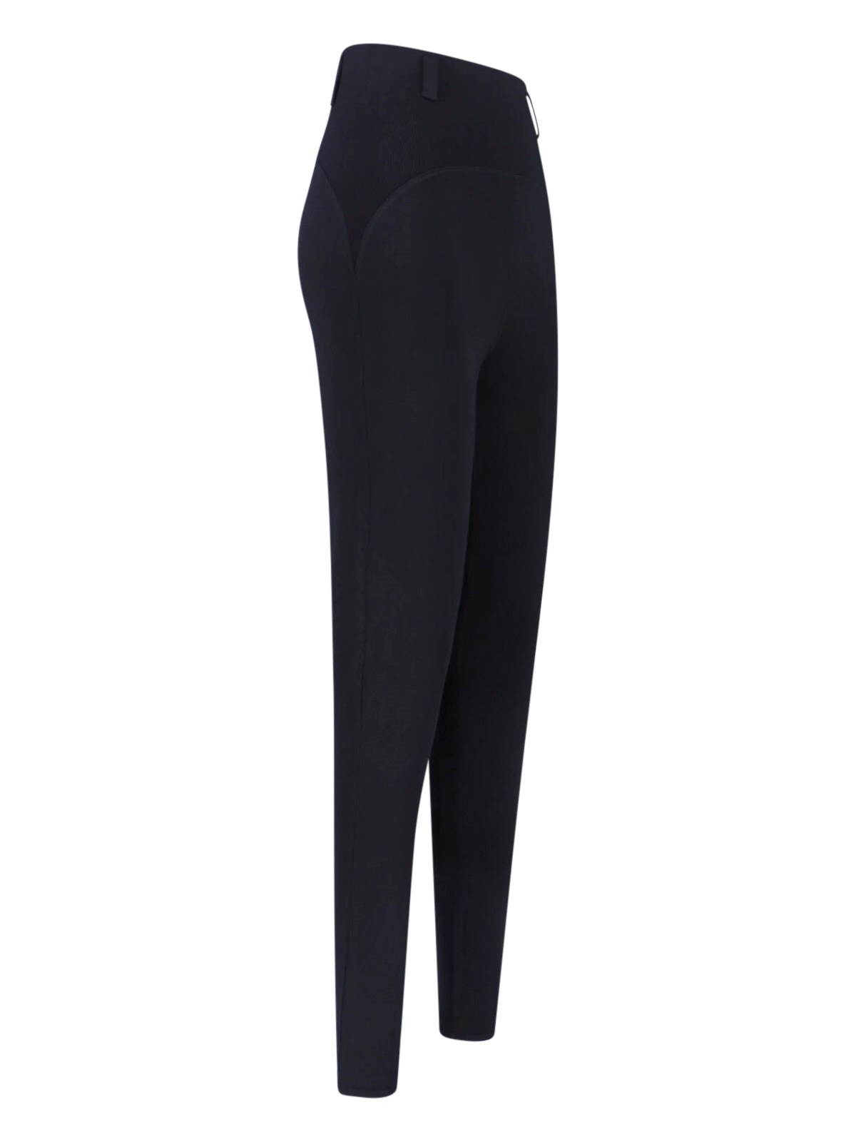 Alaia high-waisted leggings in black viscose blend, belt loops, ribbed details, slim leg.