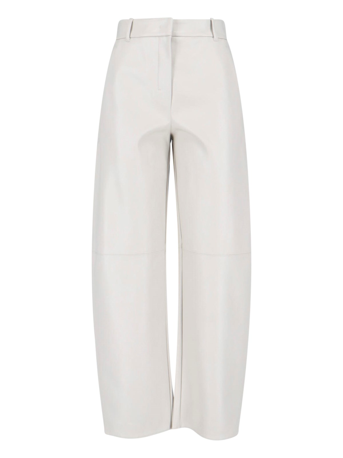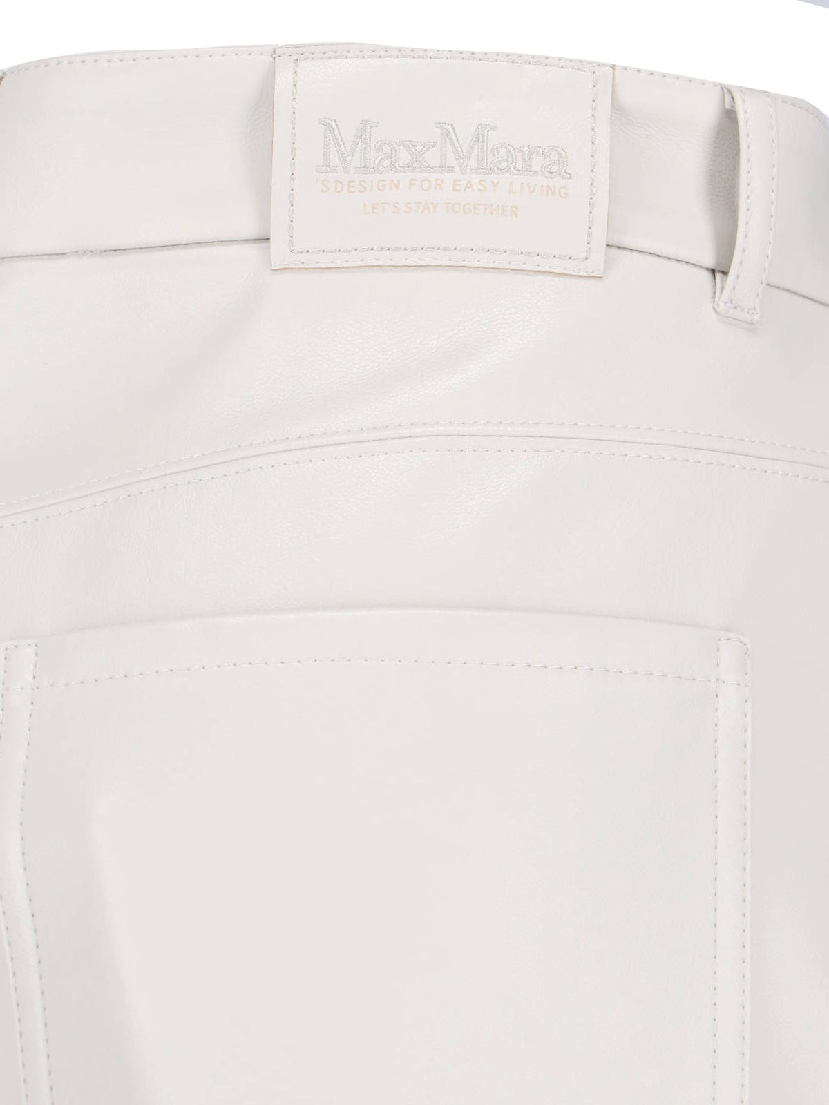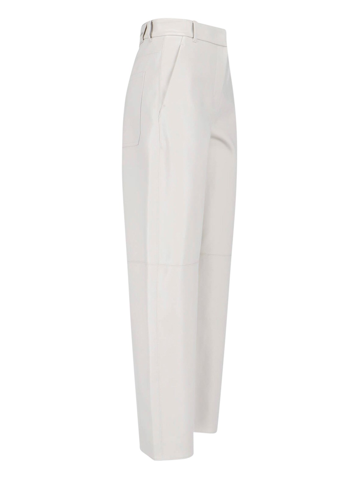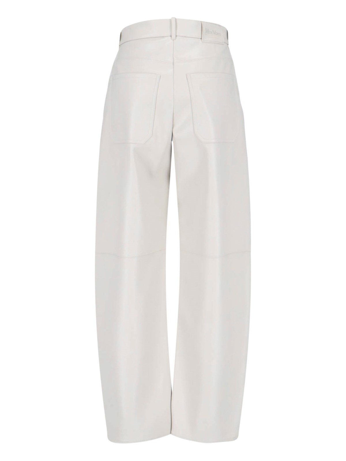 Barrel "S Max Mara wide pants in white faux leather, mid waist, zip and hook closure, belt loops, two slanted side pockets, two back pockets, back logo patch, wide leg.