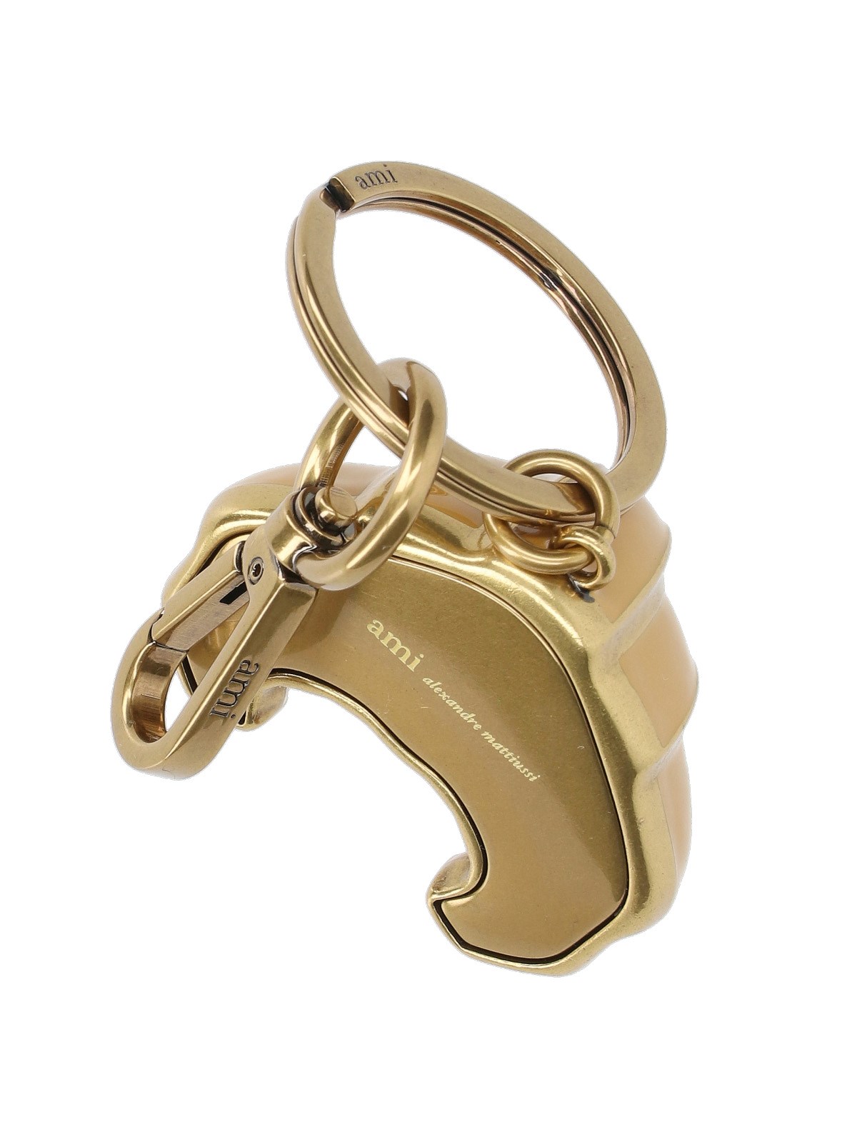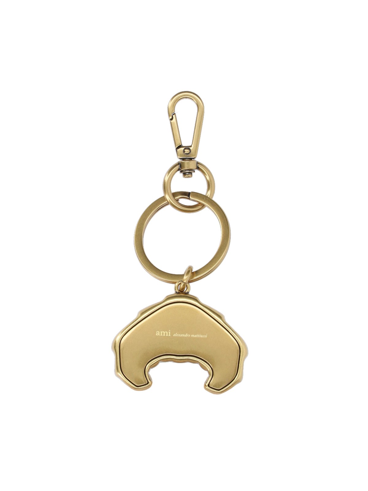 Ami gold metal "Croissant" keyring charm, keyring ring, snap hook closure, logo detail engraved on the back.