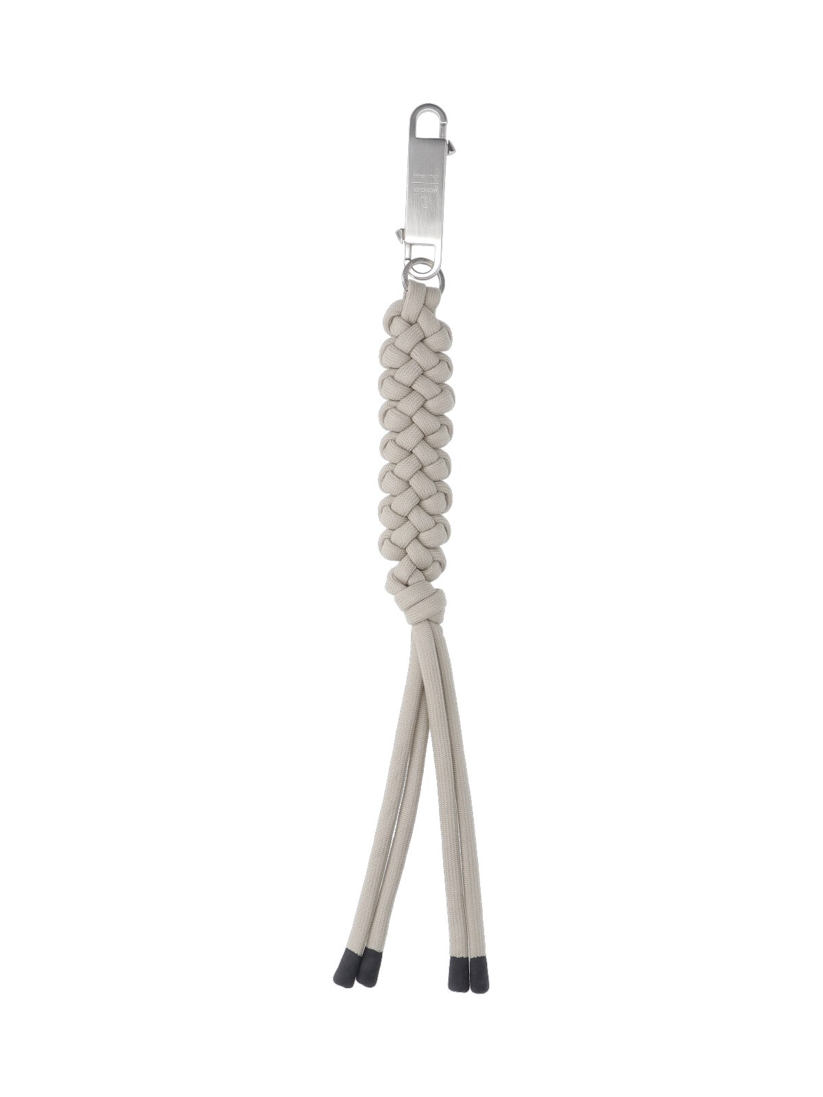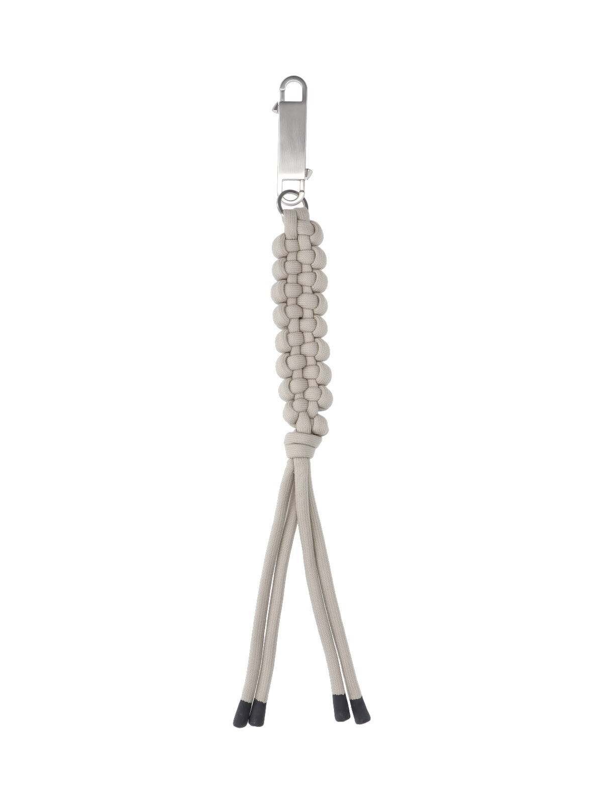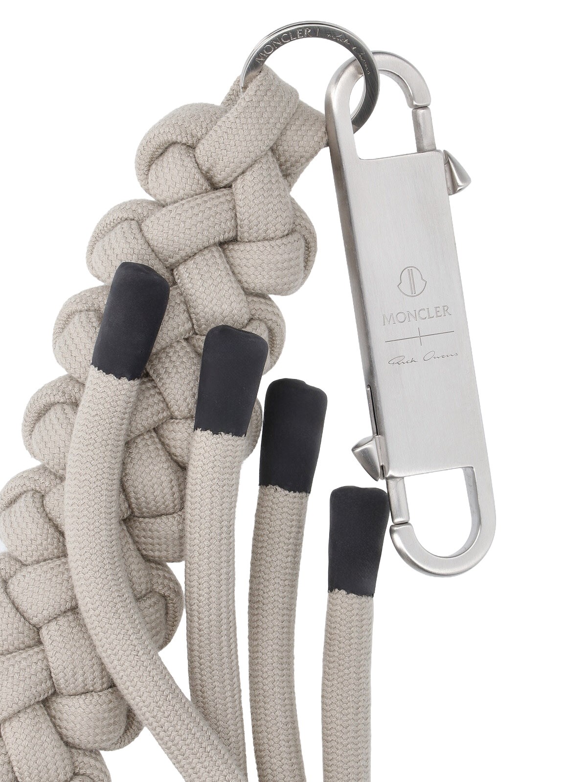 Moncler + Rick Owens maxi keychain charm in beige fabric and silver metal, top silver metal snap hook.