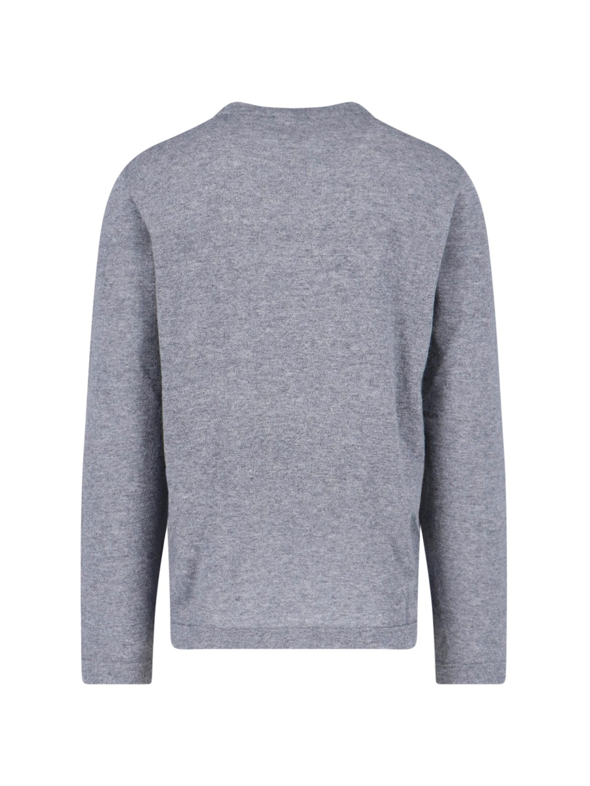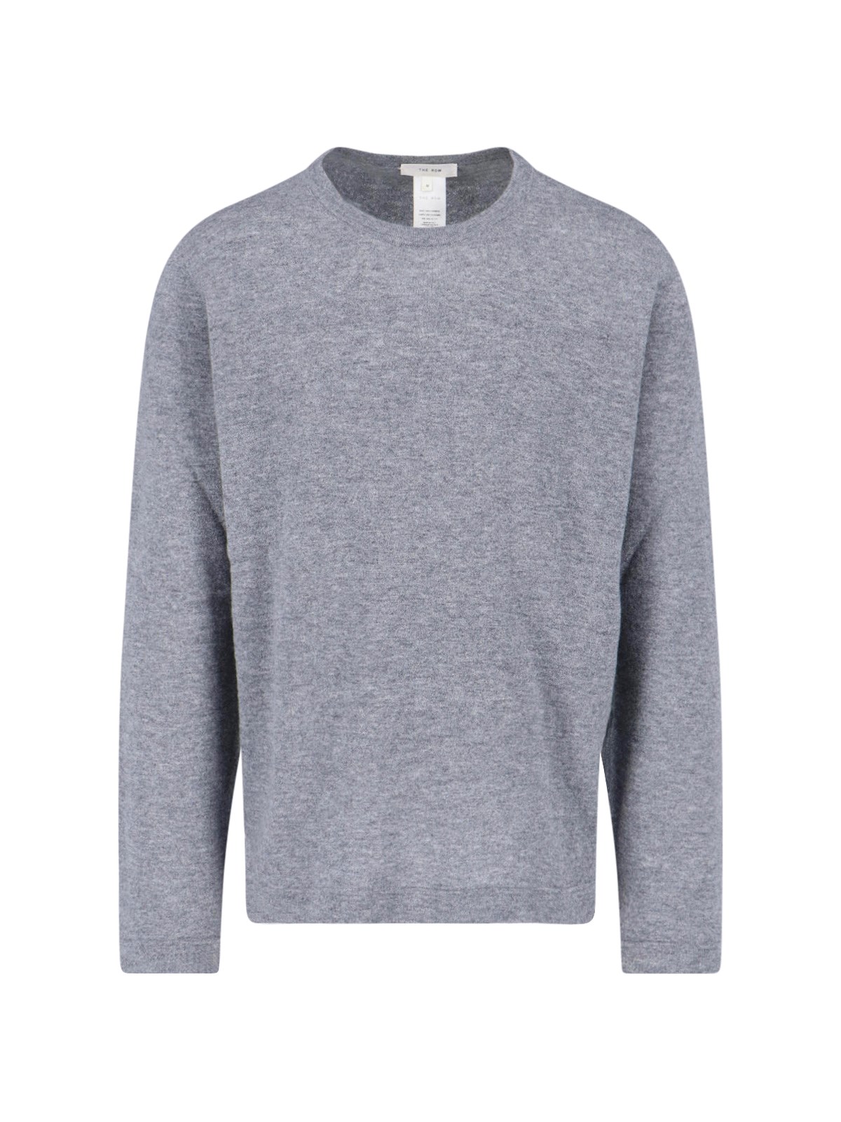 The Row "Casas" grey cashmere sweater with ribbed crew neck, logo label detail, ribbed trims, straight hem.