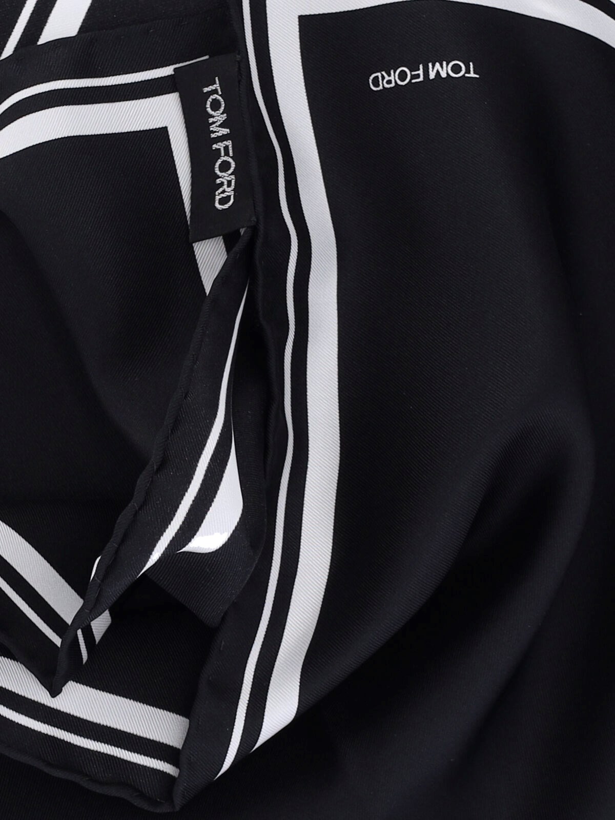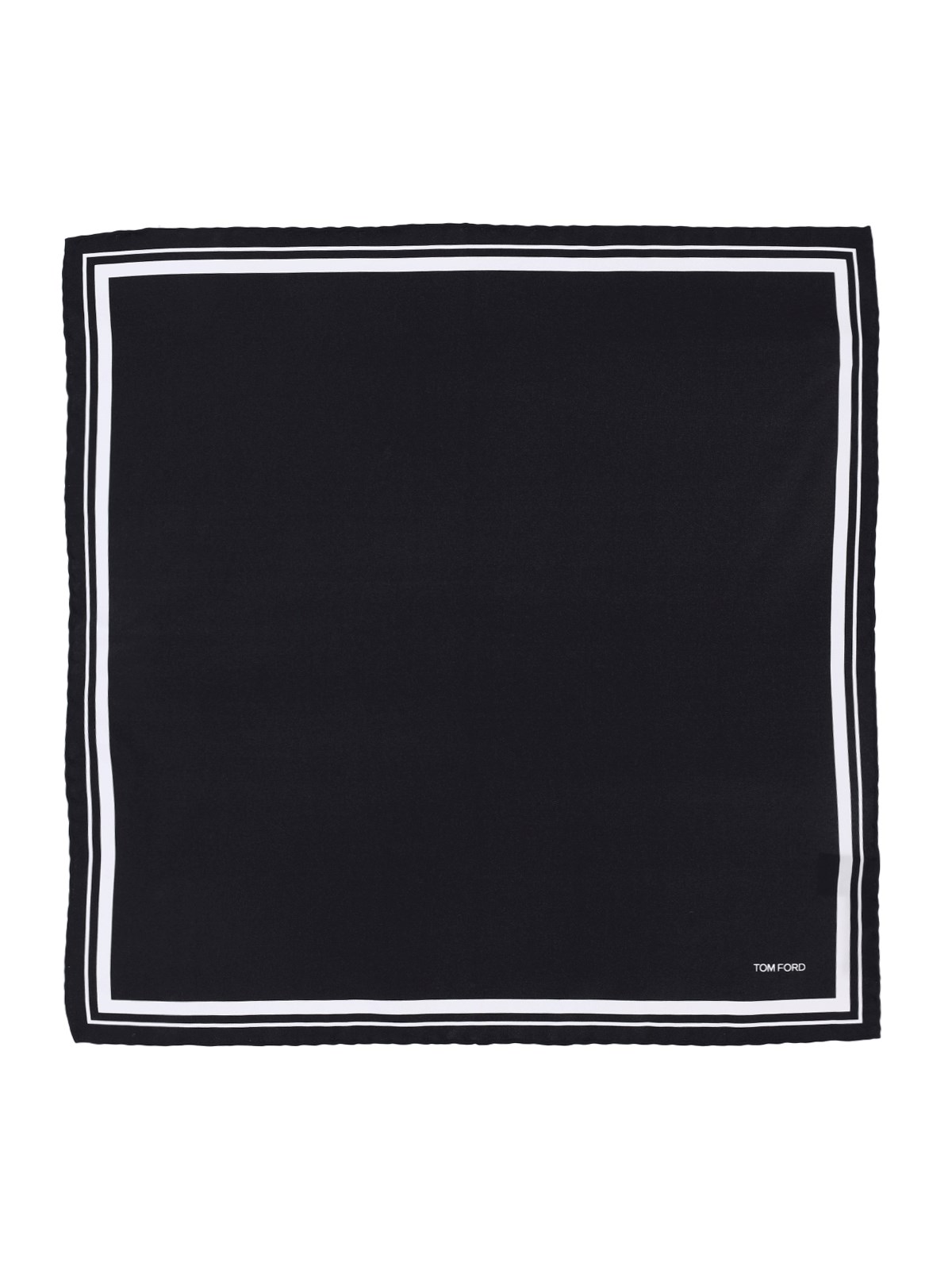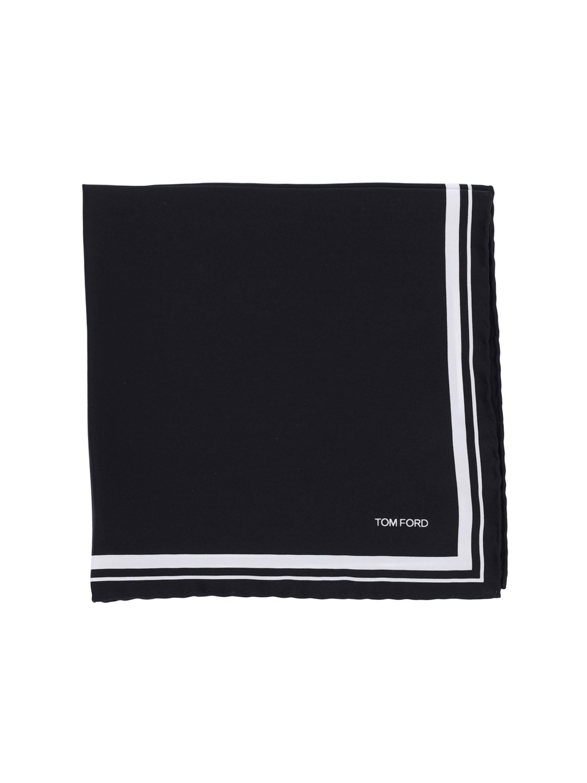 Tom Ford black silk twill pocket handkerchief with contrasting details, front logo print.