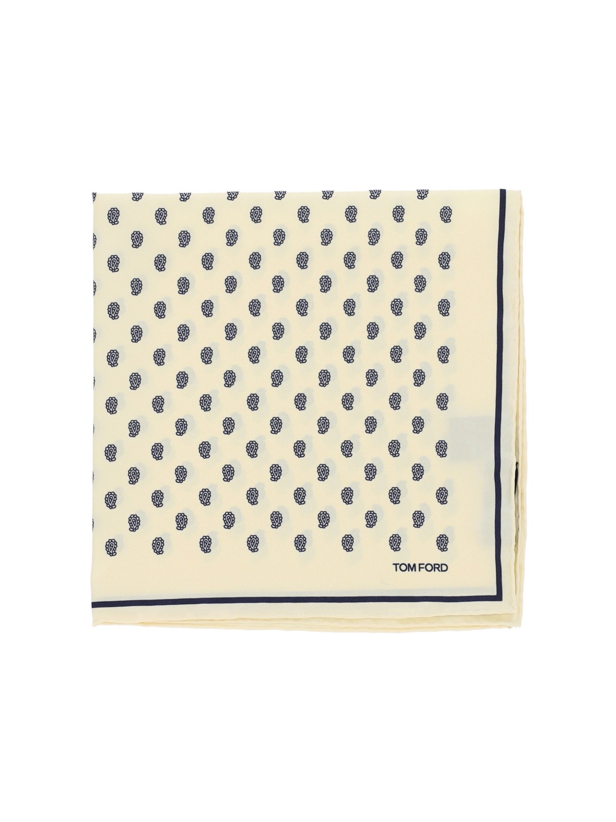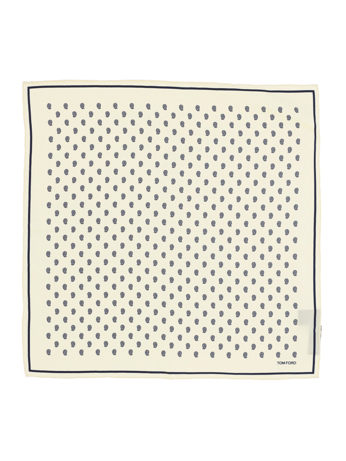 Tom Ford silk twill pocket handkerchief with cream and all-over print, front logo print.