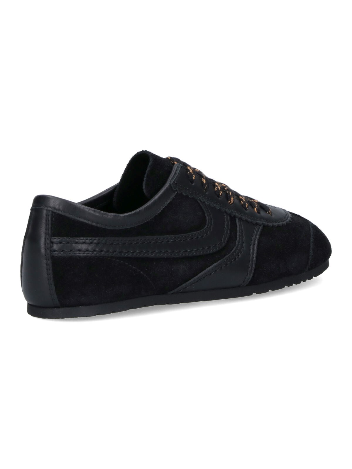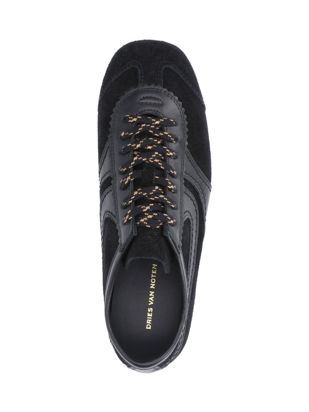 Dries Van Noten black suede sneakers with tone-on-tone calf leather trim, round toe, lace-up closure, logo embossed on the tongue, rubber sole.