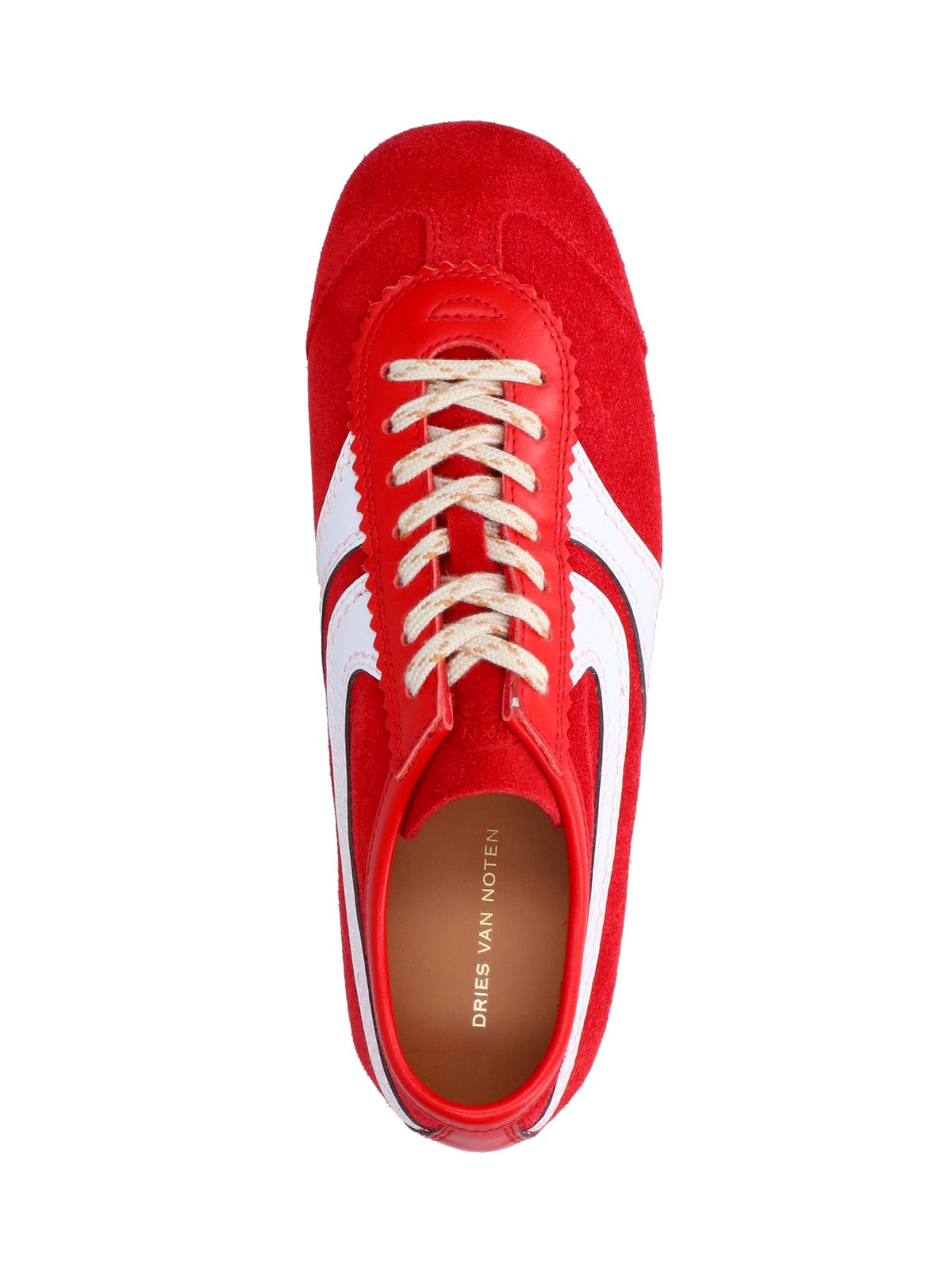 Dries Van Noten red suede sneakers with round toe, contrast laces, logo embossed on the tongue, contrast trim, rubber sole.
