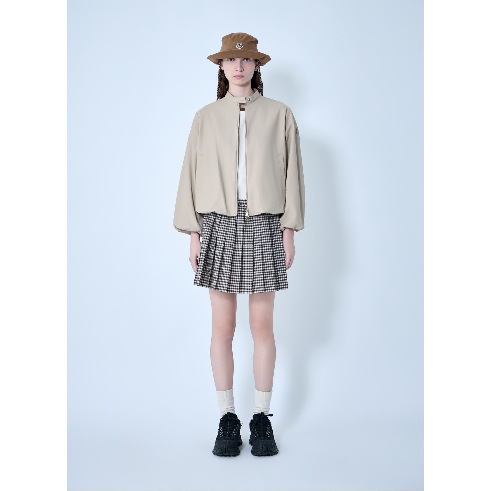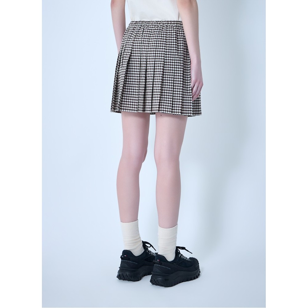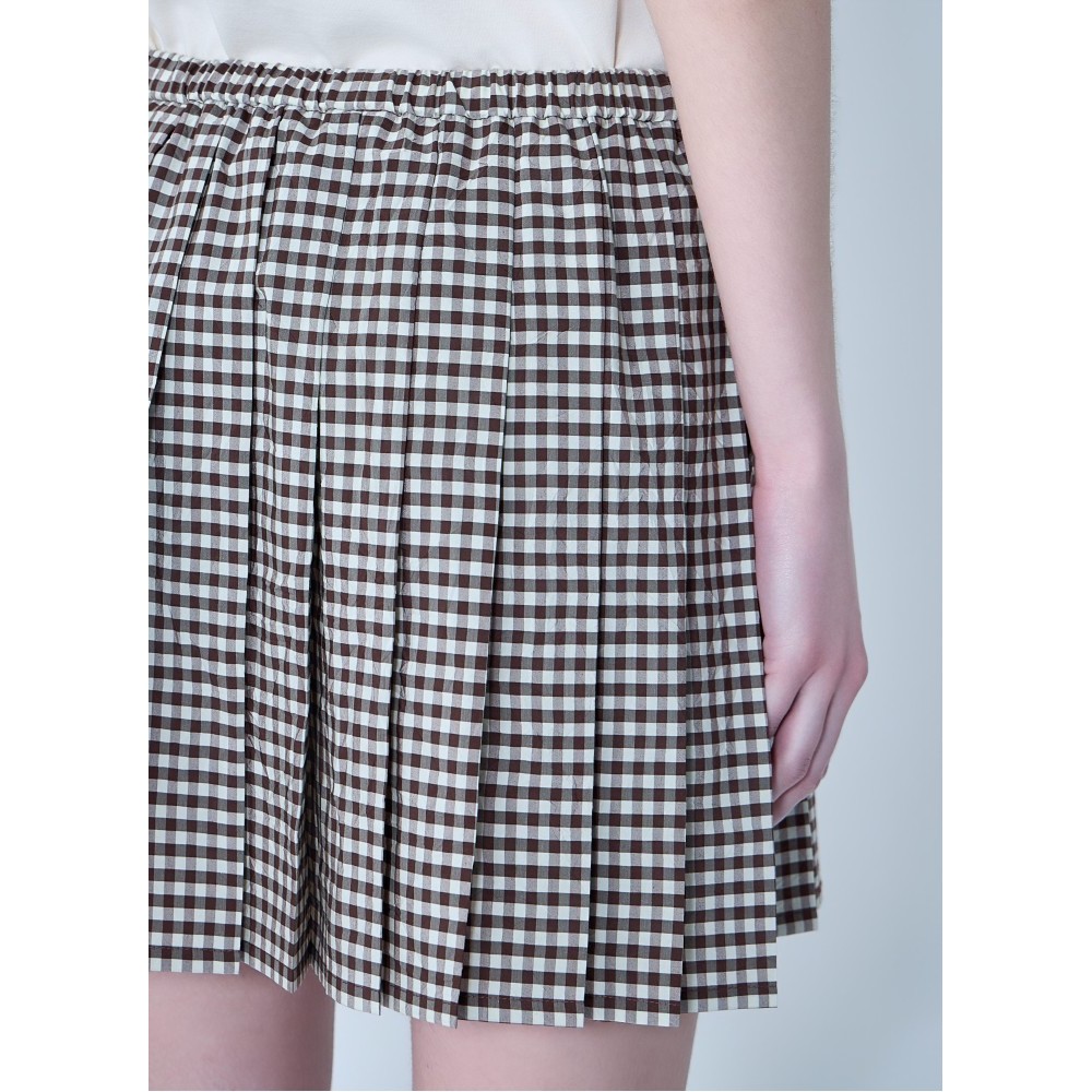 Mini skirt with all-over pleated construction in smooth weave.