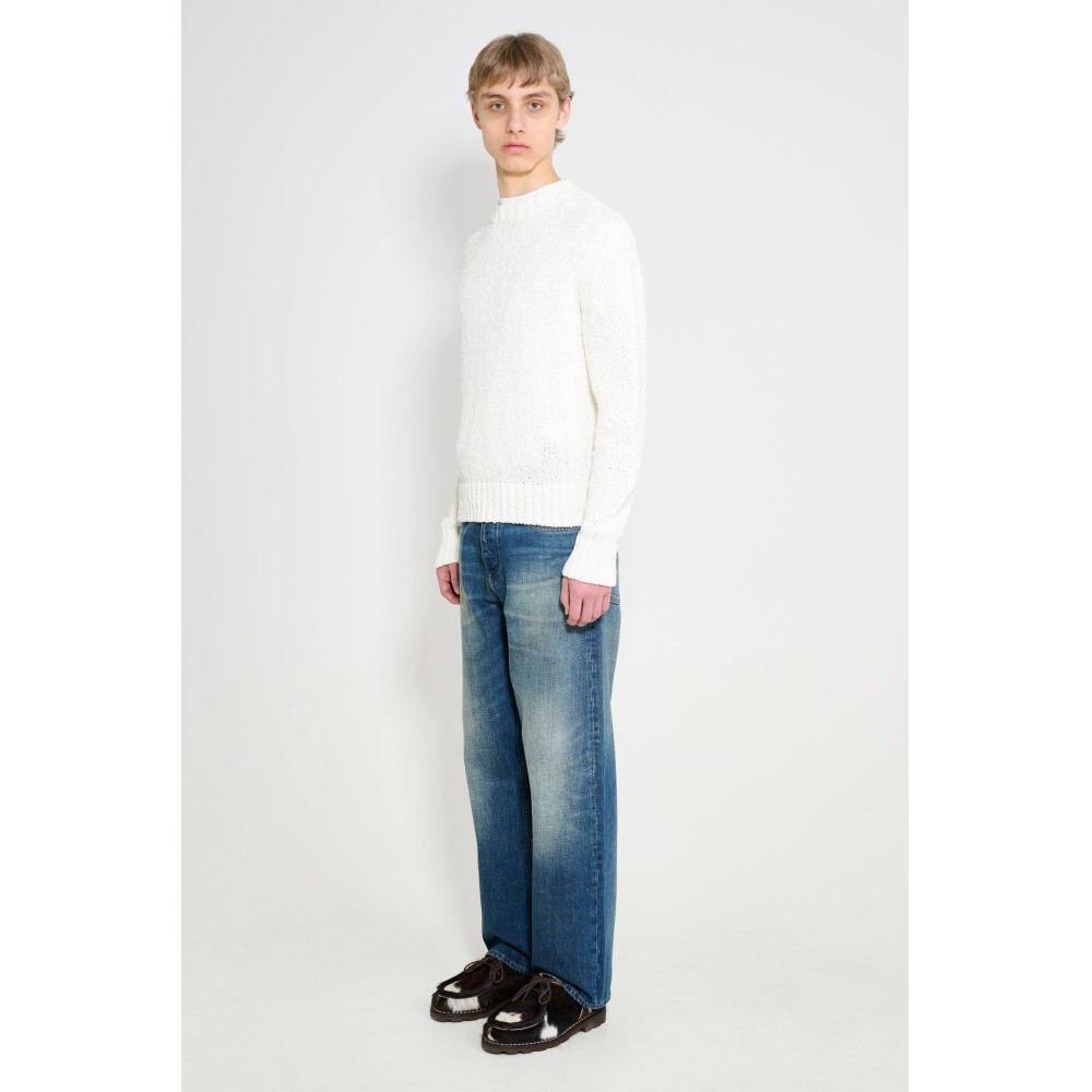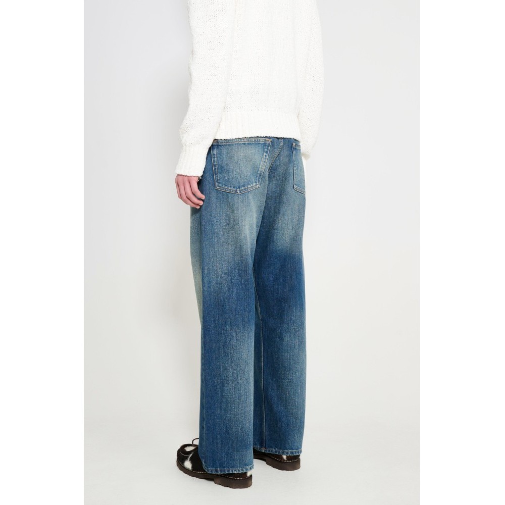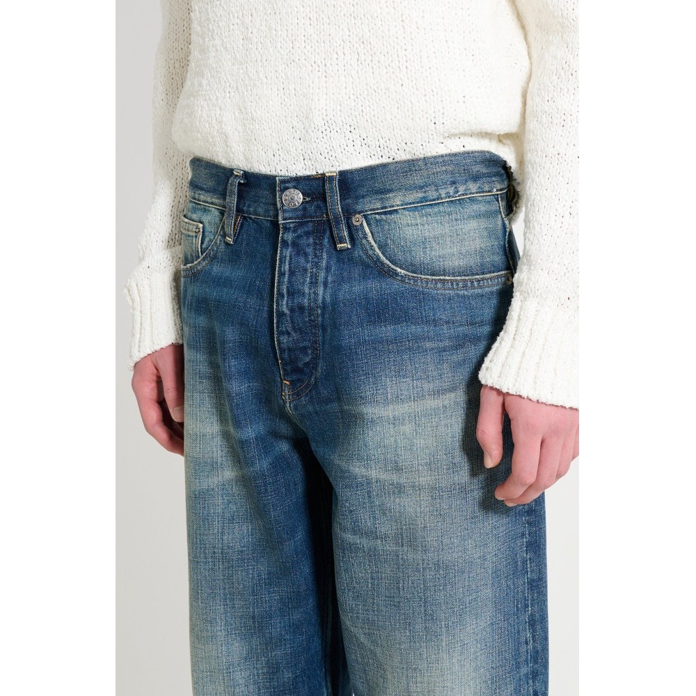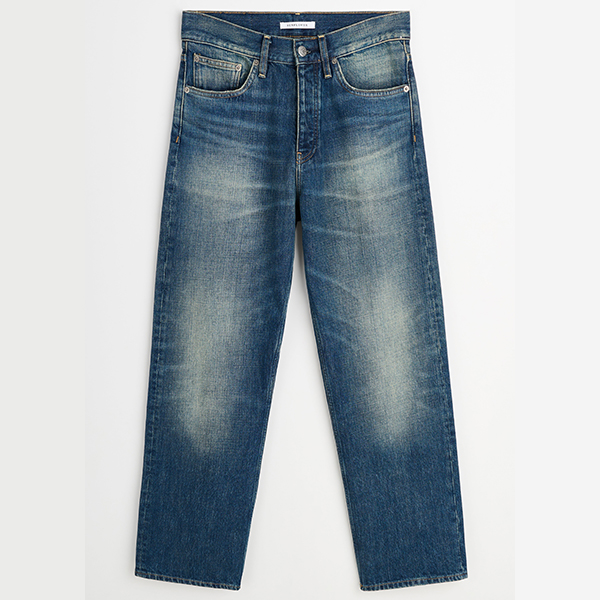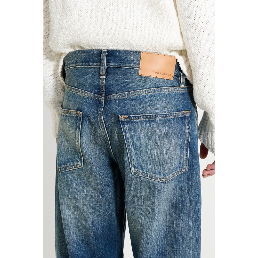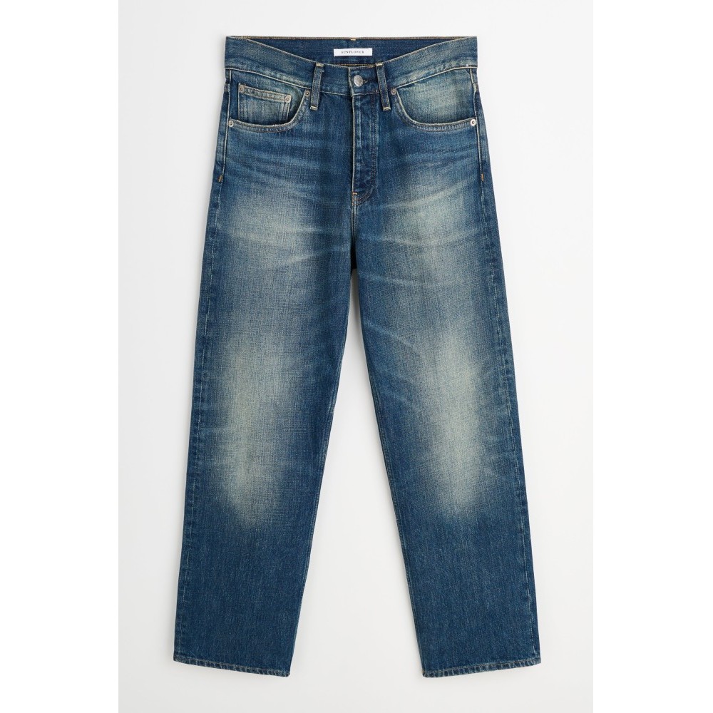 Loose jeans from Sunflower. Cut with a relaxed rise and straight leg in a deep blue vintagekorea wash. Designed with classic five-pocket construction and a button fly. Finished with metal hardware and a branded leather patch at the back waist.