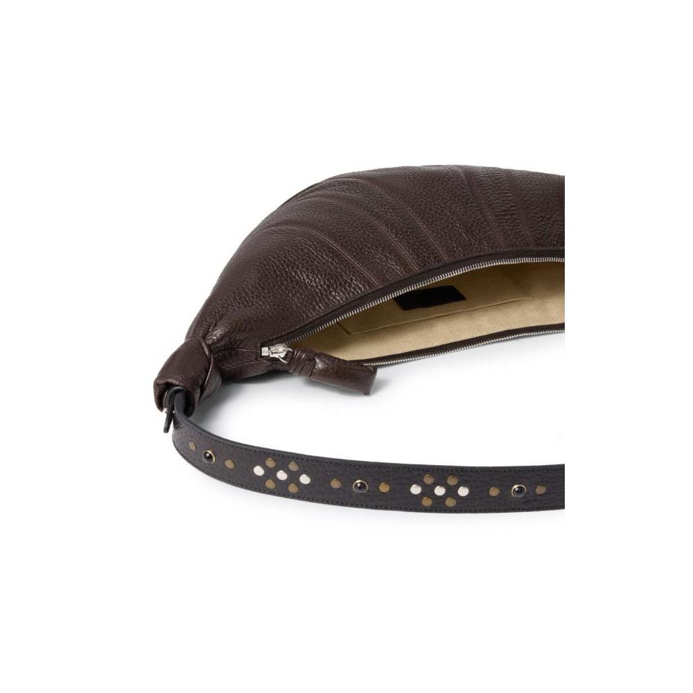 Description : Shoulder bag, single handle, leather handle, grained leather, zipper closure, visible topstitching, padded texture.