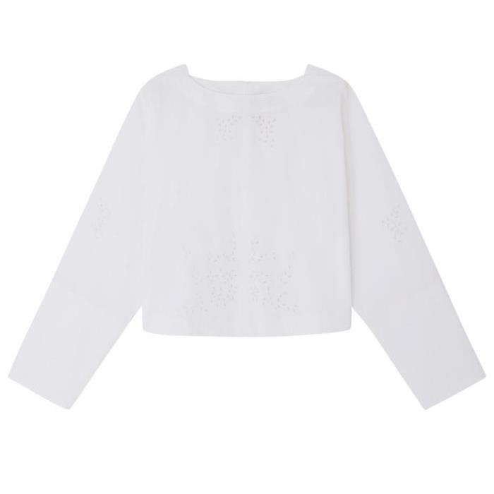 Description : Boatneck, long-sleeved, front panel / front paneling, embroidered details.