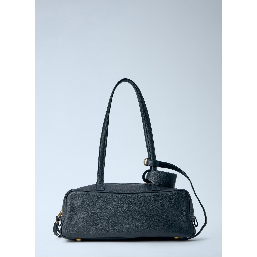 Rectangular shoulder bag in pebbled leather.