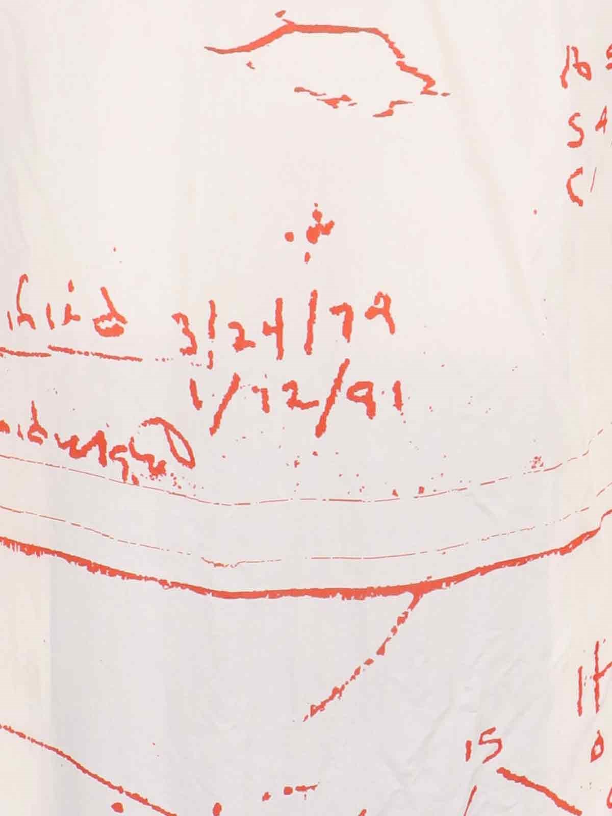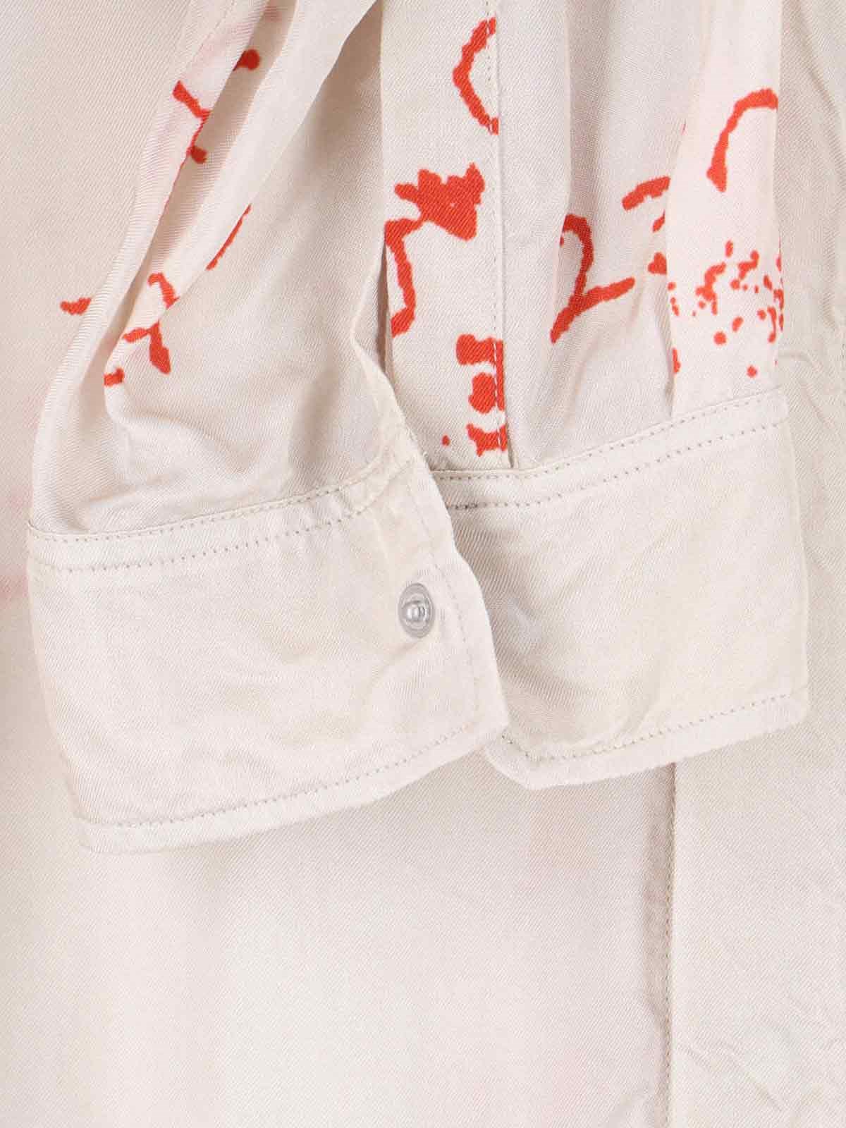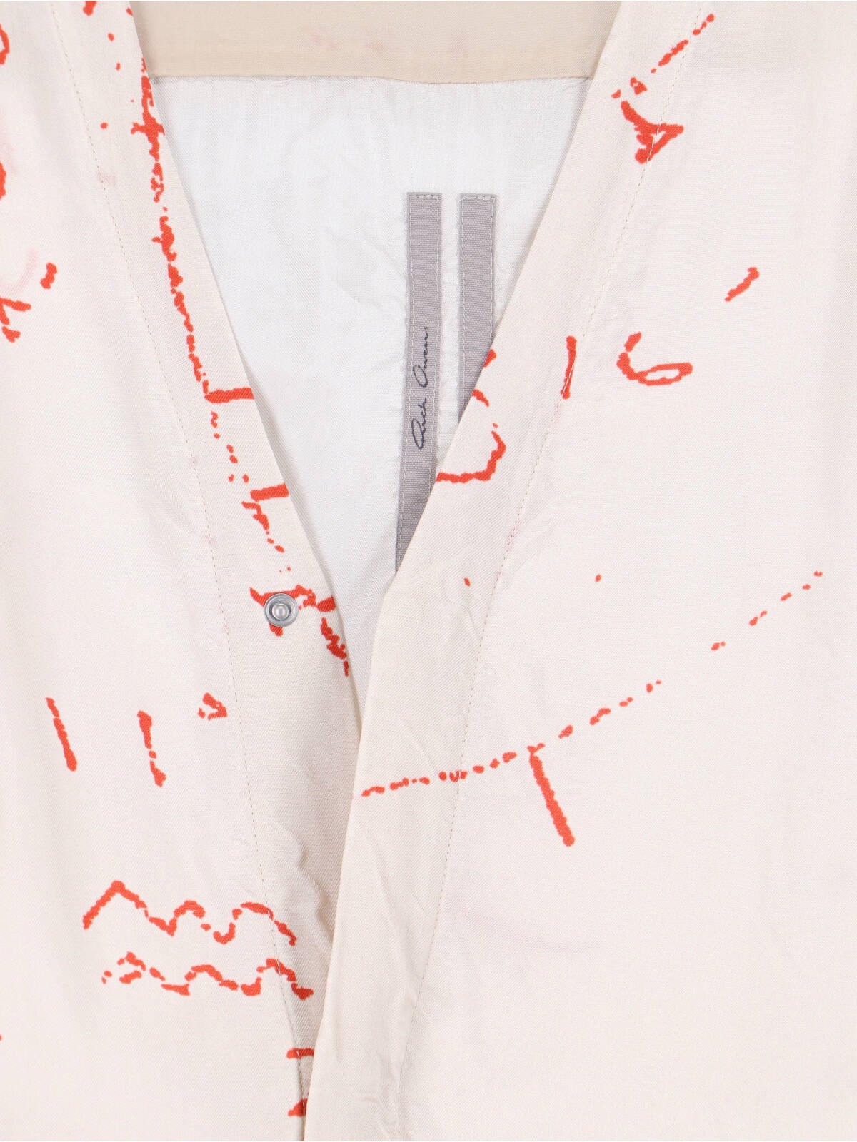 Rick Owens viscose cream shirt with V-neck, all-over contrasting printed details, long sleeves, curved hem.