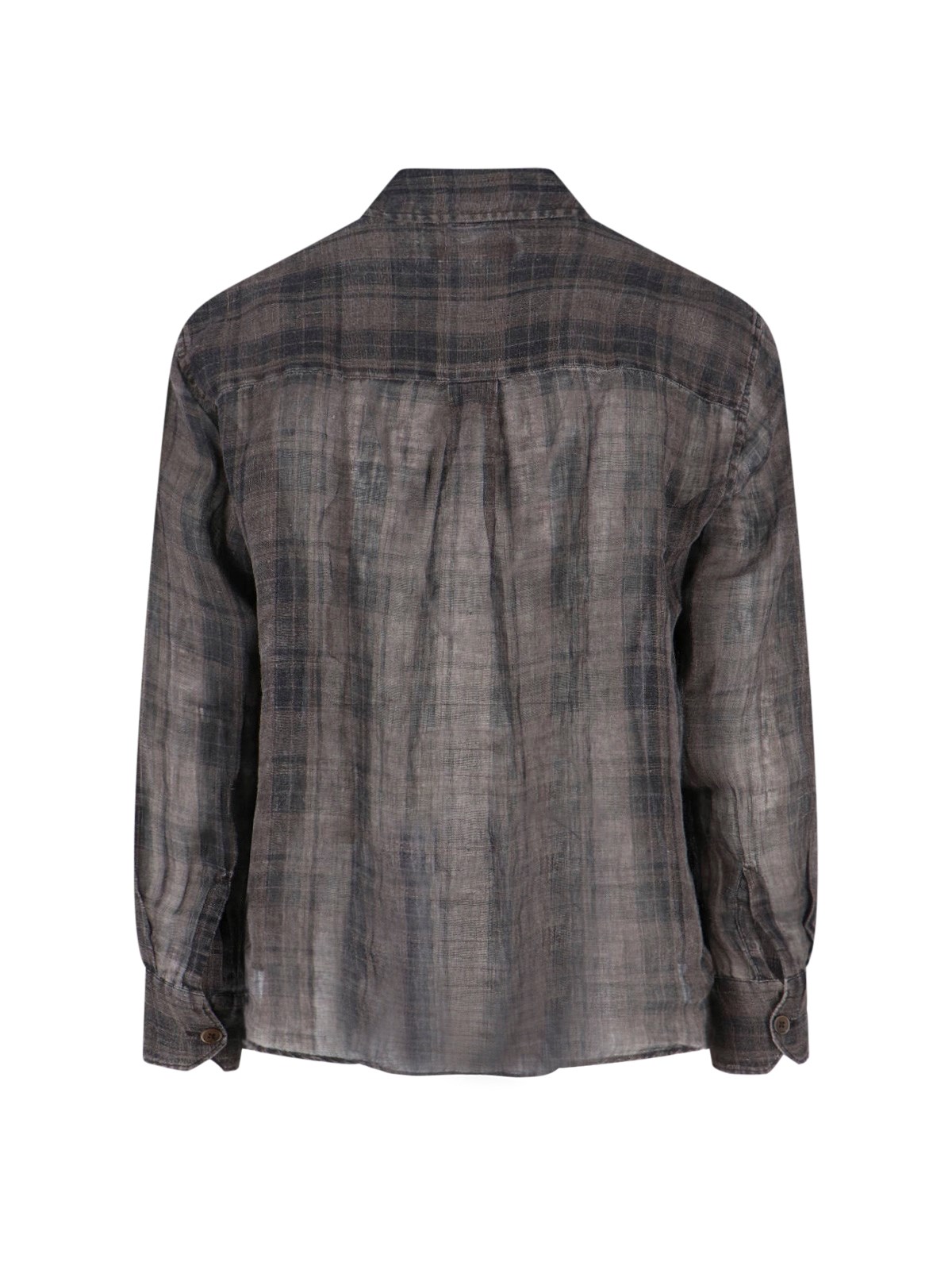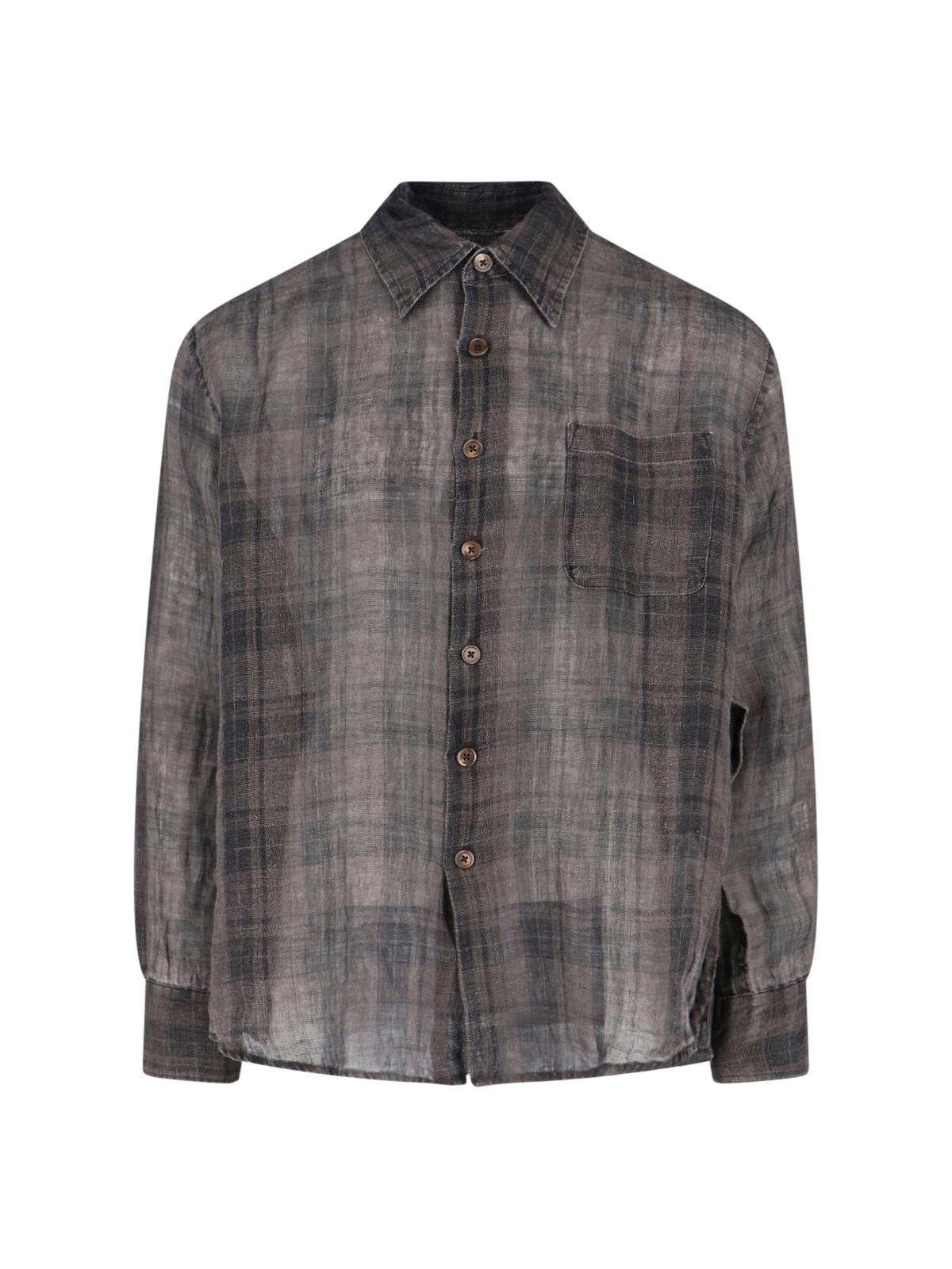 Our Legacy brown linen "Above" shirt with all-over check pattern, collar, button closure, long sleeves, front pocket, button cuffs, straight hem.