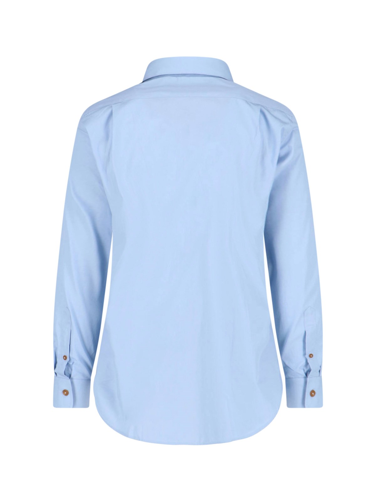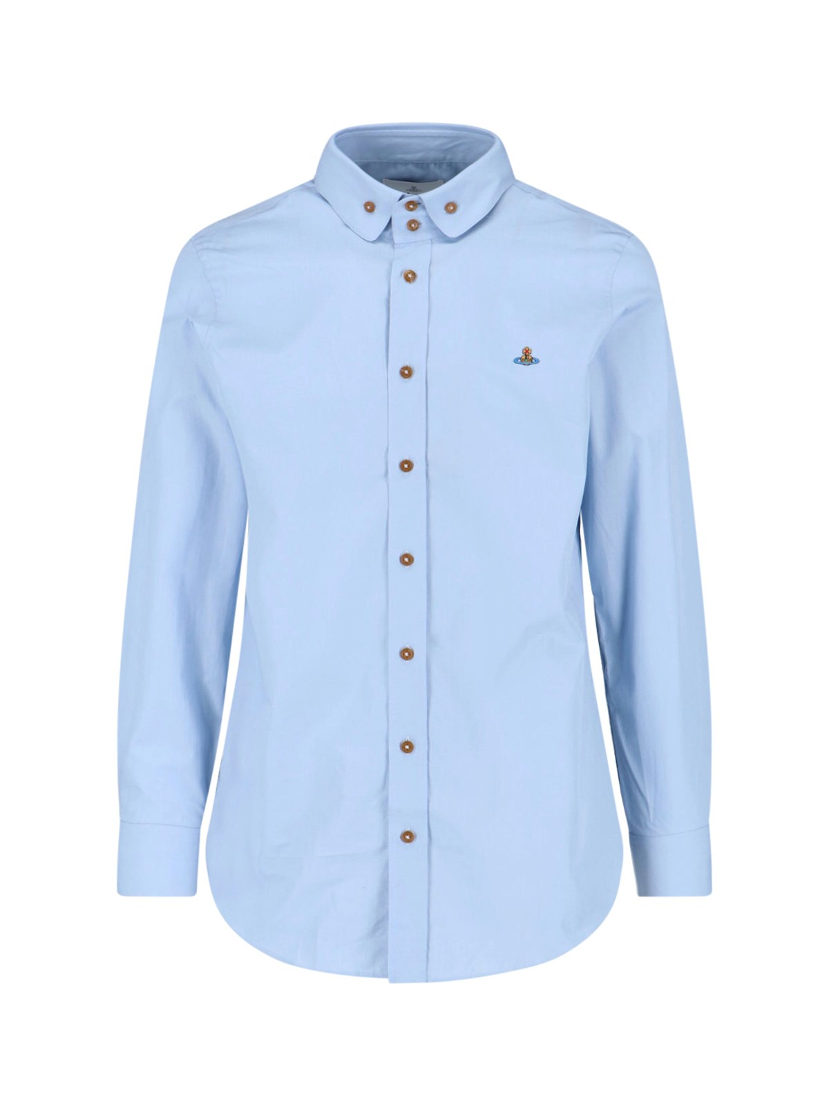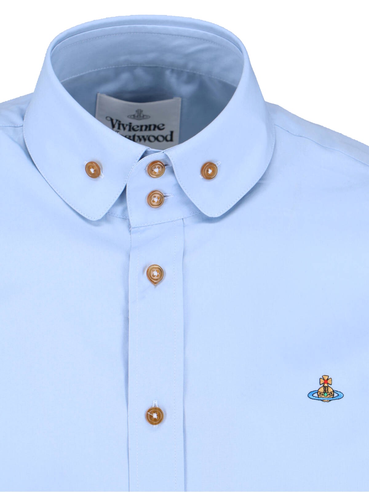 Vivienne Westwood "Two Button Krall" shirt in light blue cotton with button collar, button closure, long sleeves, multicolor "orb" logo embroidered on the front, button cuffs, curved hem.