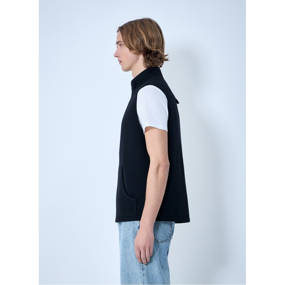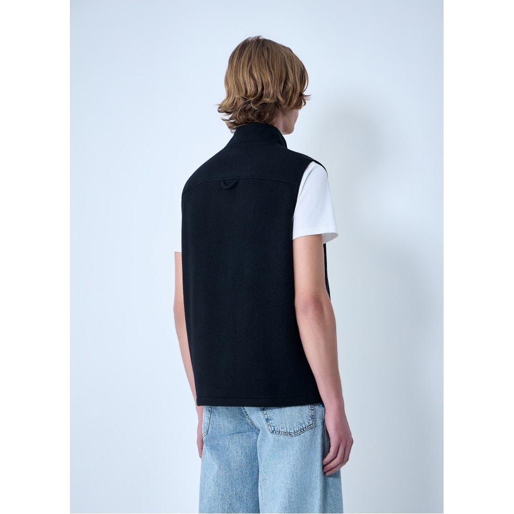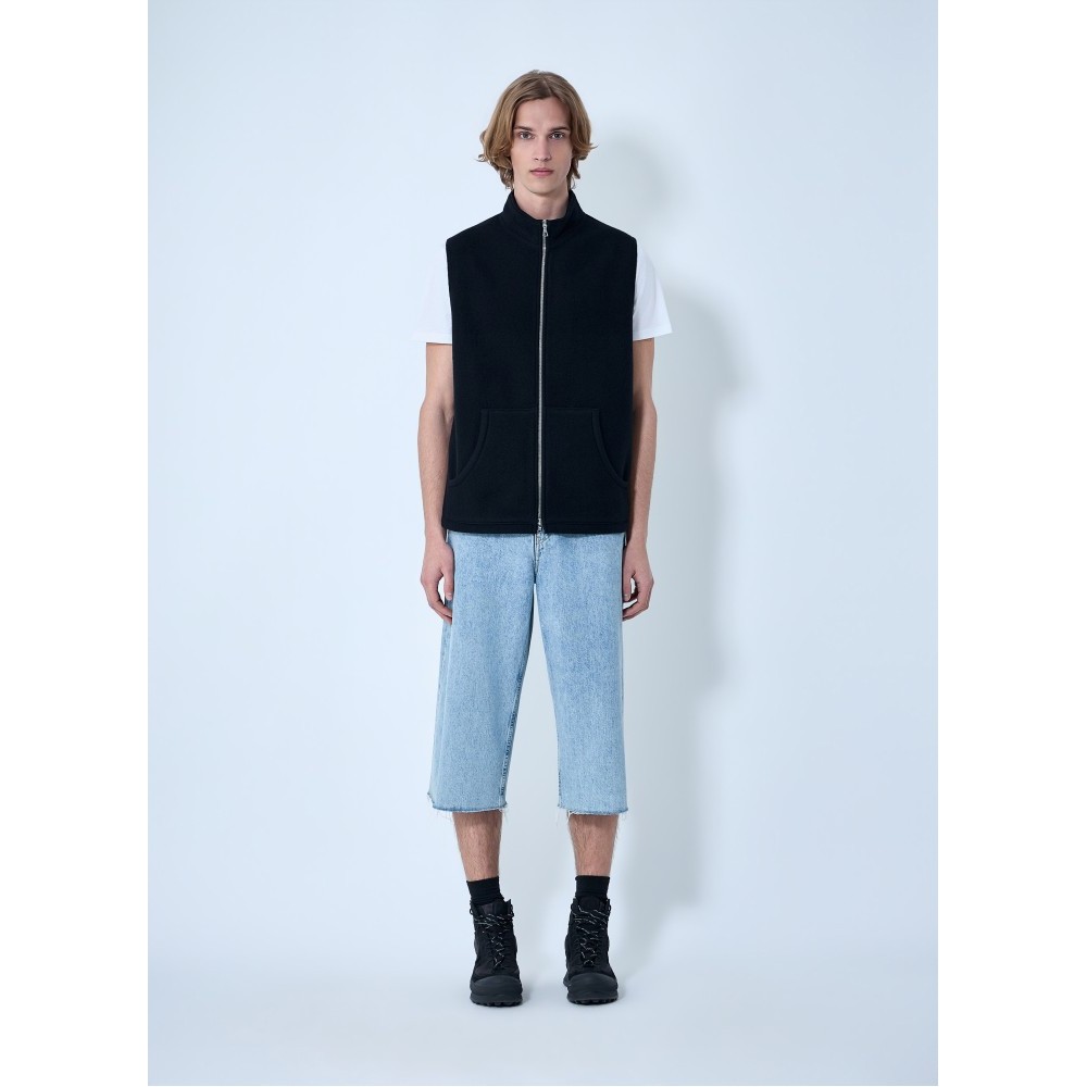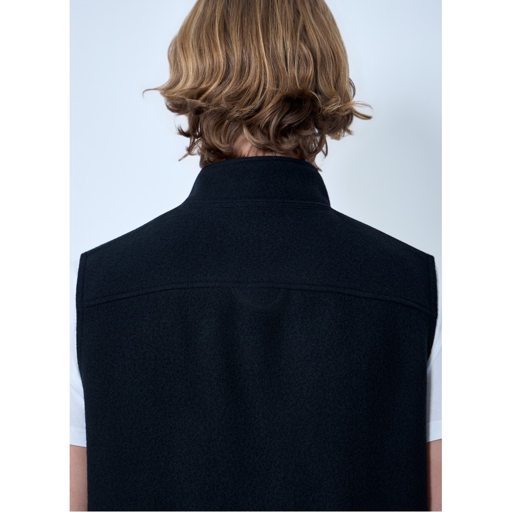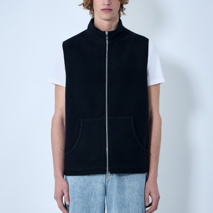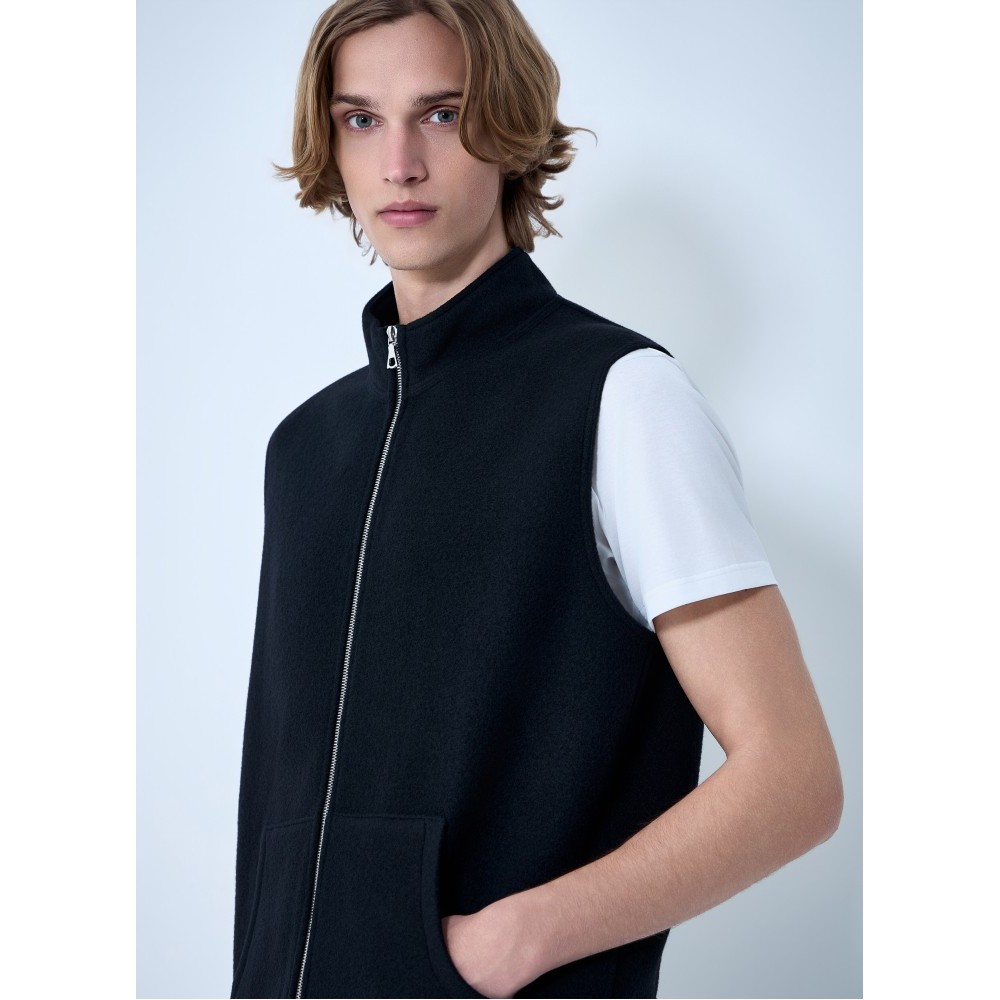 High-neck zip vest with front pockets.