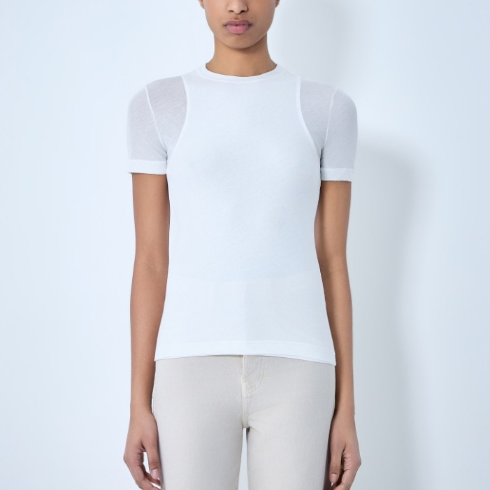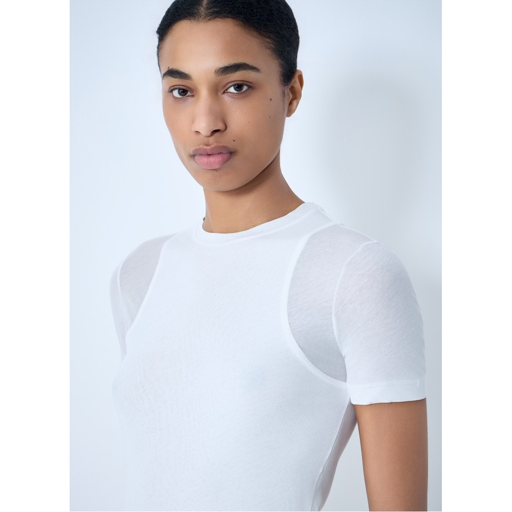 Crew neck fitted T-shirt in stretch jersey.