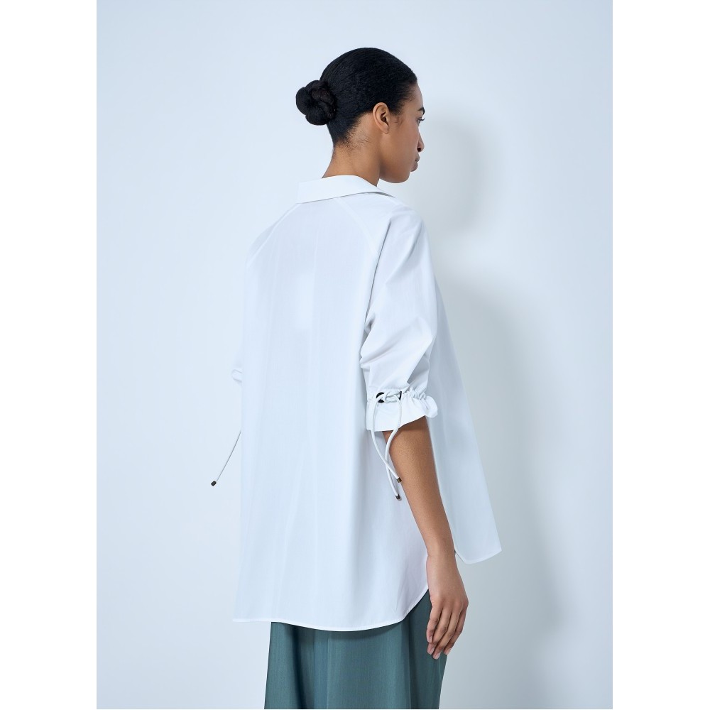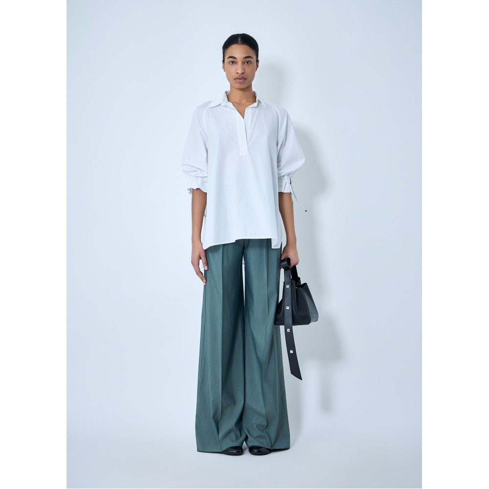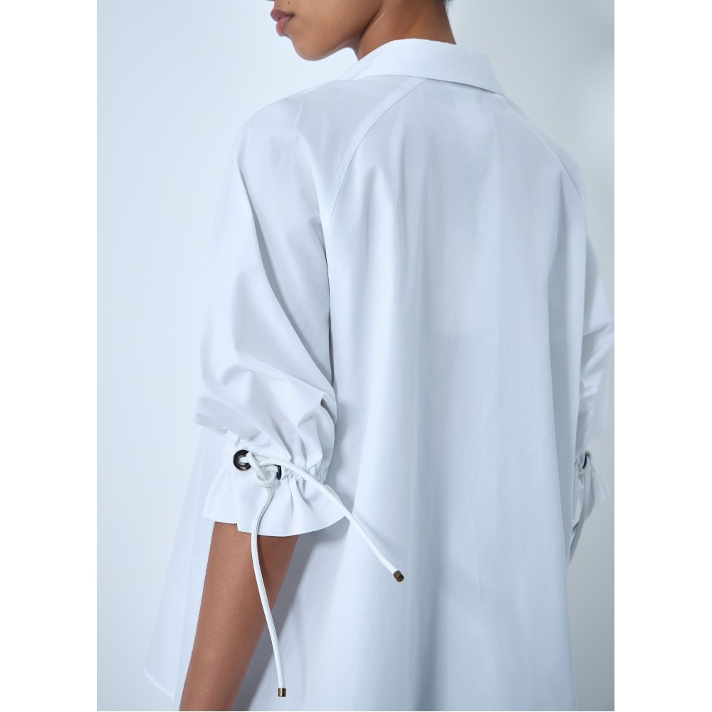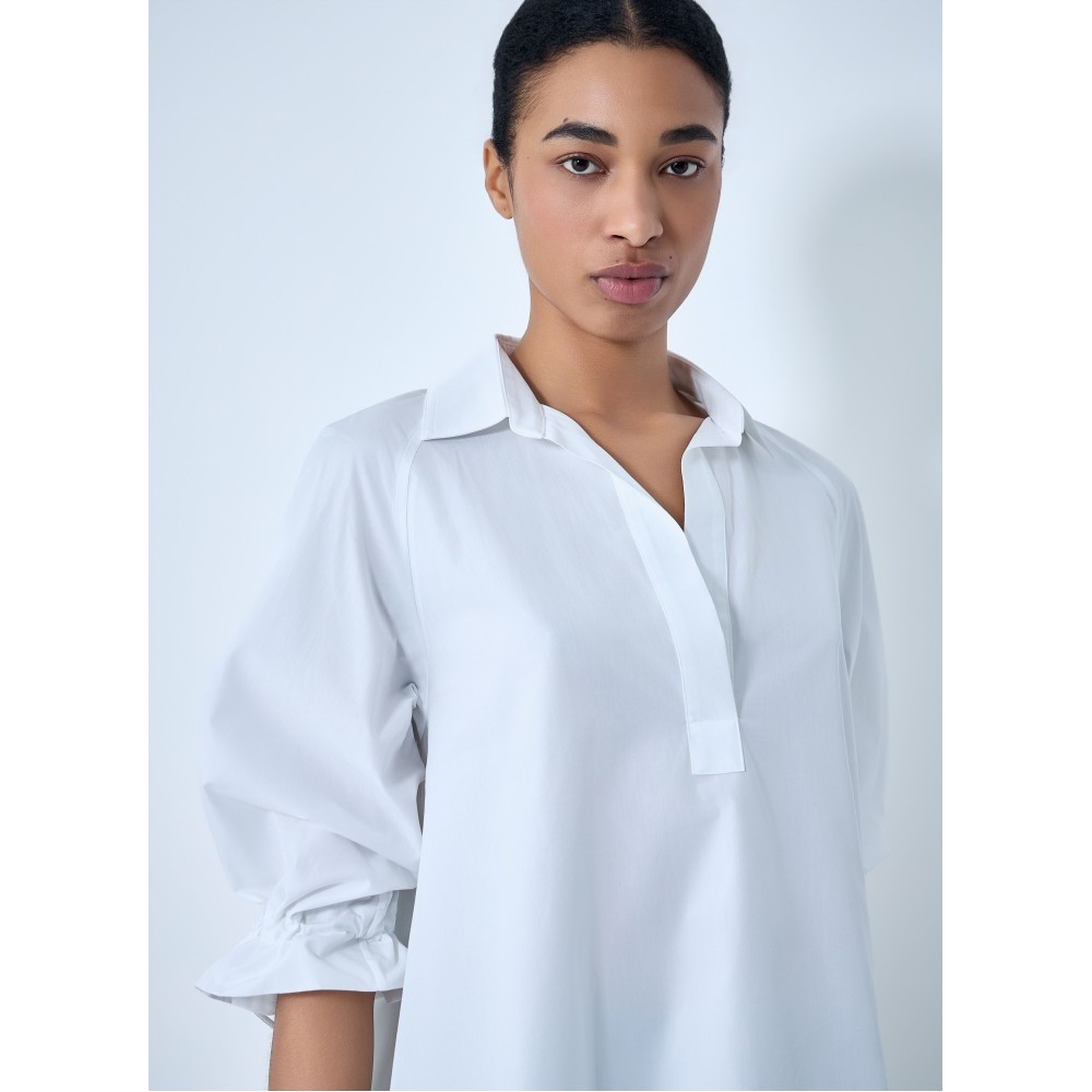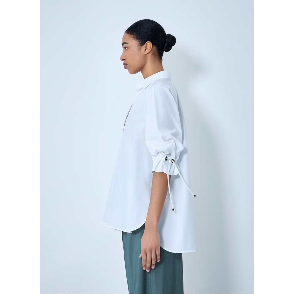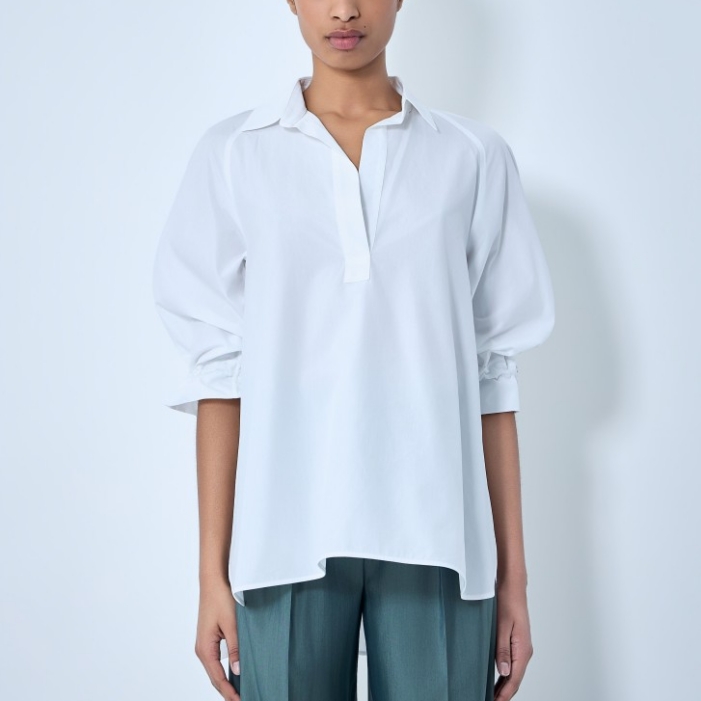 Open-collar tunic in cotton poplin with voluminous sleeves.