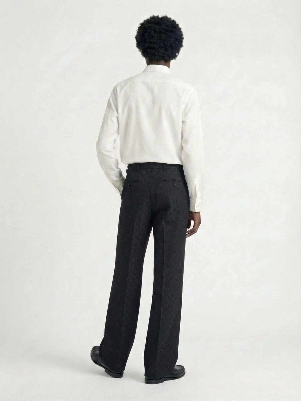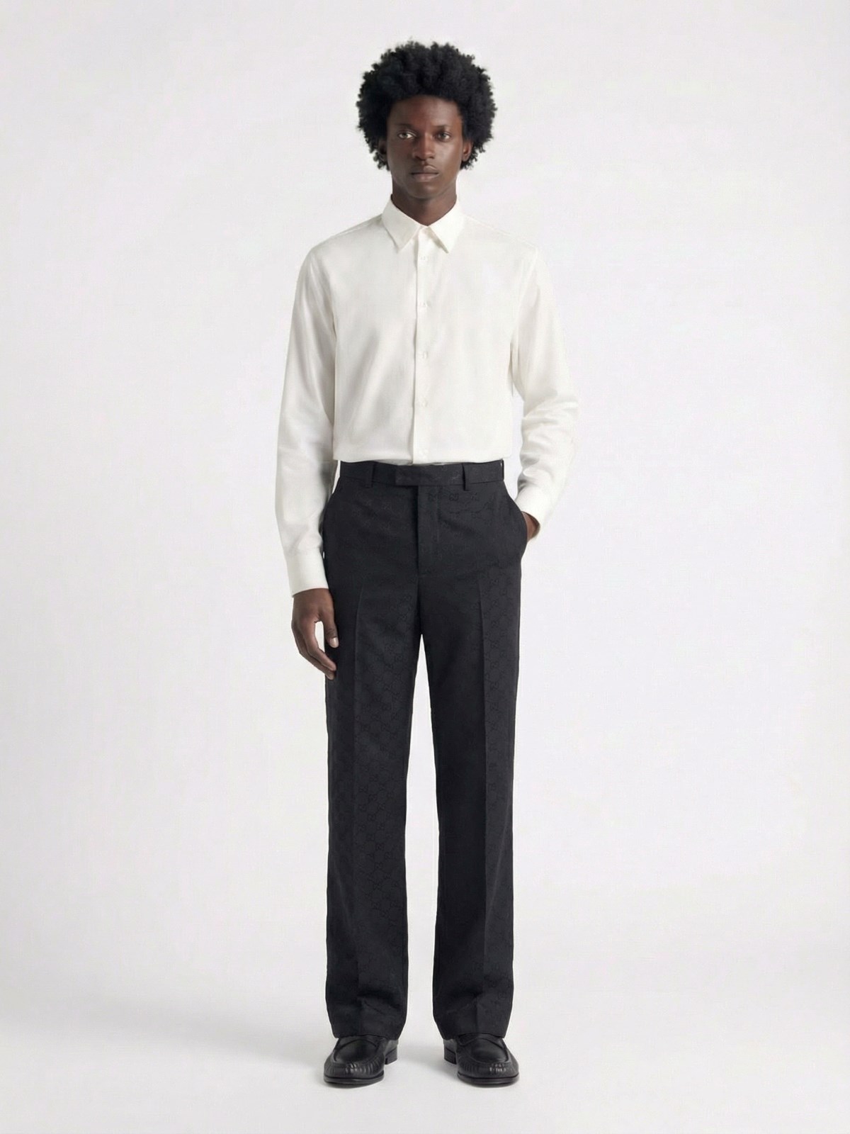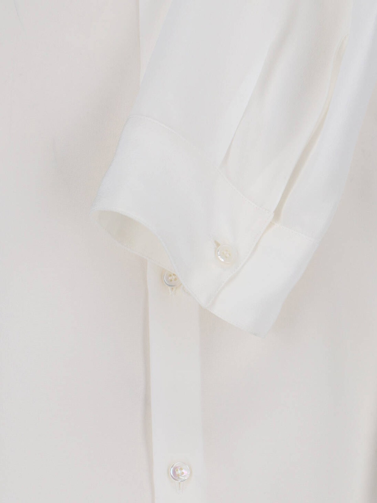 Gucci white crepe de Chine silk shirt with classic collar, button closure, button cuffs, curved hem.