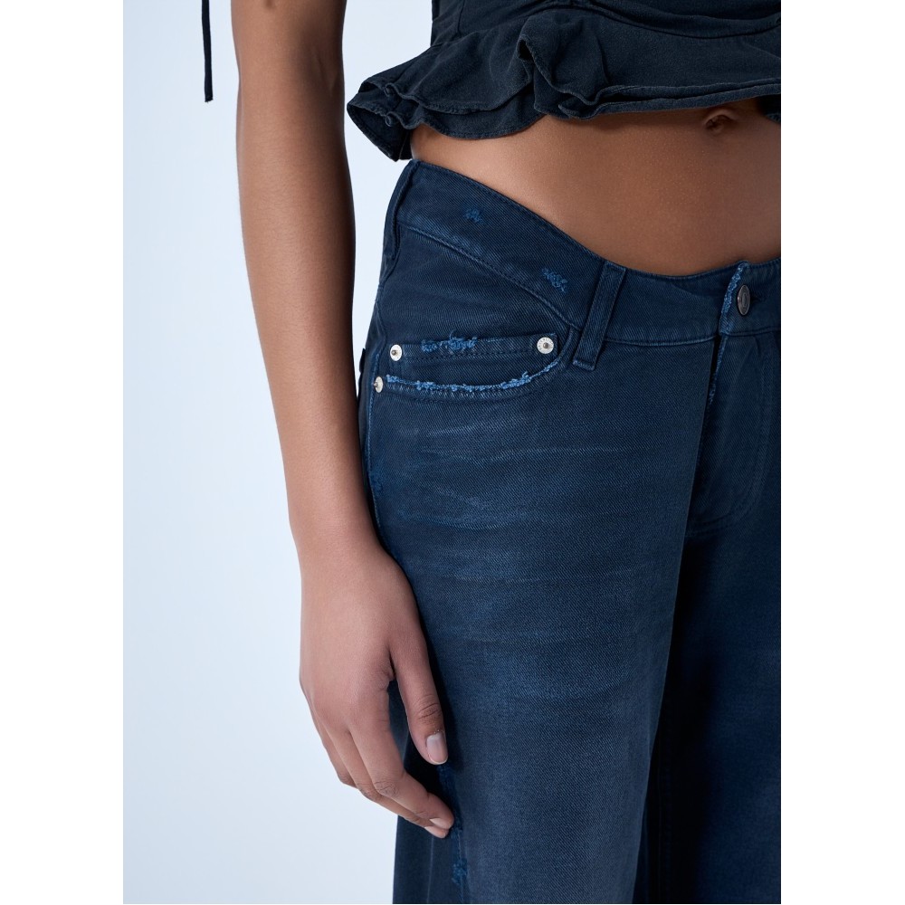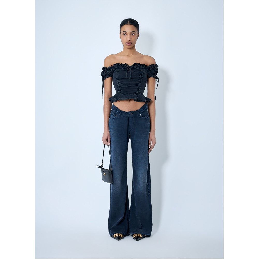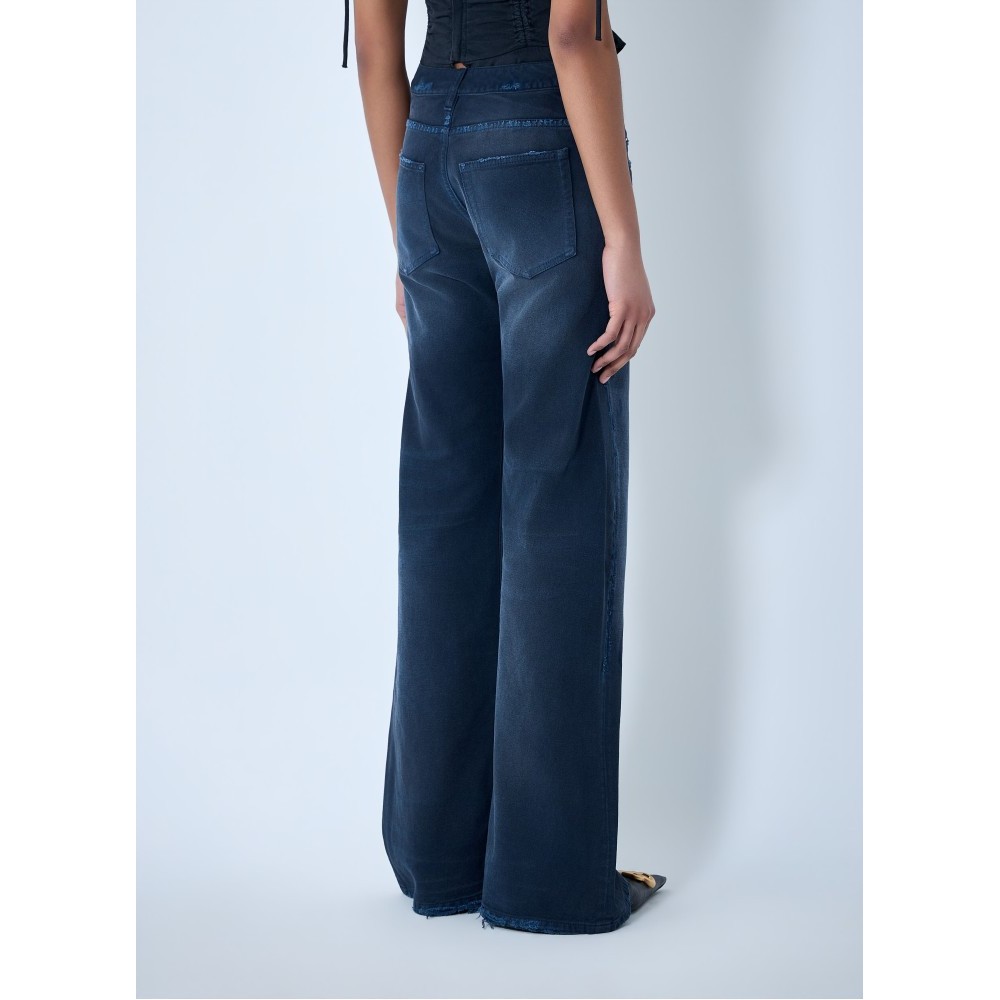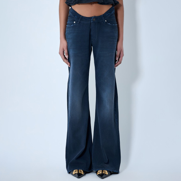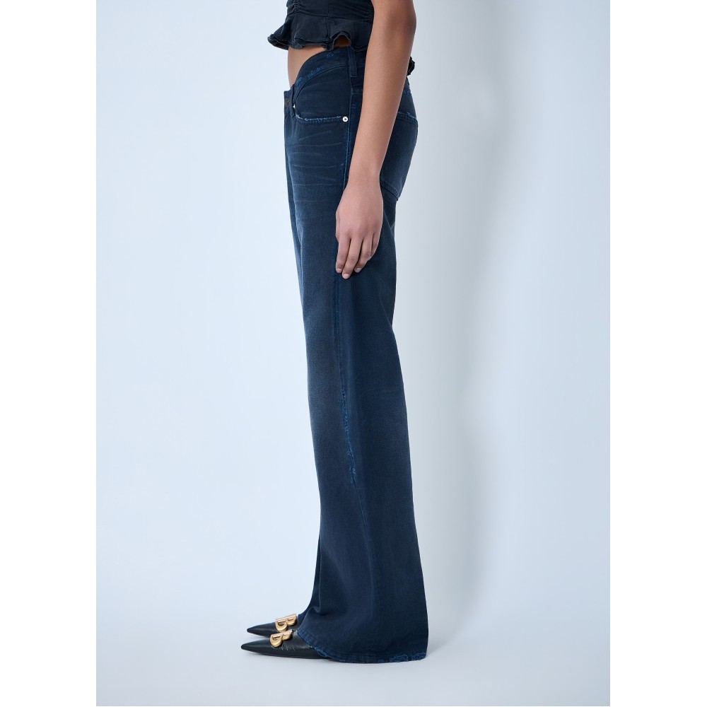 Flared trousers in denim with five-pocket design.
