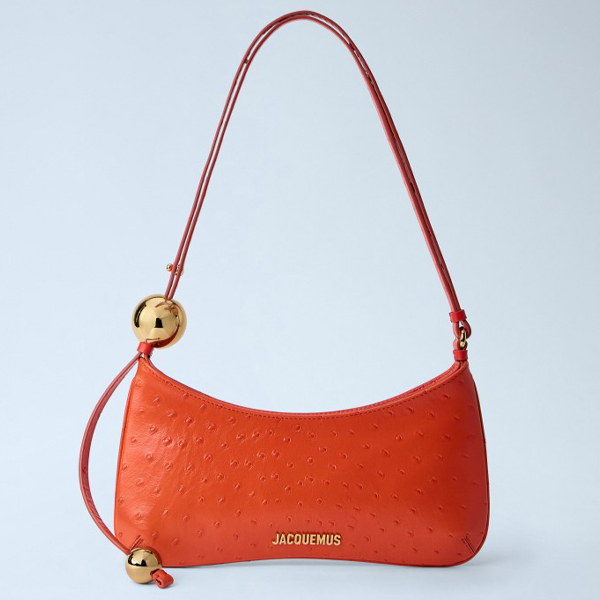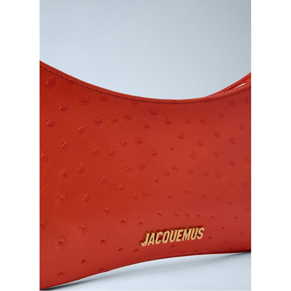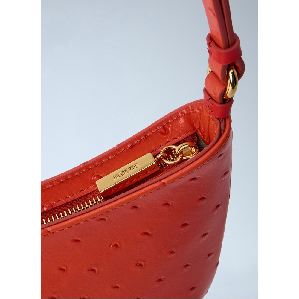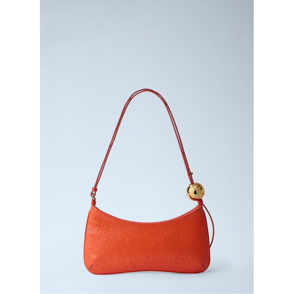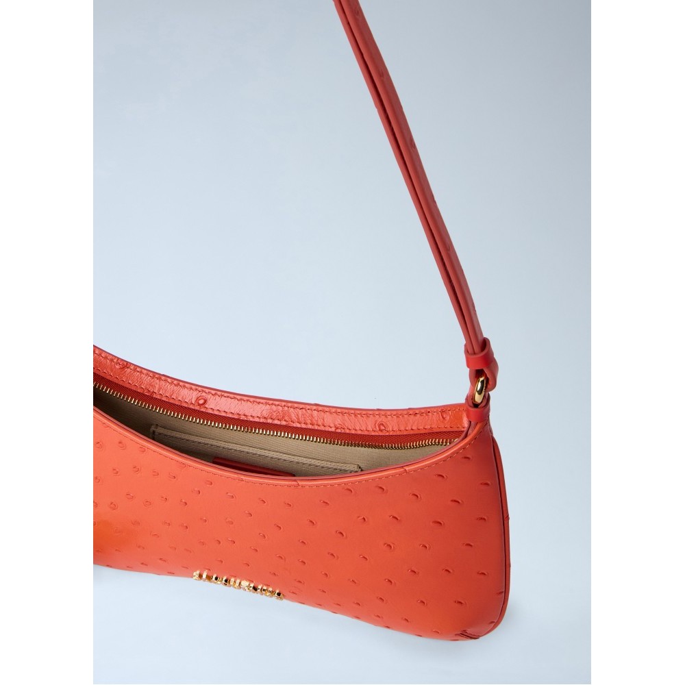 Shoulder bag in ostrich-embossed leather.