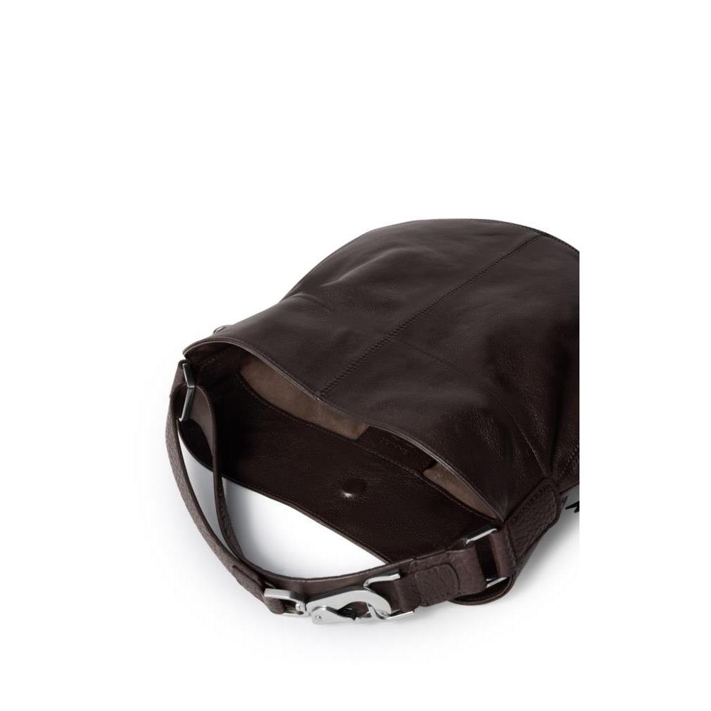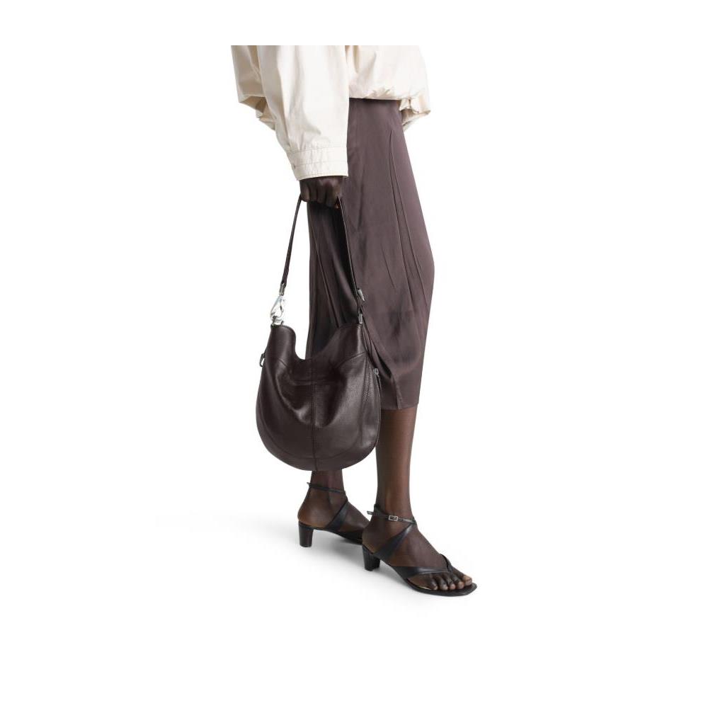 Description : Hobo bag, shoulder bag, single handle, leather handle, smooth leather, zipper closure, silver finish.
