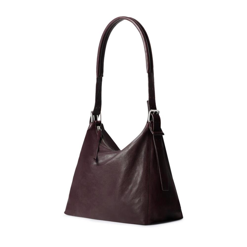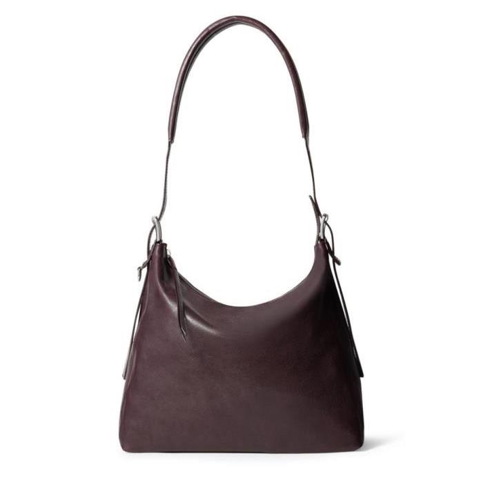 Description : Hobo bag, shoulder bag, single handle, leather handle, smooth leather, zipper closure, metal finish.