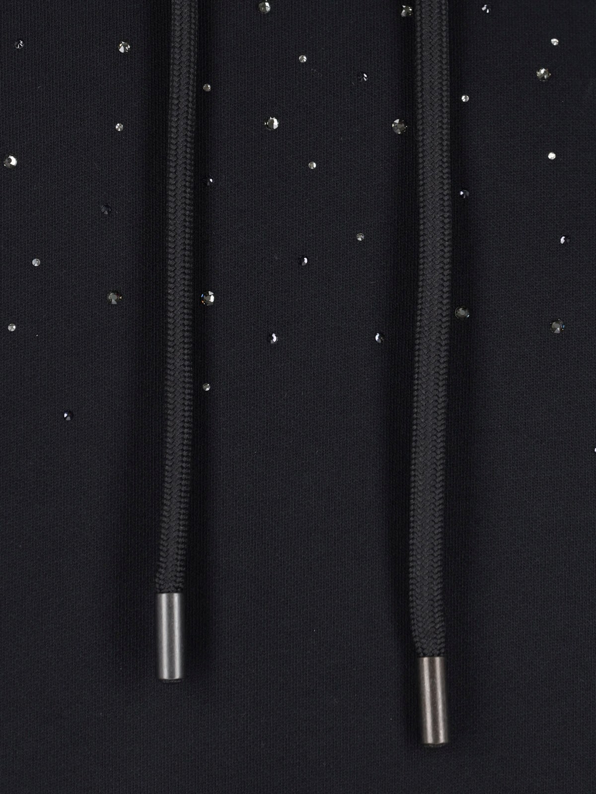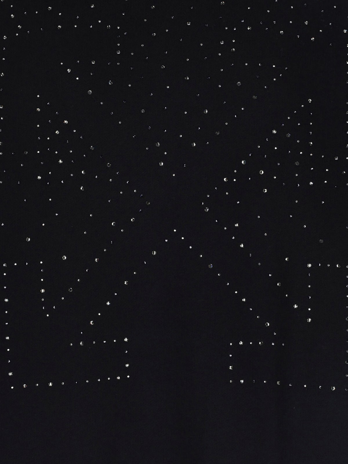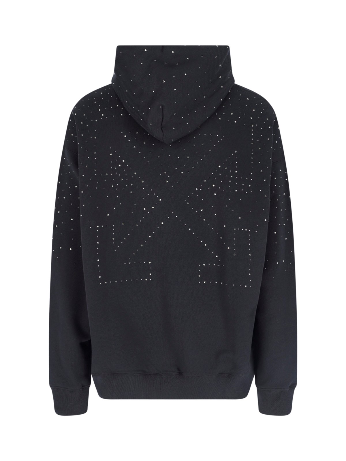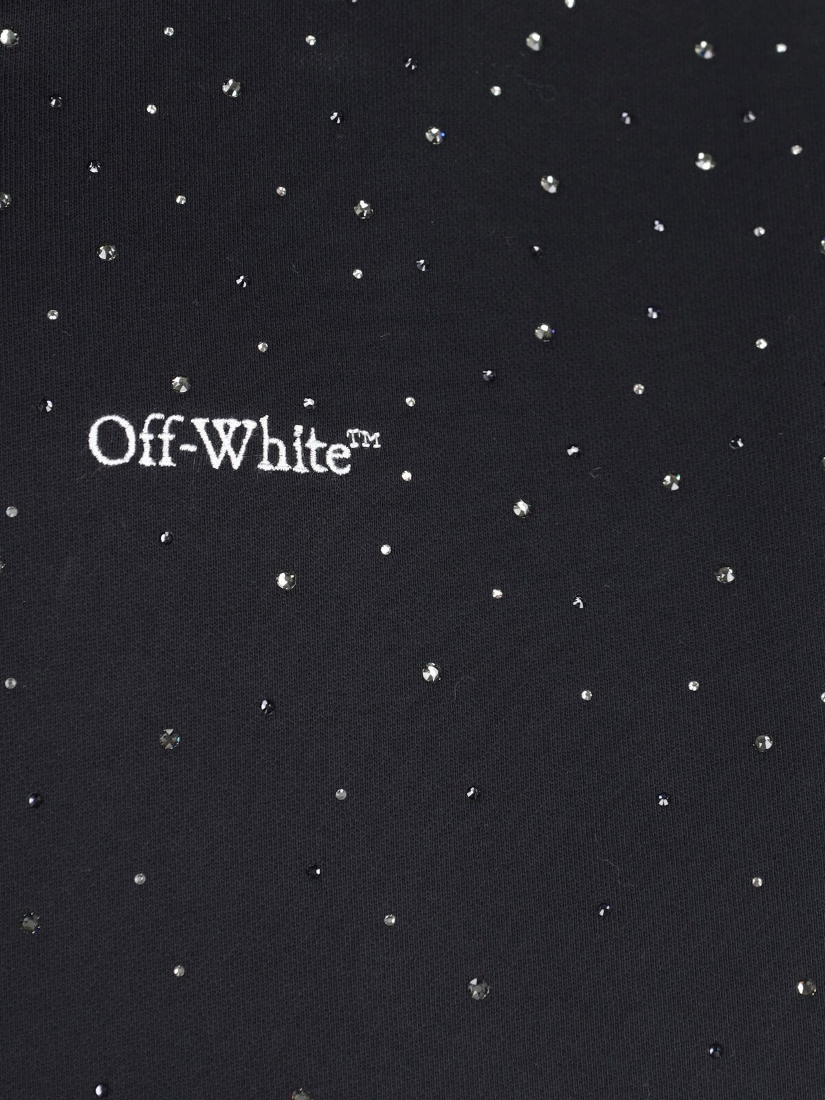 Off-White logo sweatshirt in black cotton with drawstring detail hood, logo embroidery on the chest, all-over crystal applique on the front, maxi patch pocket on the front, maxi logo on the back with crystal application detail, ribbed trims, straight hem.