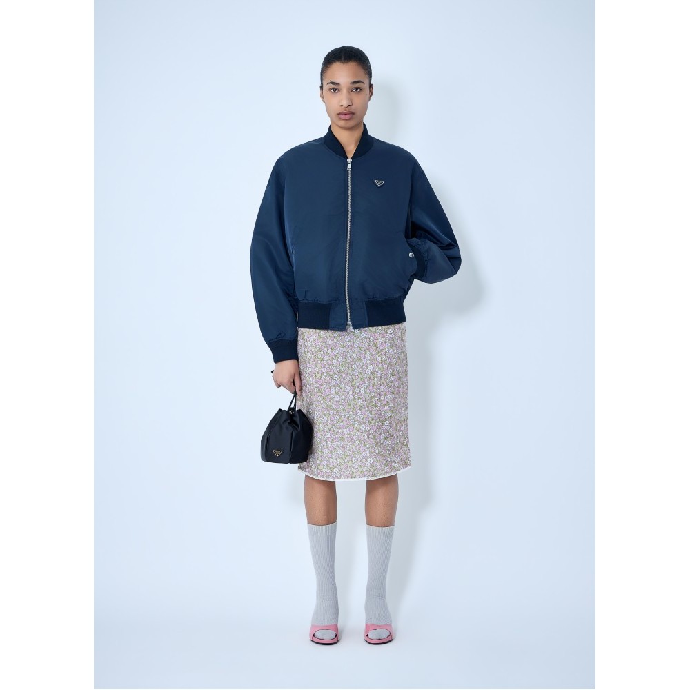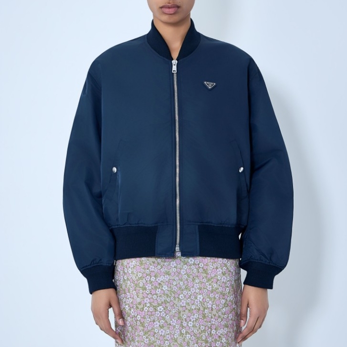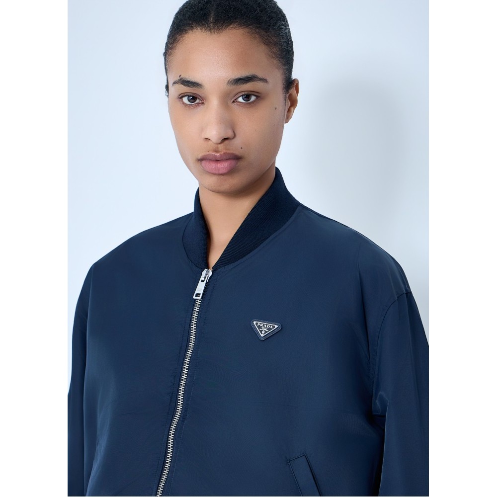 Bomber jacket with ribbed trims and logo plaque.