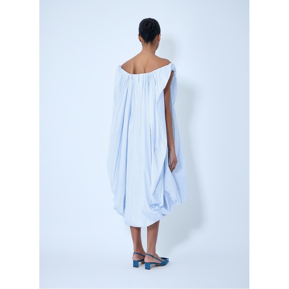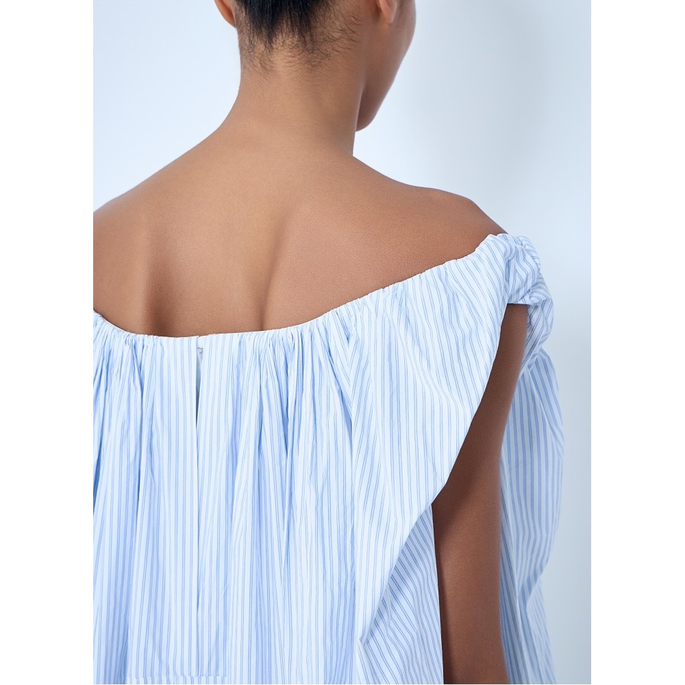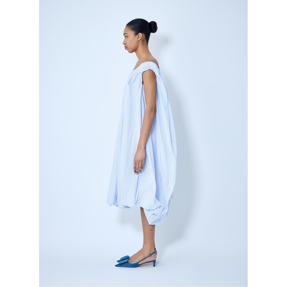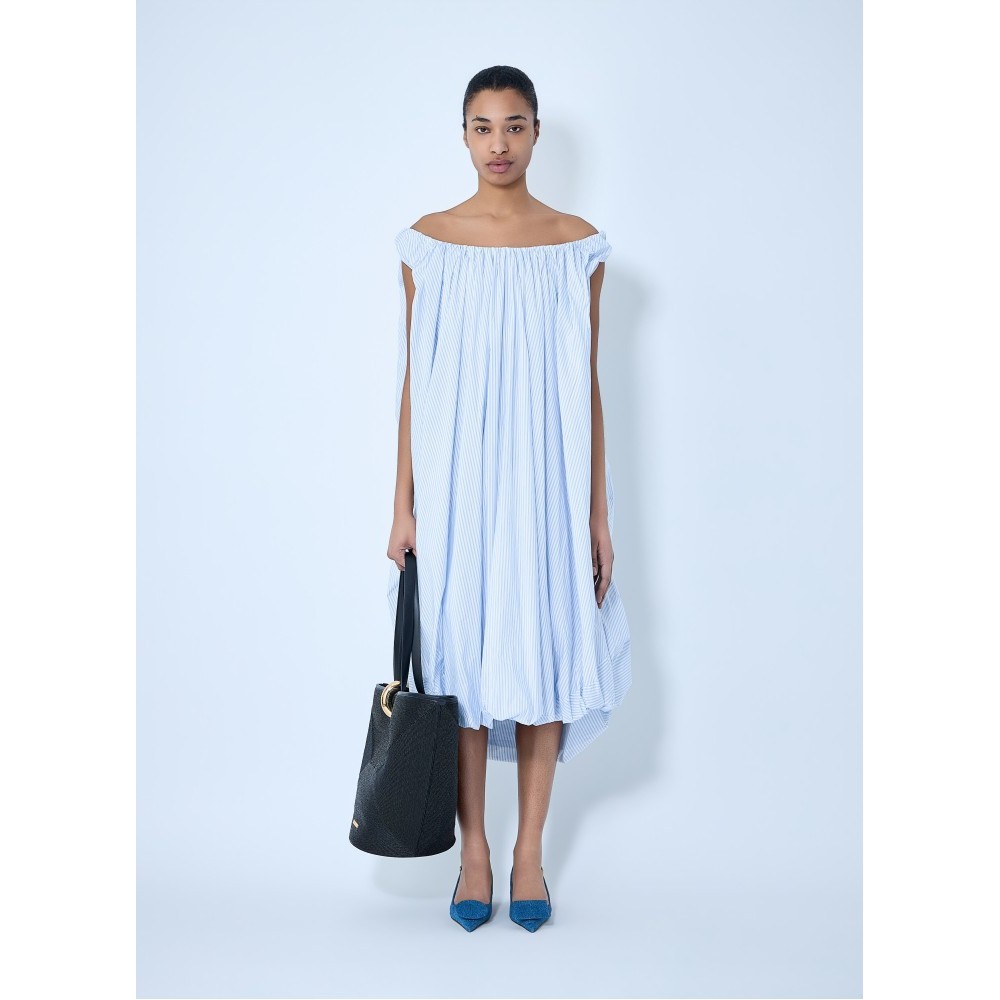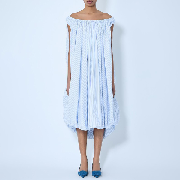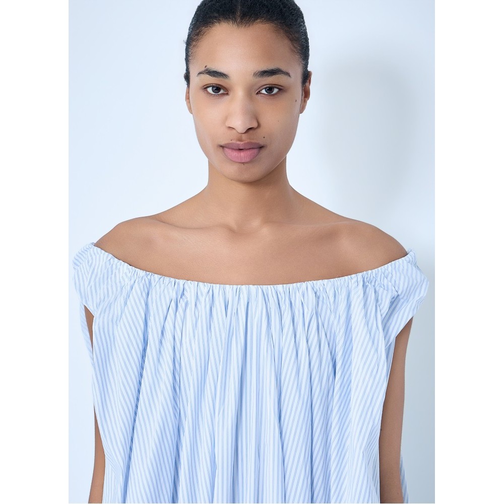 Off-shoulder dress in lightweight fabric with draped construction.