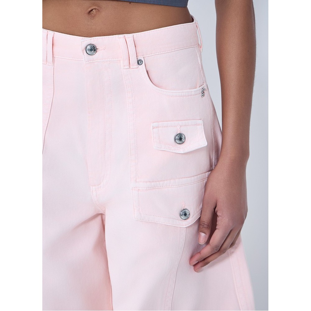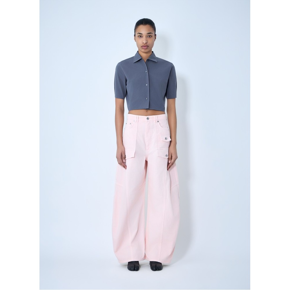 High rise cargo trousers with wide-leg silhouette.