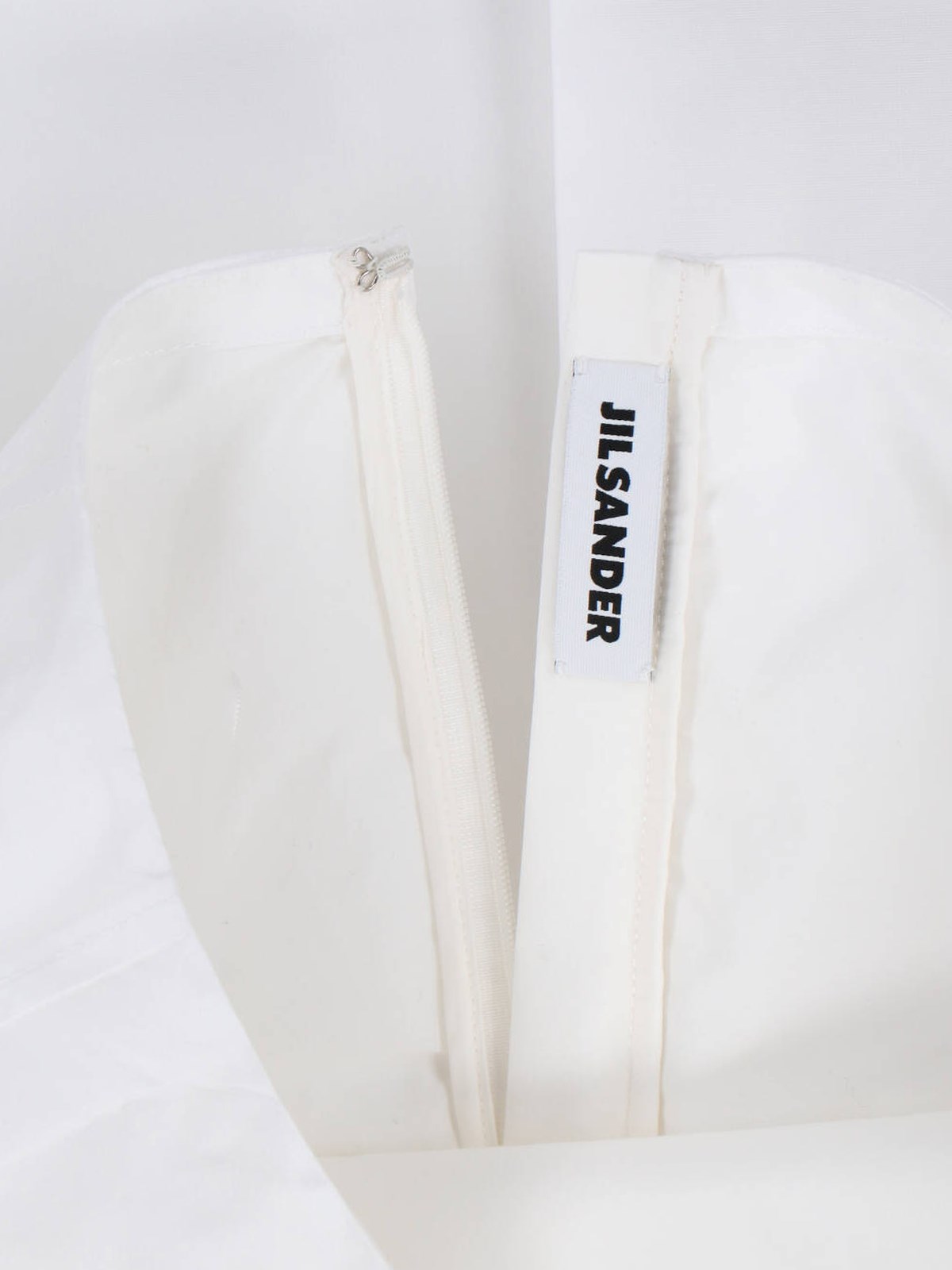 Jil Sander midi skirt in white fabric, medium waist, zip and hook side closure.