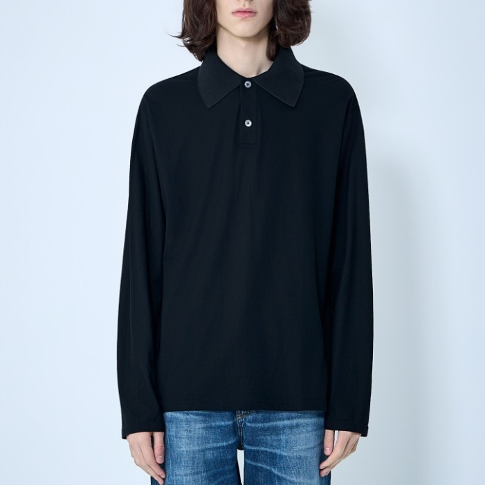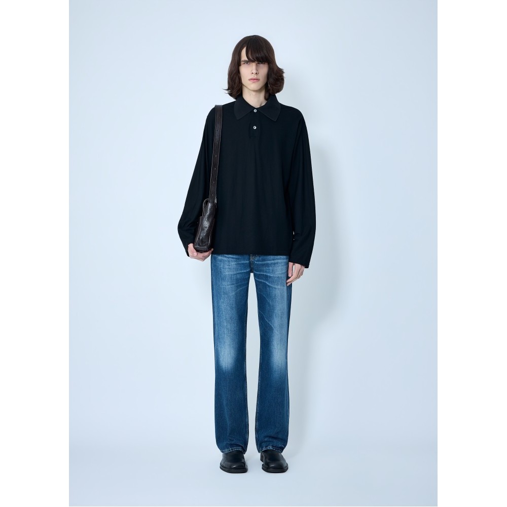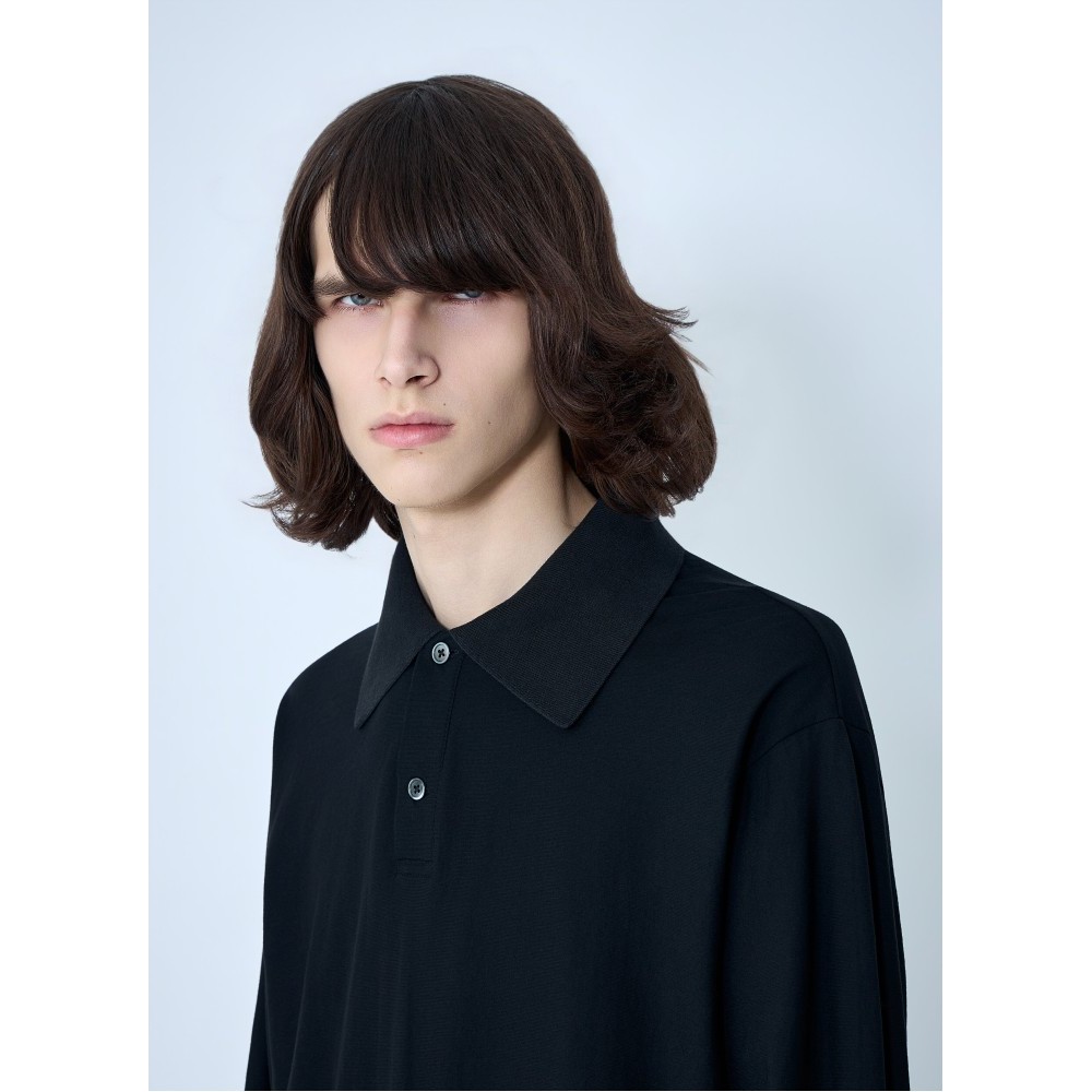 Long sleeve polo shirt in cotton blend.