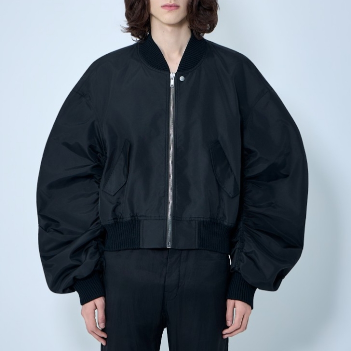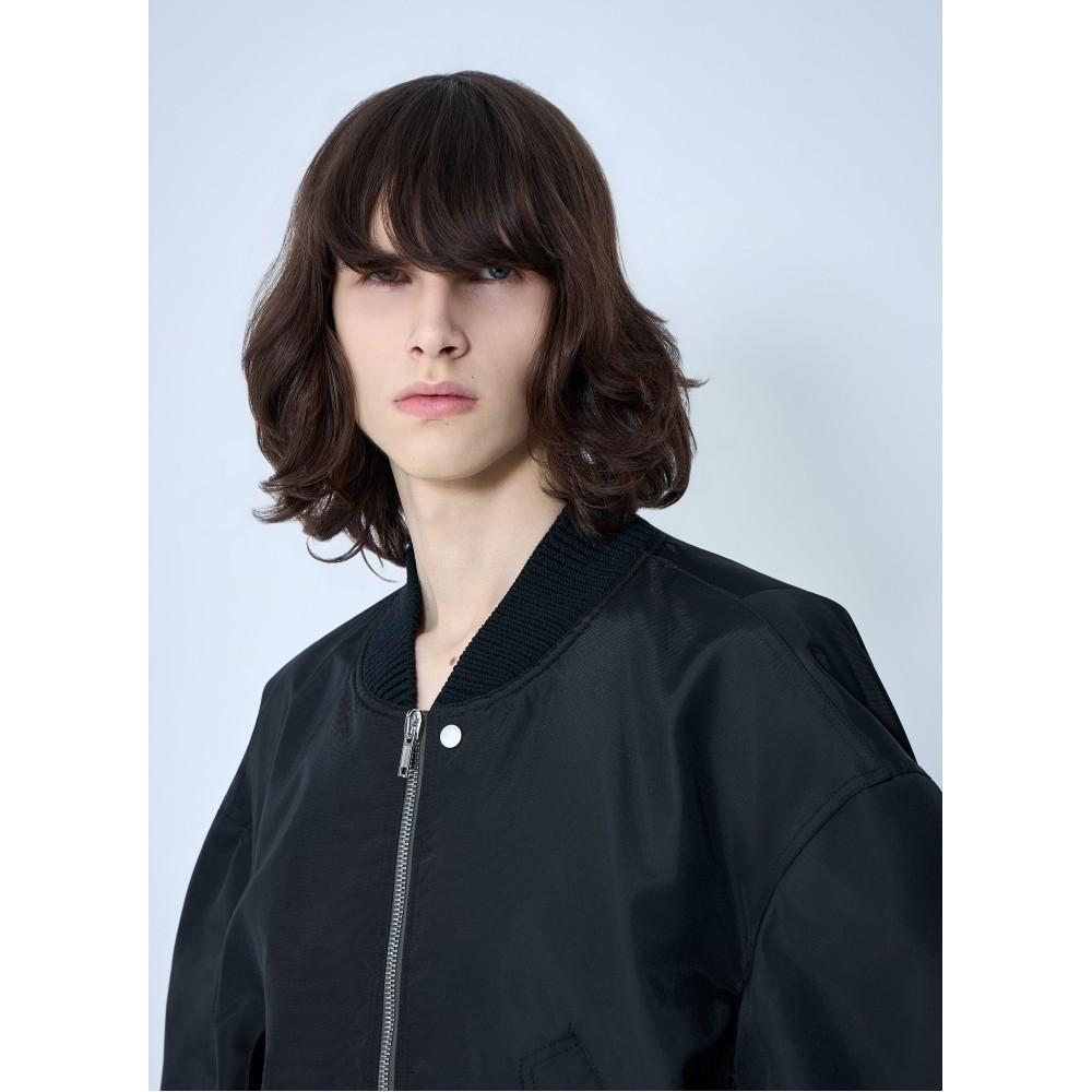 Bomber jacket with oversized silhouette and ribbed trims.