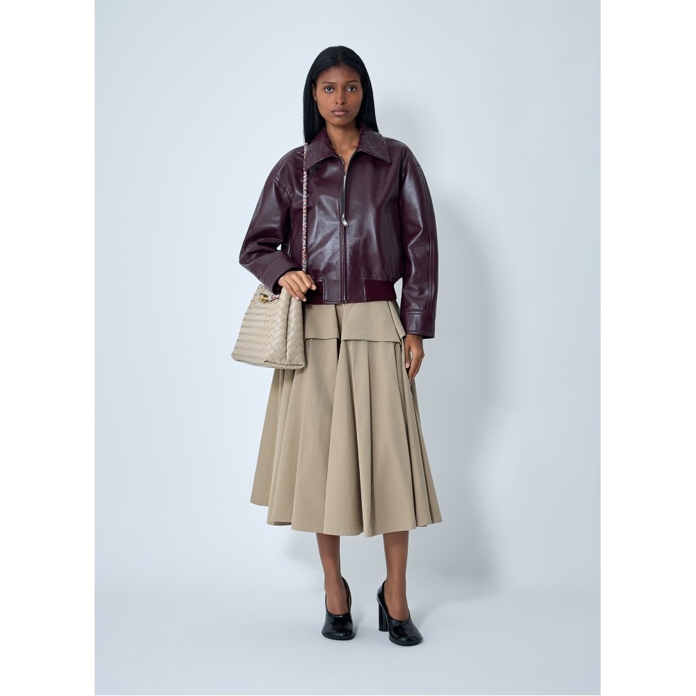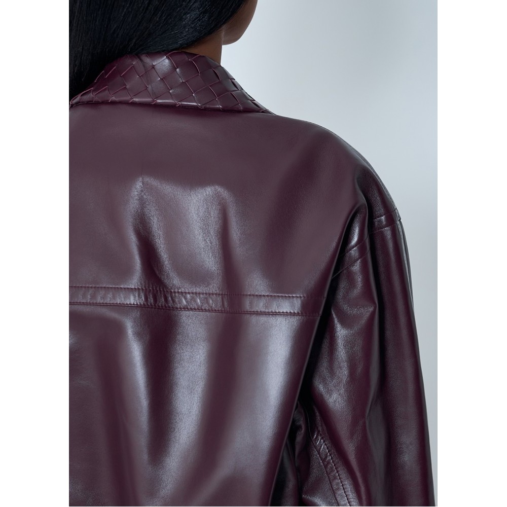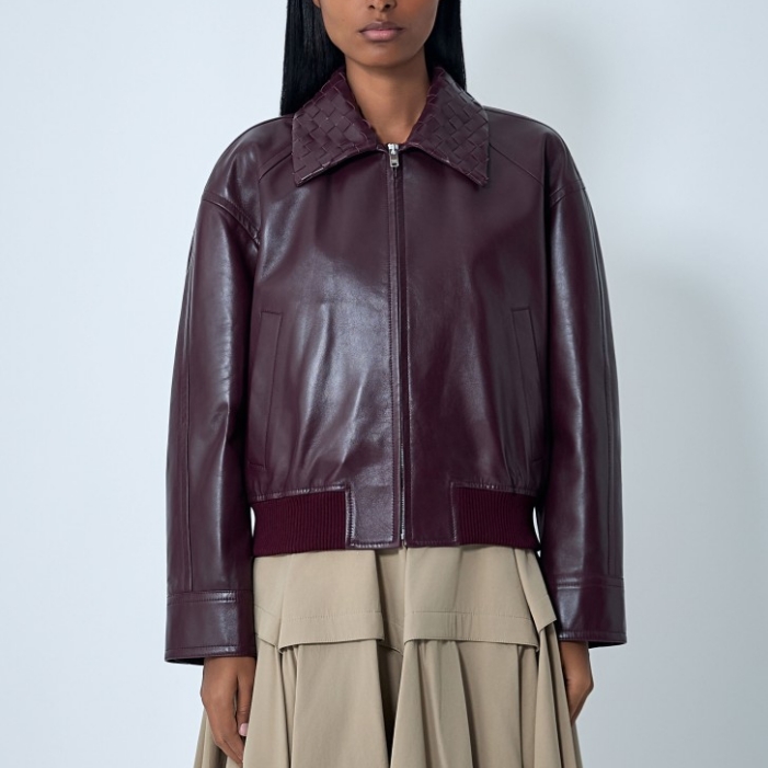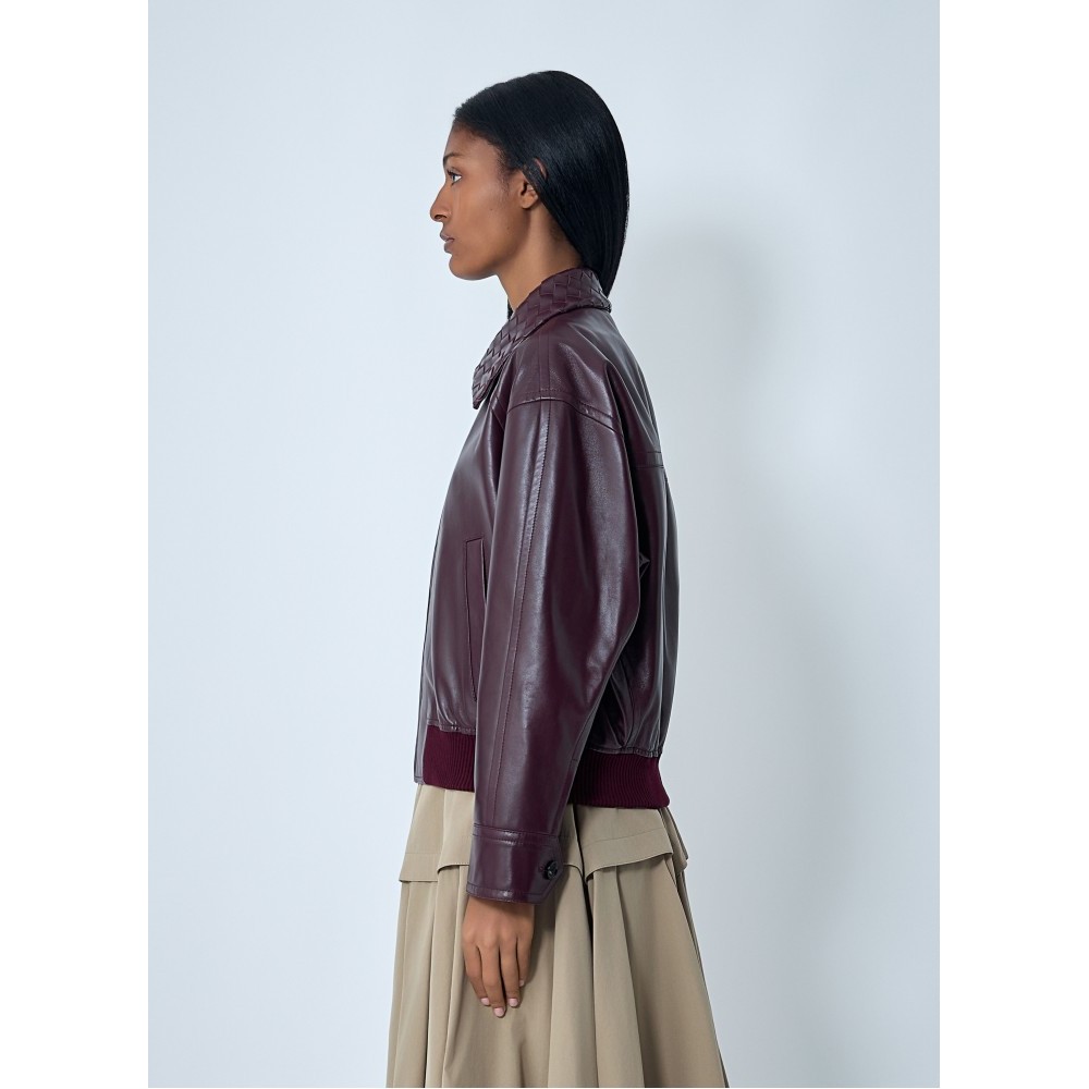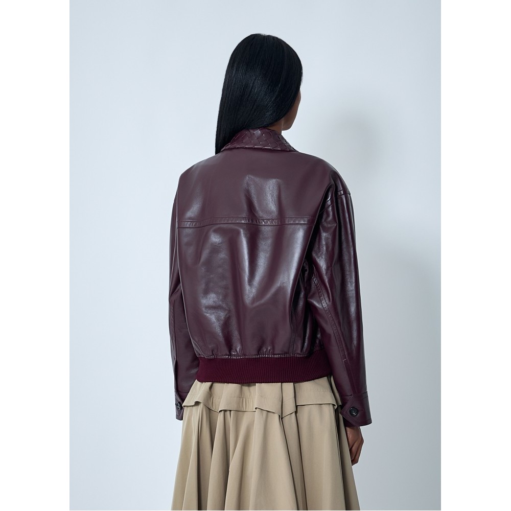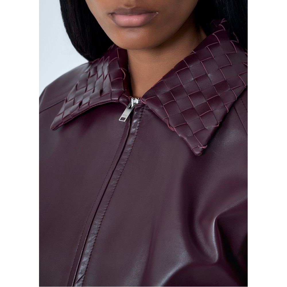 Blouson jacket in midweight soft leather with Intrecciato leather collar.