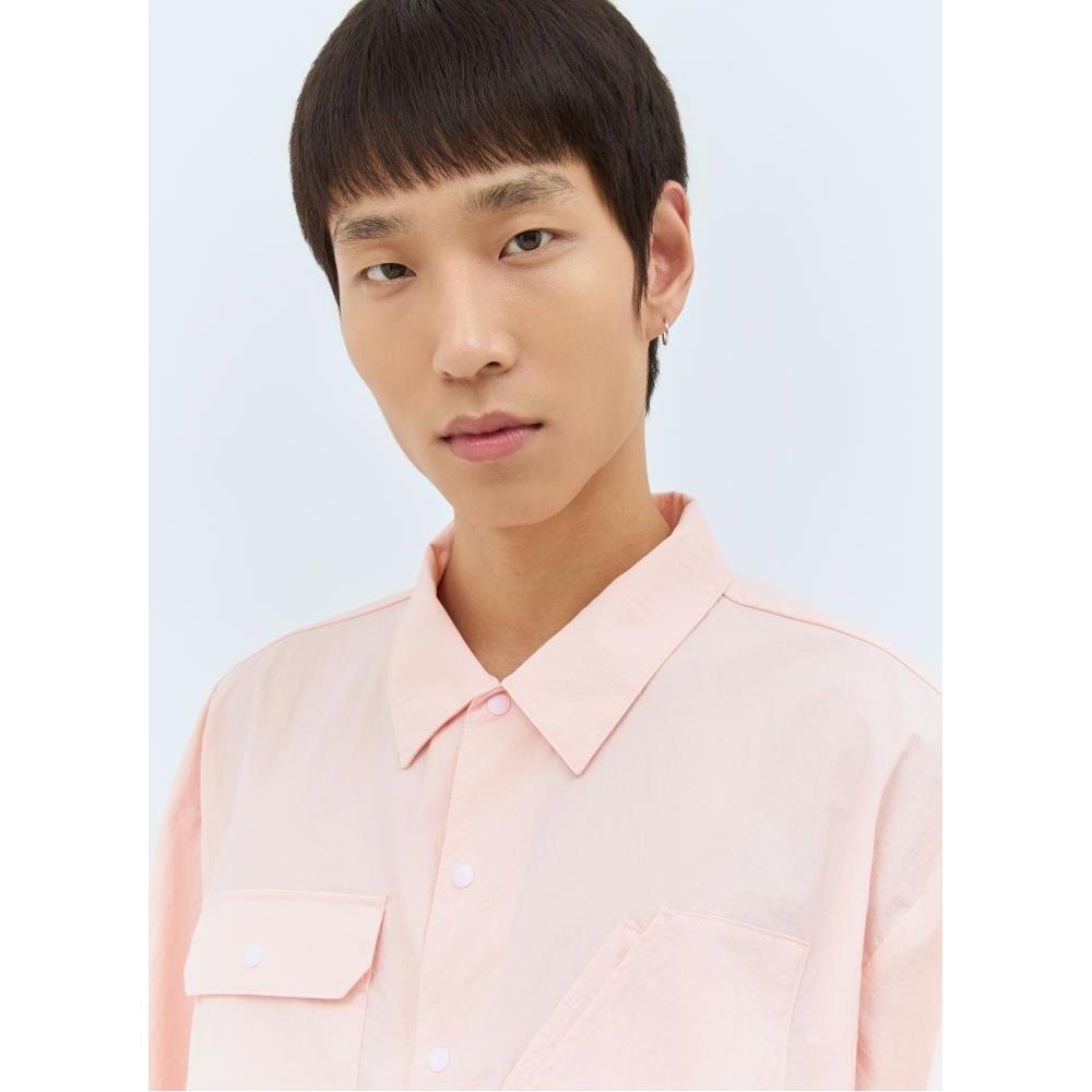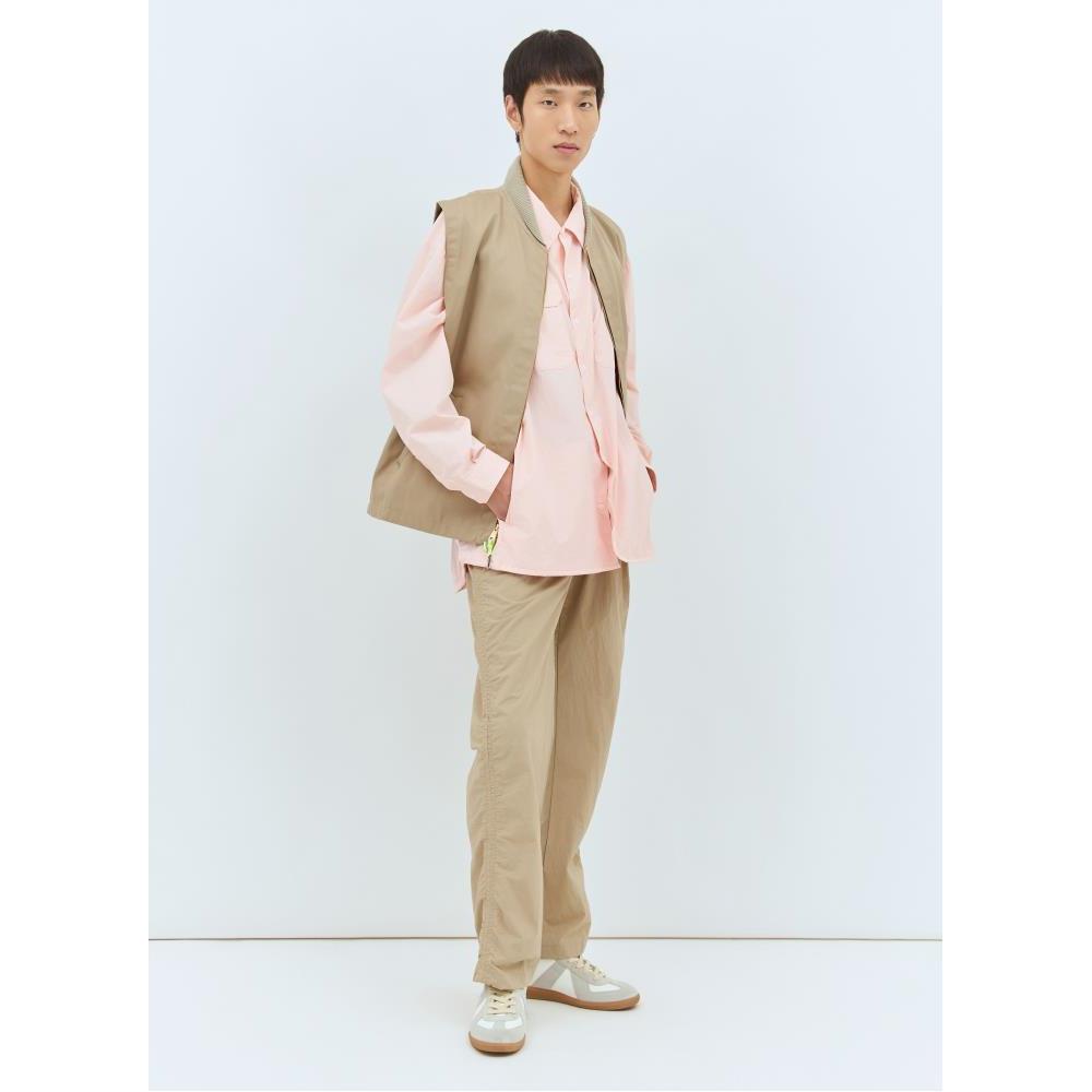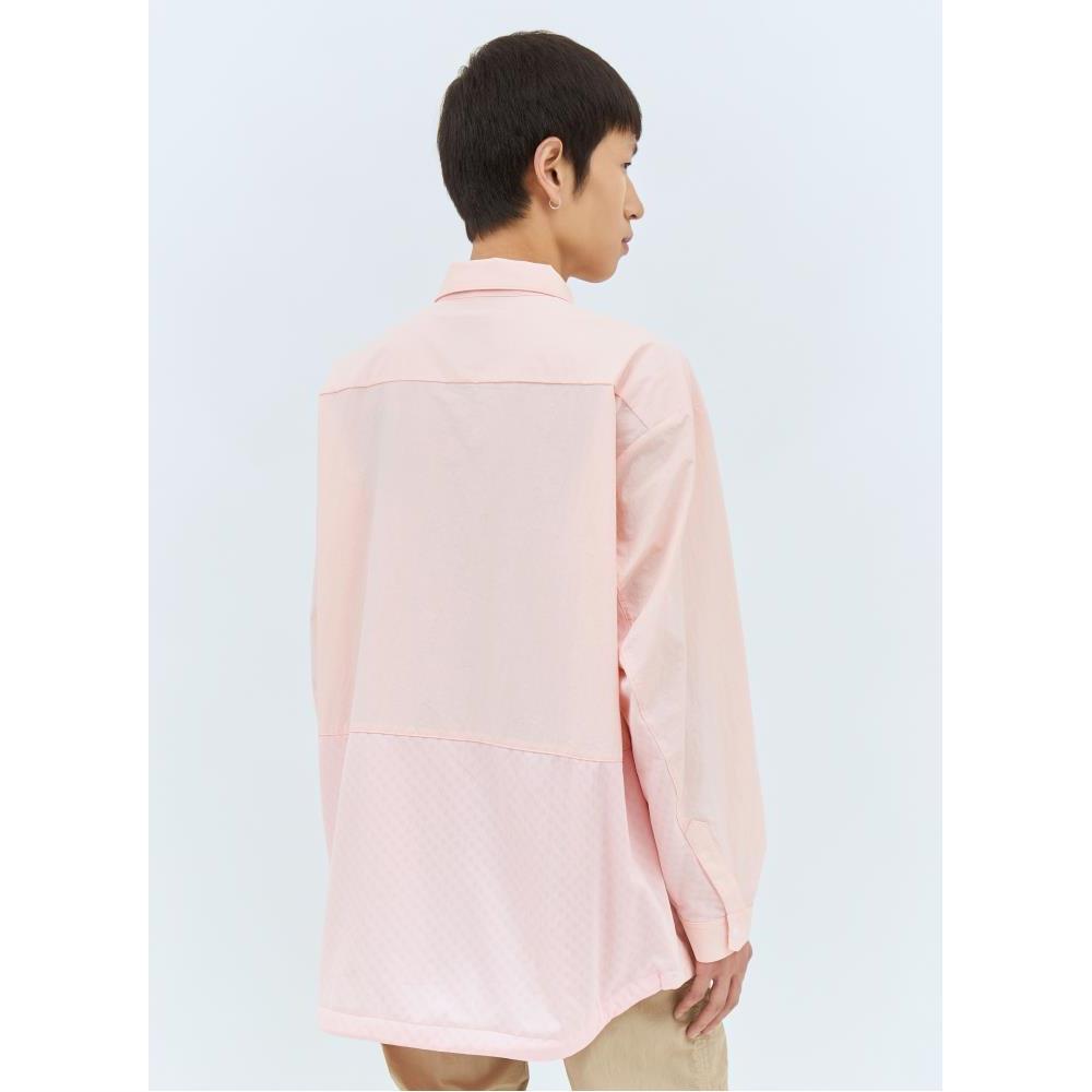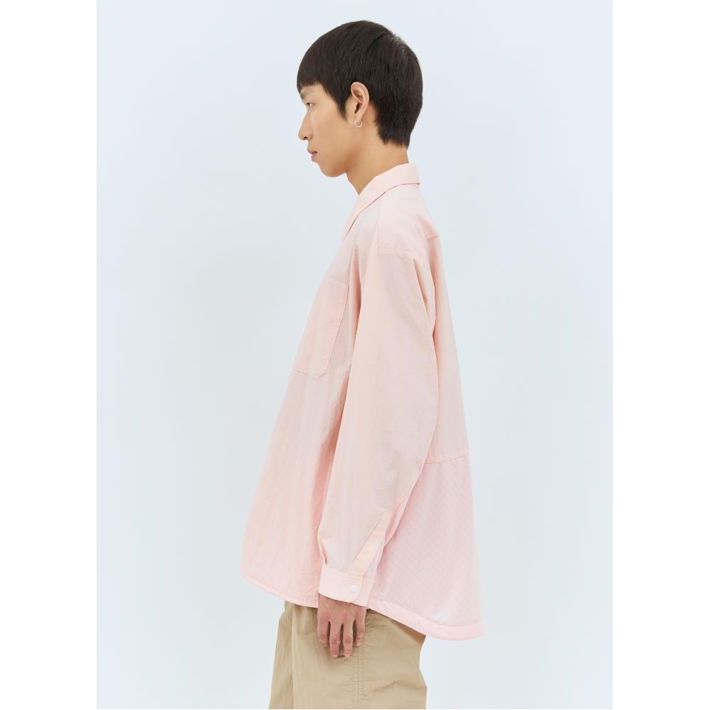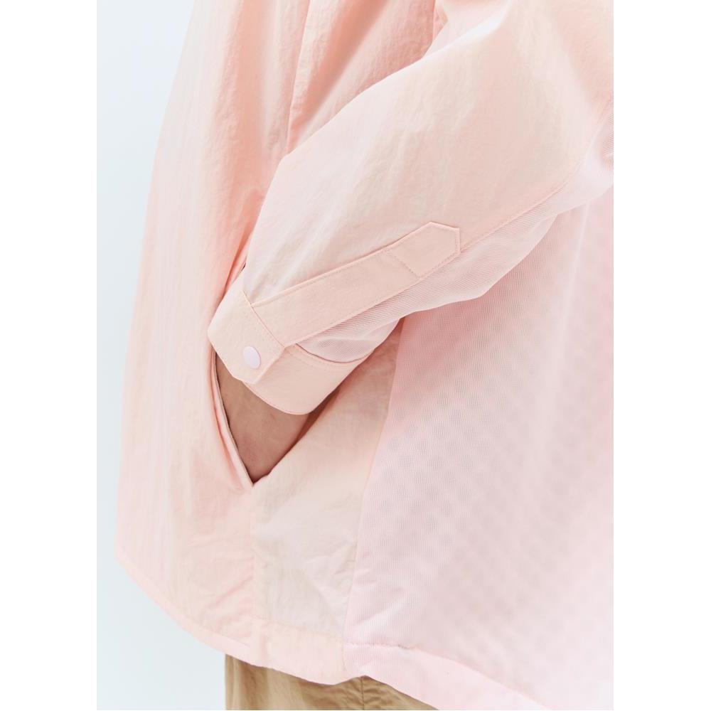 Oversized work jacket in shell weave with a covered-perforated panel at rear.