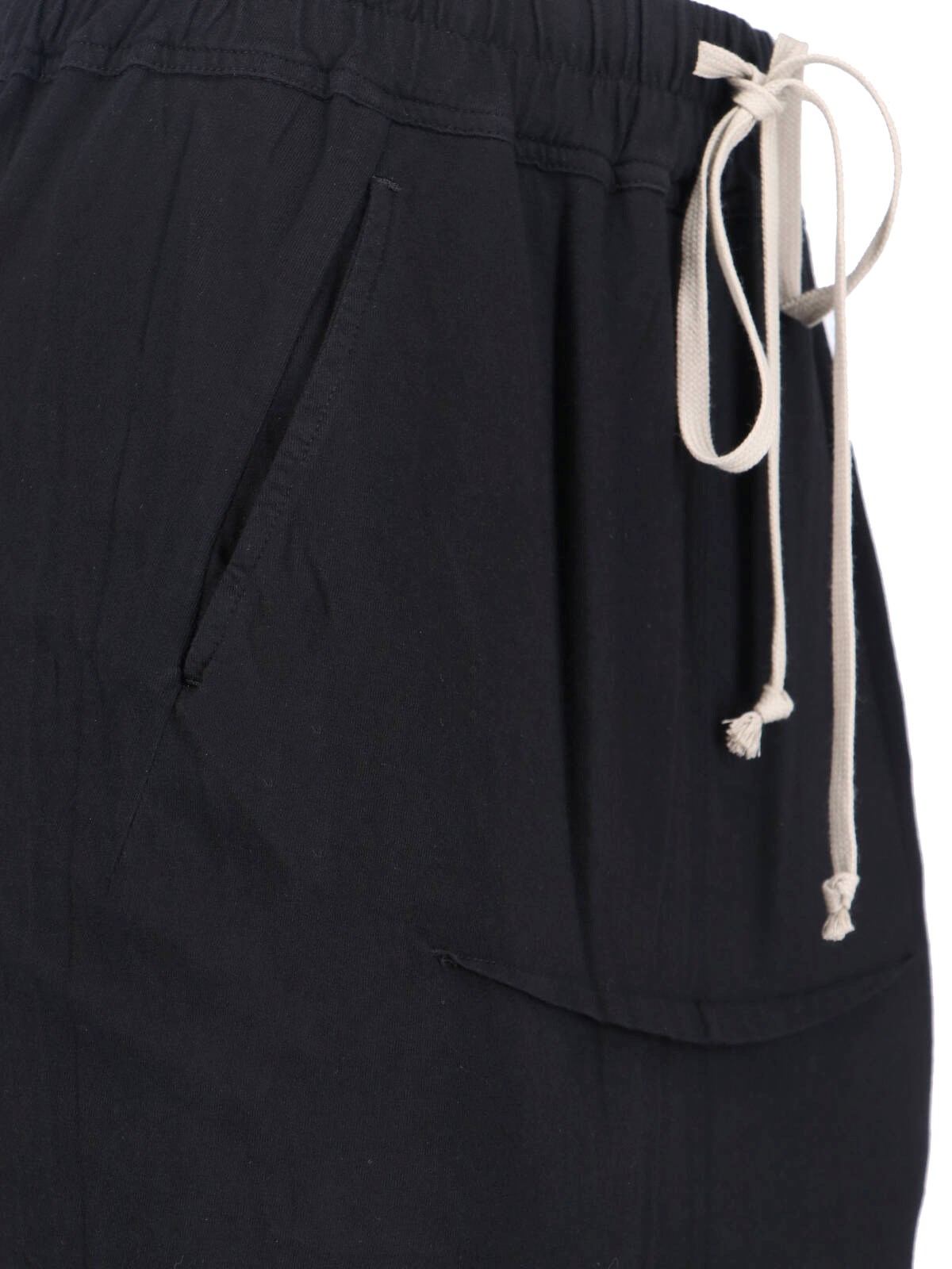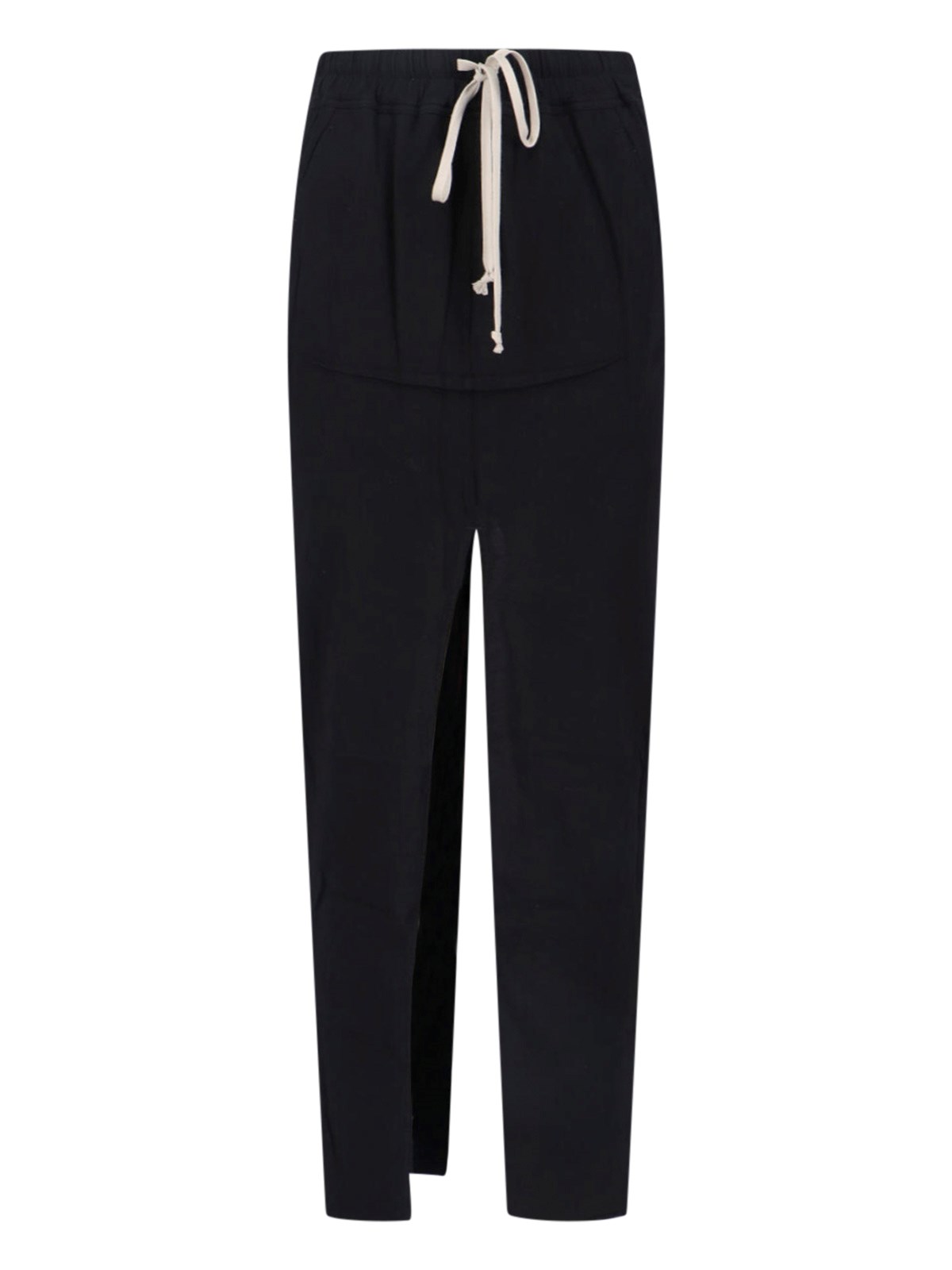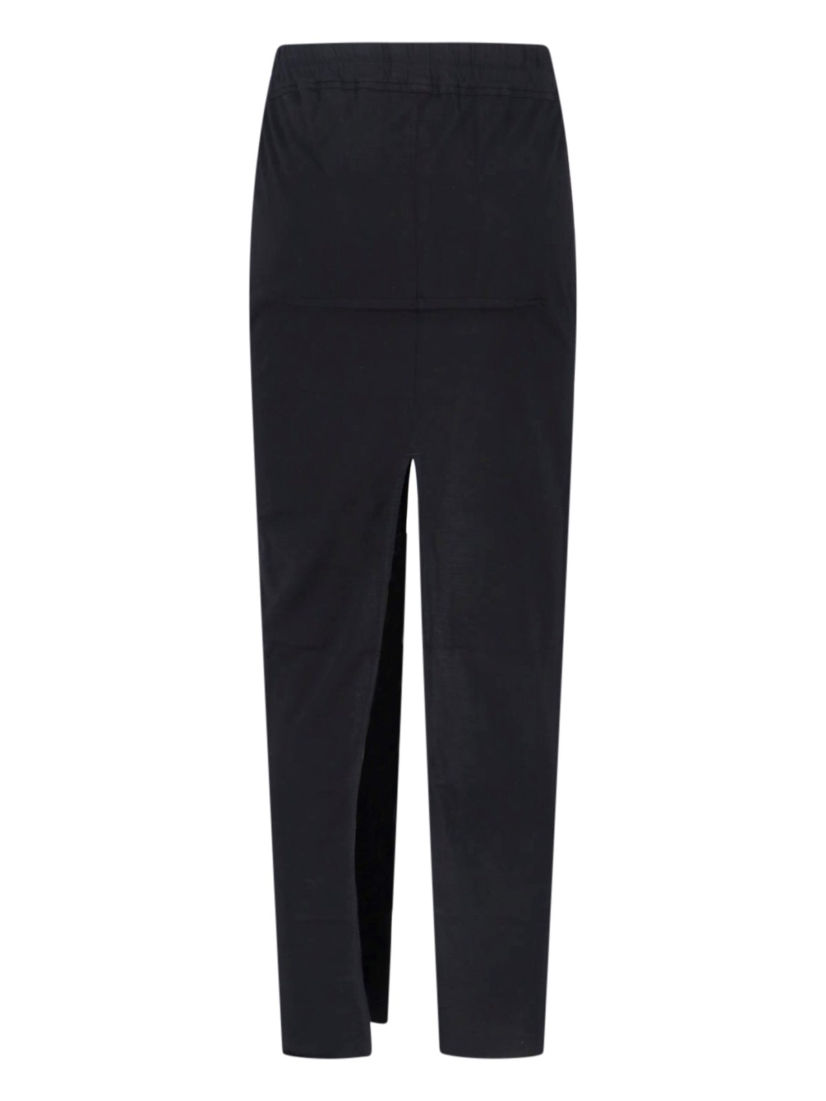 Rick Owens DRKSHDW black cotton midi skirt with elastic mid waistband, central front and back split, straight hem.
