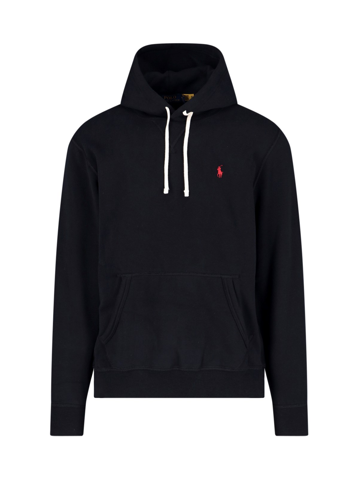 Polo Ralph Lauren black hoodie in cotton blend with logo embroidery on the chest, drawstring on the hood, ribbed cuffs and hem and maxi front pocket.