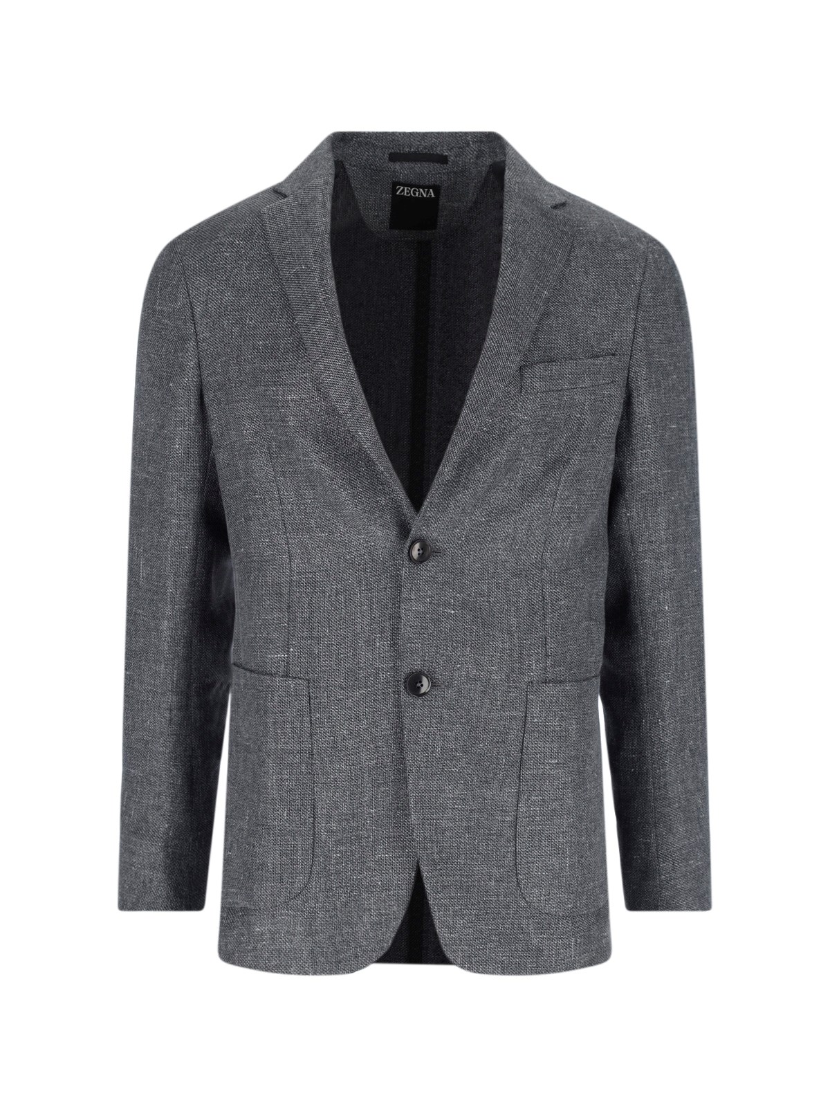 Zegna single-breasted blazer in linen and wool blend, V-neck, single-breasted source closure, long sleeves, two front pockets, a welt pocket on the chest, straight hem.