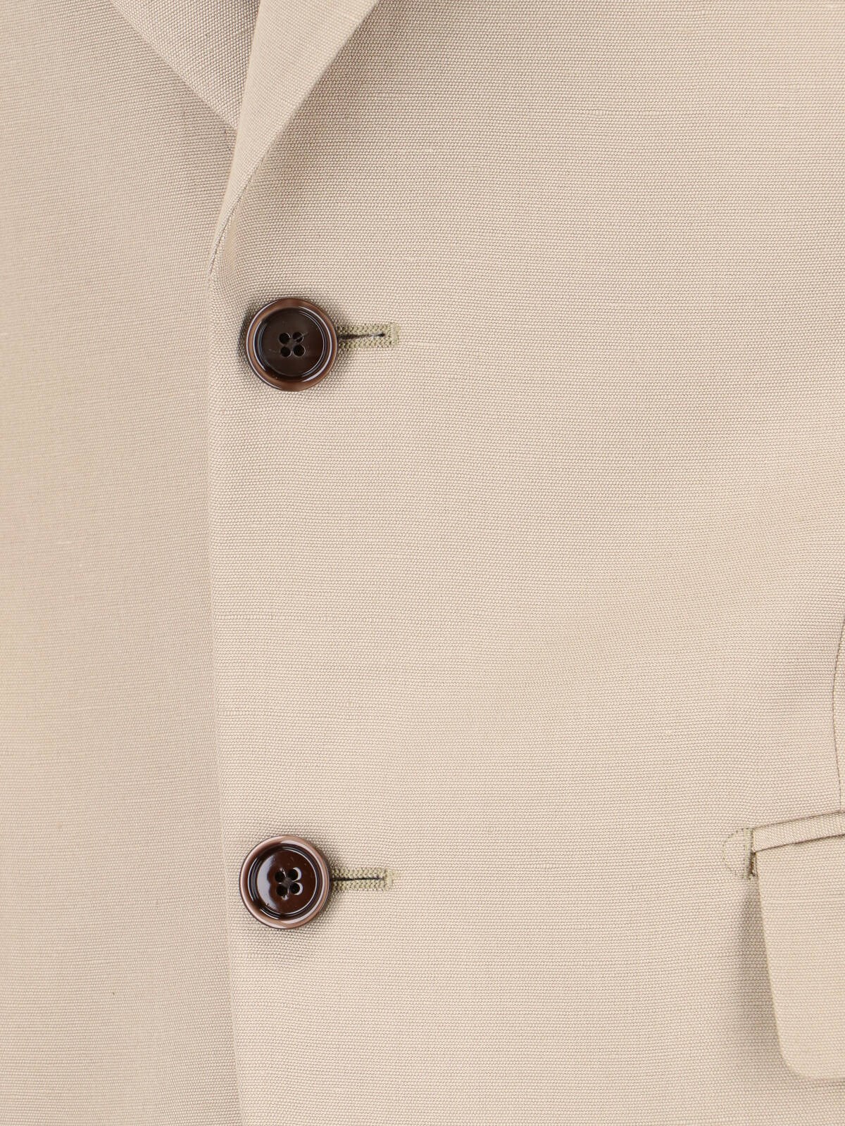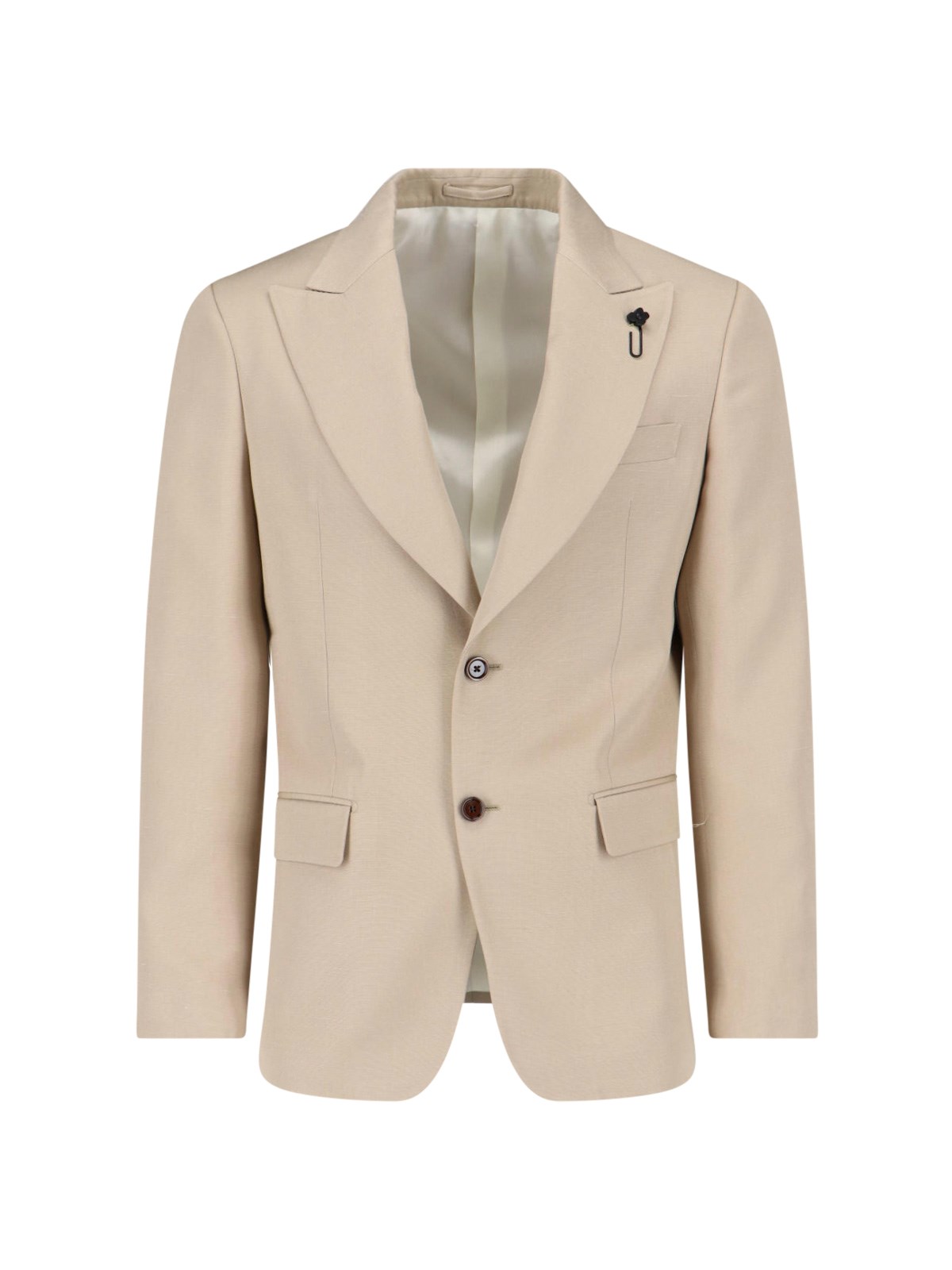 Lardini single-breasted blazer in beige fabric with spear lapels with removable pin detail, button closure, flat chest pocket, two front welt pockets, button cuffs, straight hem.