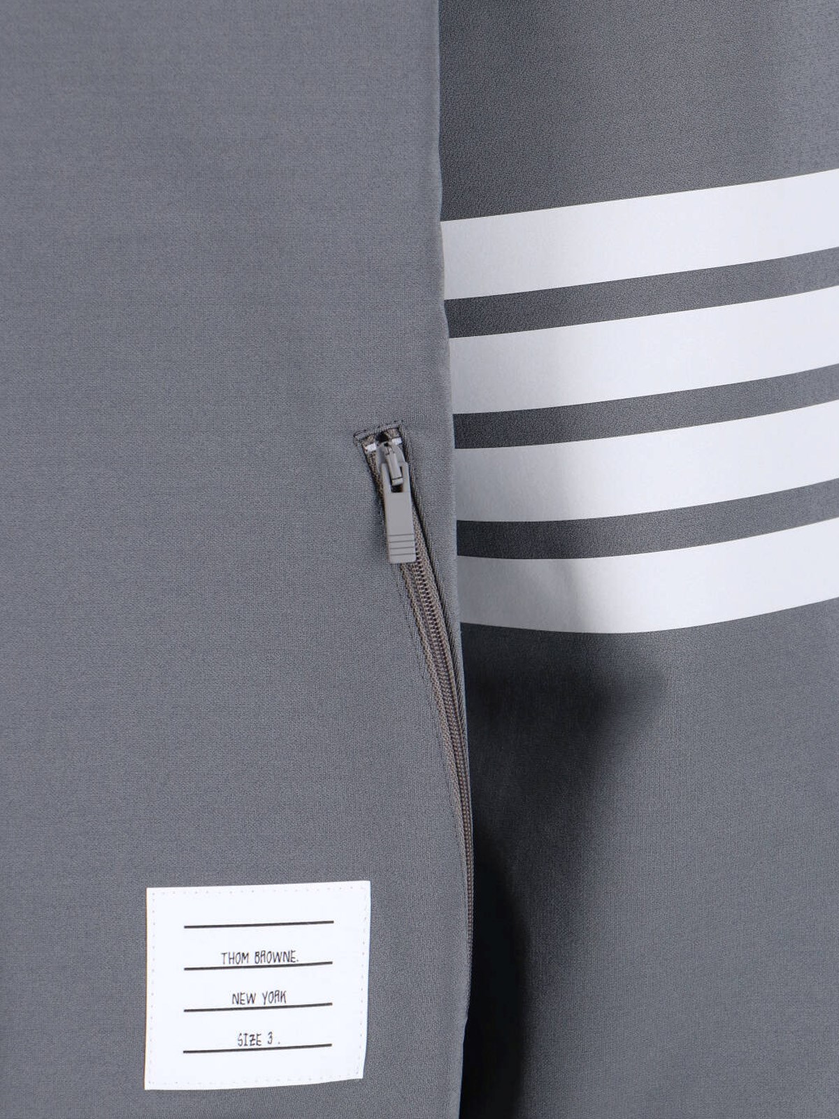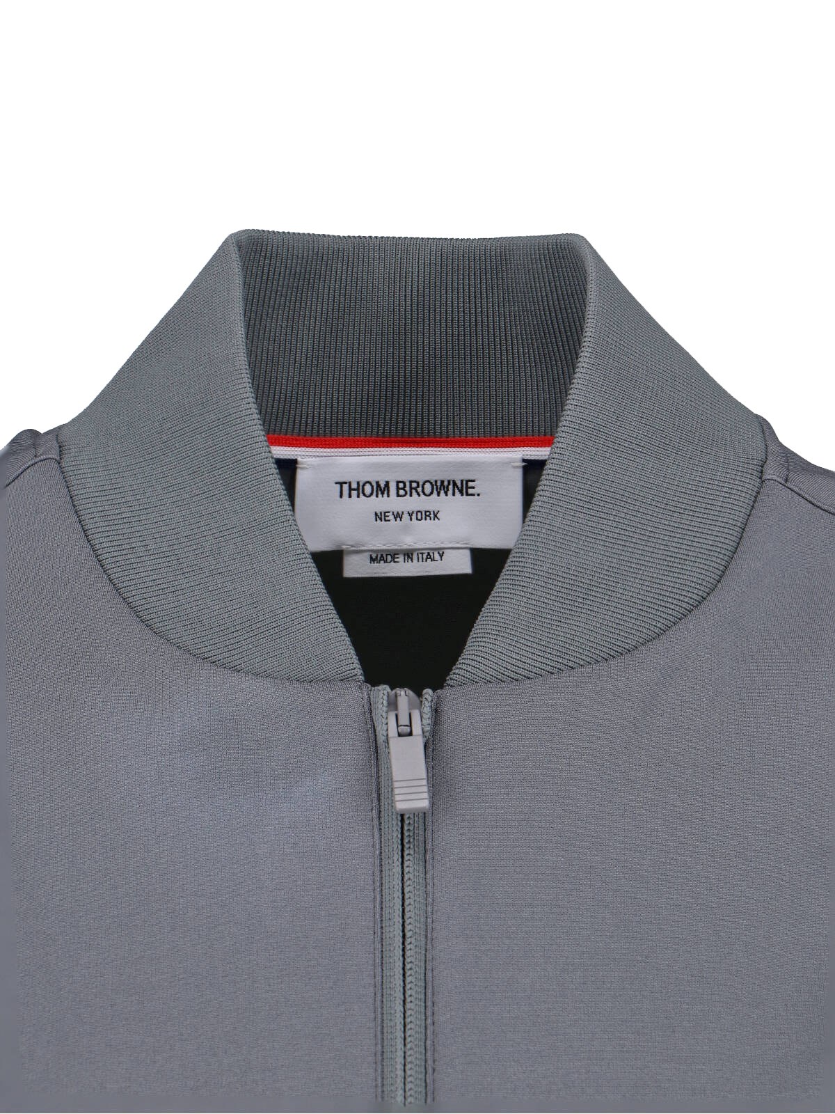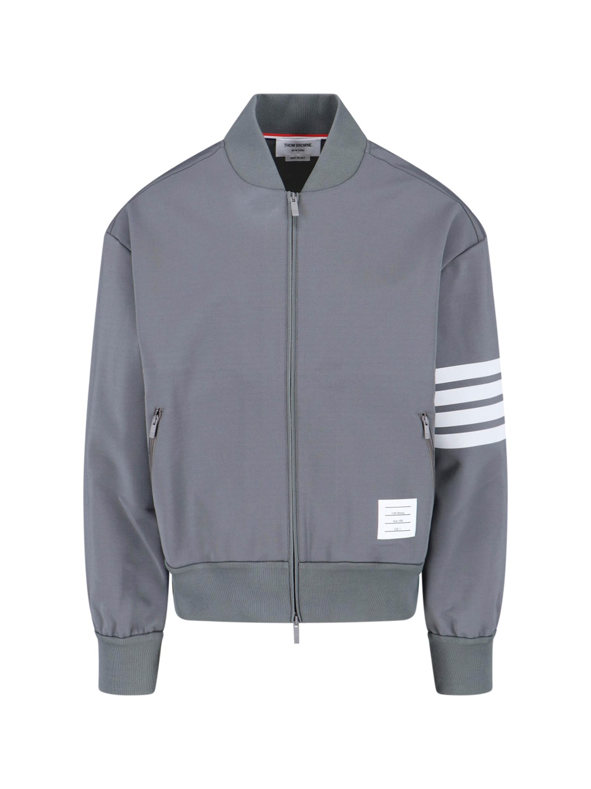 Thom Browne "4 Bar" grey viscose blend bomber jacket with zip closure, long sleeves, "4 Bar" detail on the sleeve, logo patch, ribbed trims, straight hem.