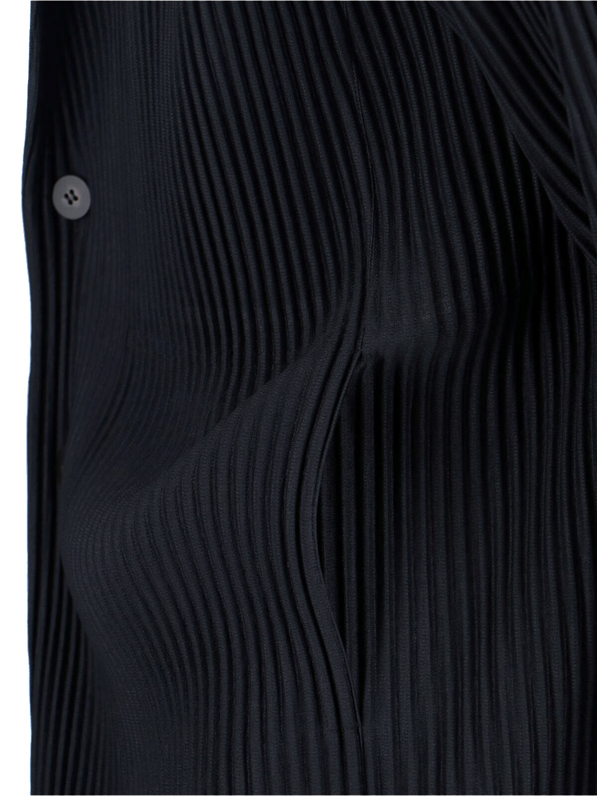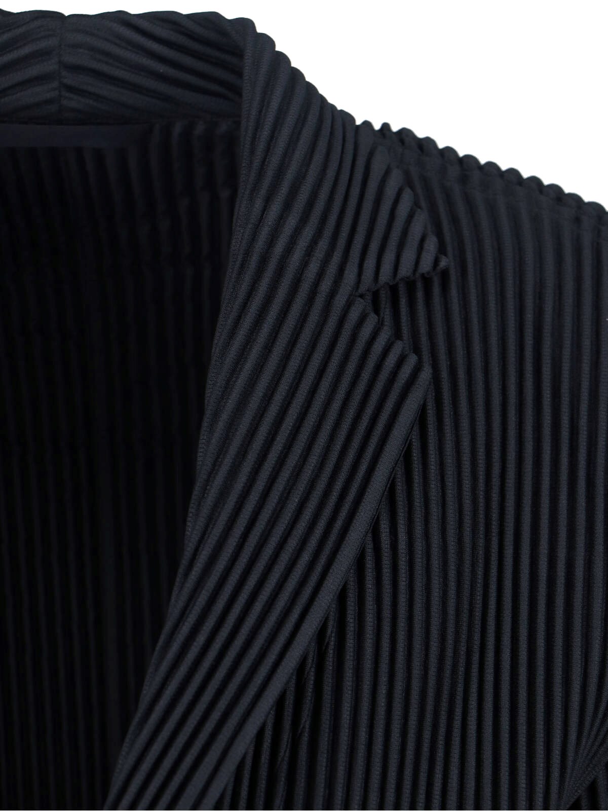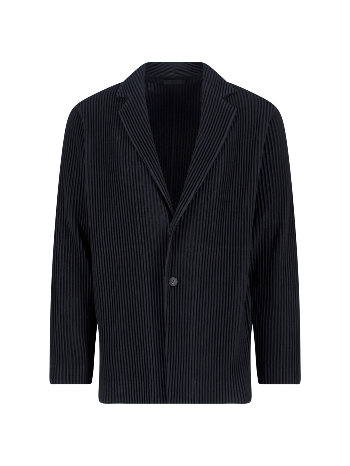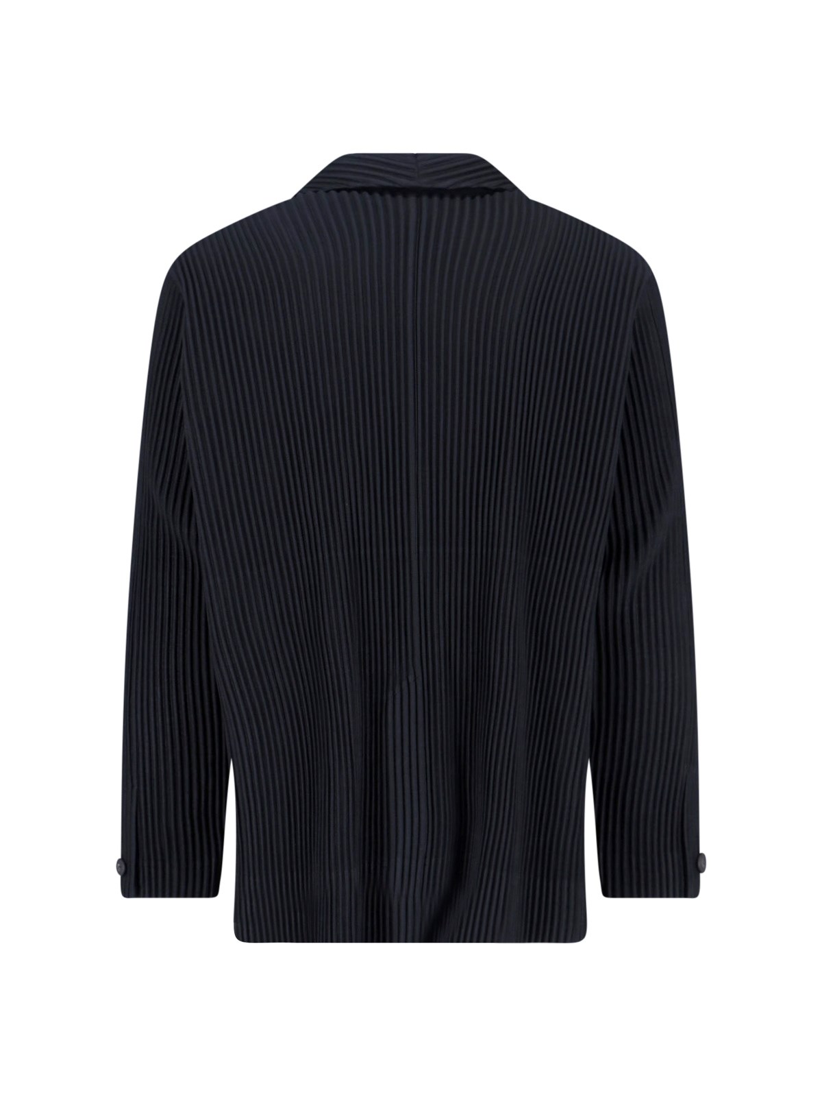 Homme Pleated single-breasted blazer in black fabric with V-neck, lapels, long sleeves, single-breasted button closure on the front, straight hem.