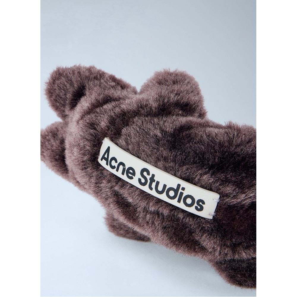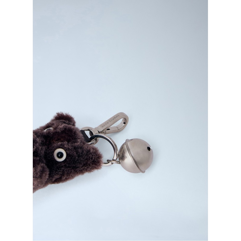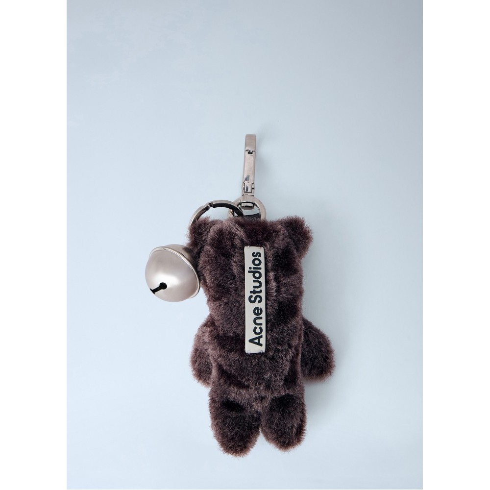 Plush bear keyring with metal bell attachment.