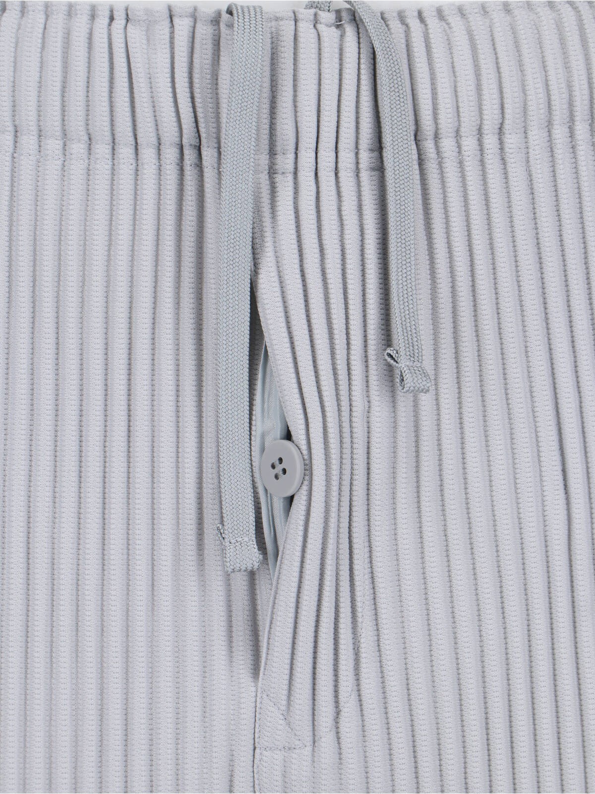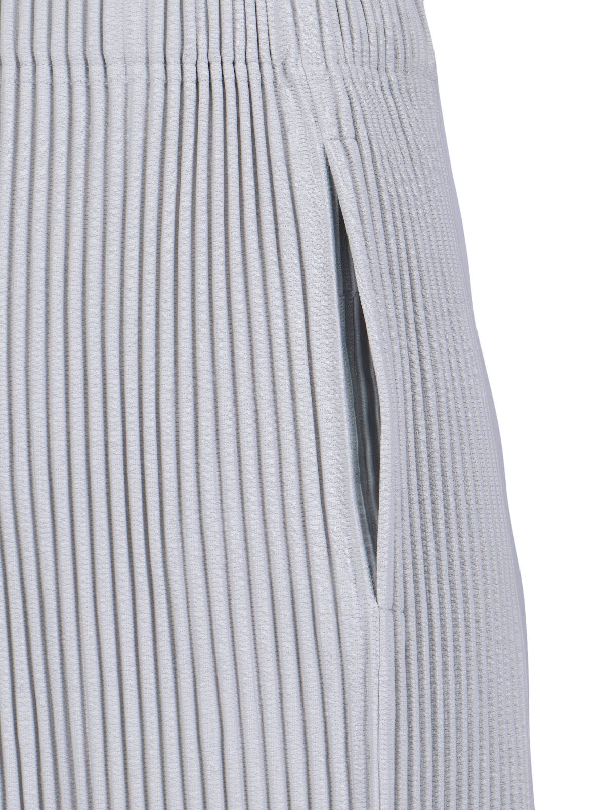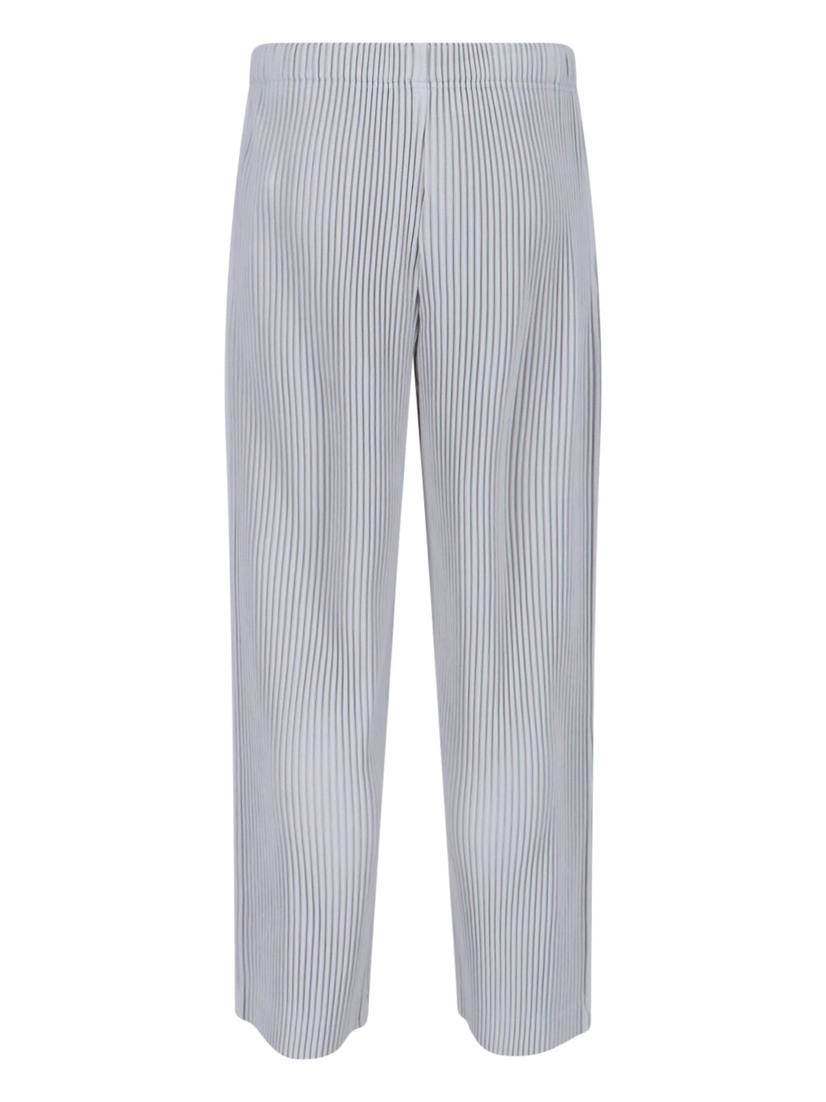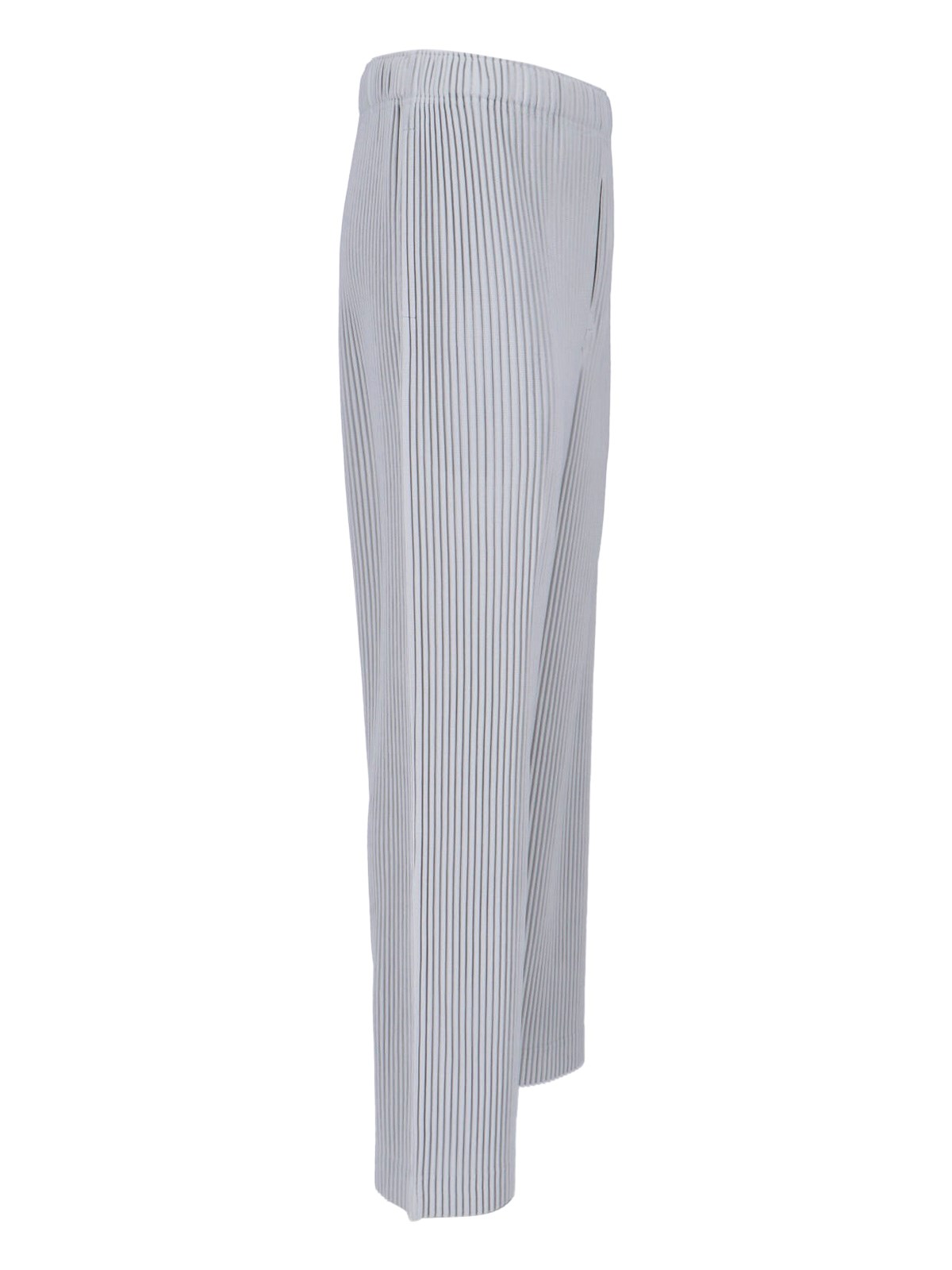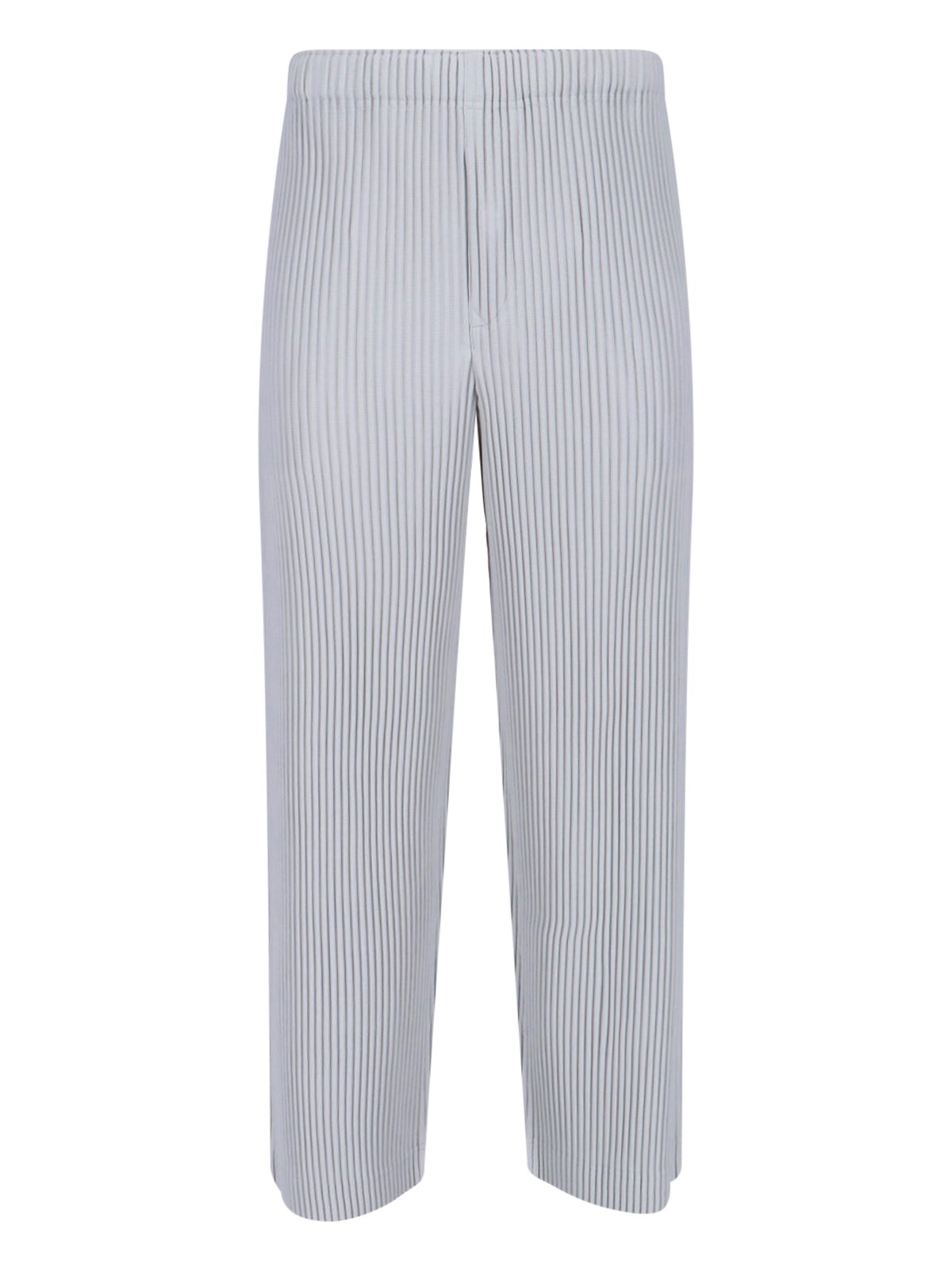 Homme Plisse pleated trousers in grey fabric, mid-rise, button closure, two side pockets, front pleats, straight leg.