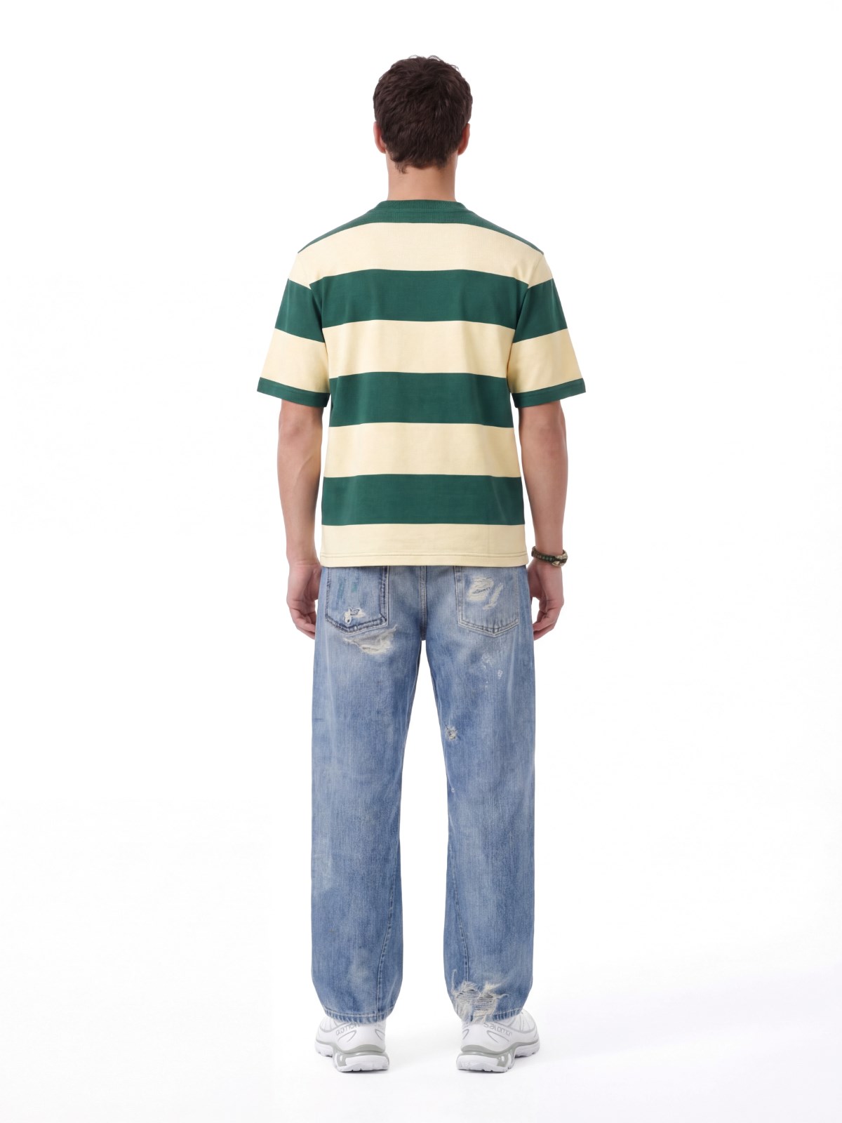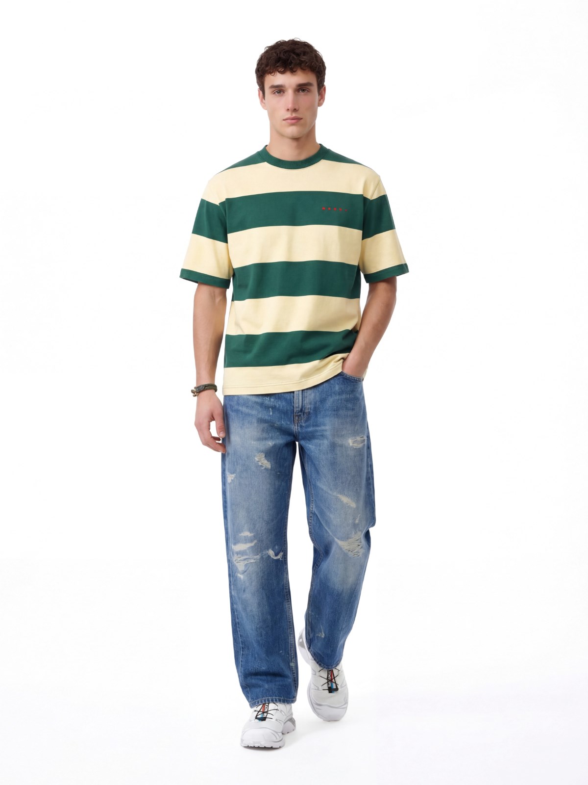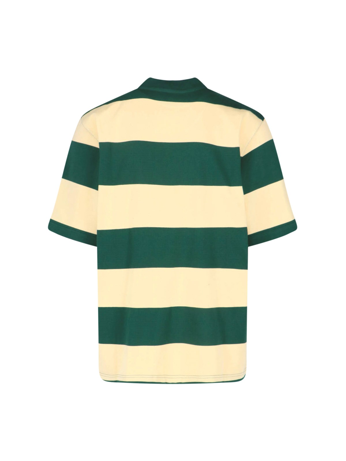 Marni striped yellow cotton crew neck t-shirt with short sleeves, dropped shoulders, contrast logo embroidery on the front, straight hem.