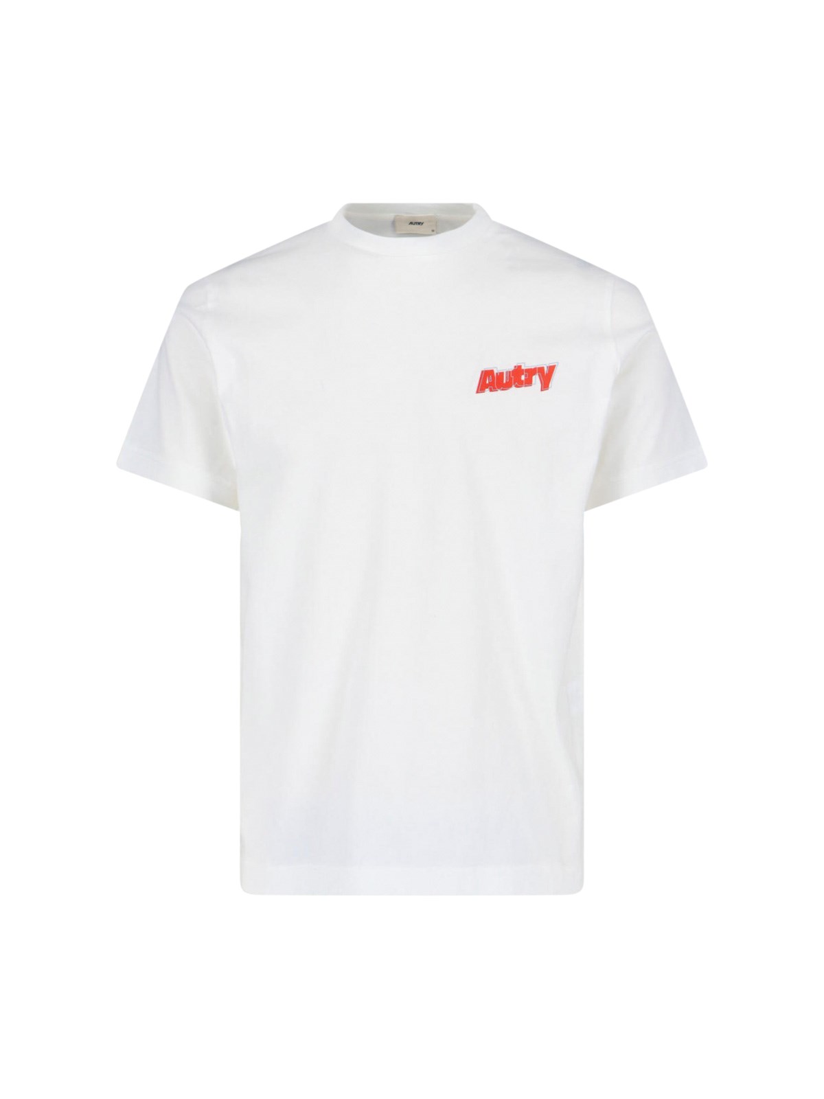 Autry logo T-shirt in white cotton with ribbed crew neck, short sleeves, contrast logo print on the front, ribbed trim, straight hem.