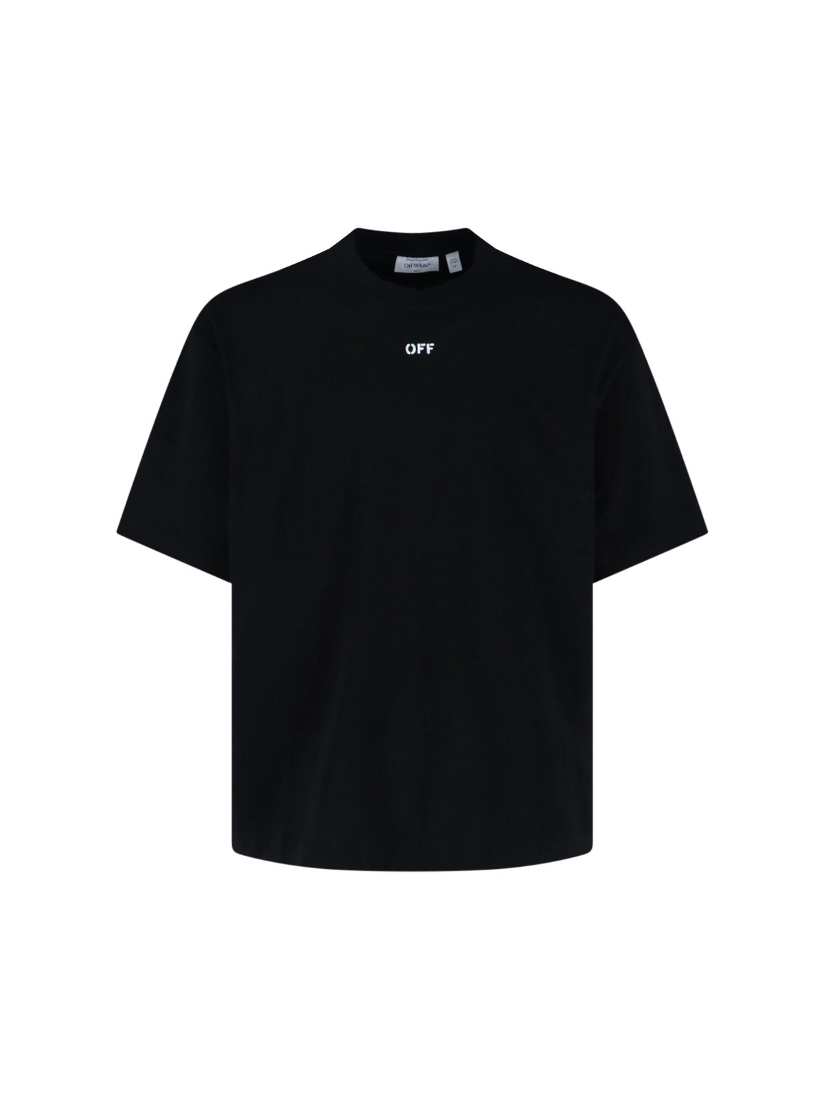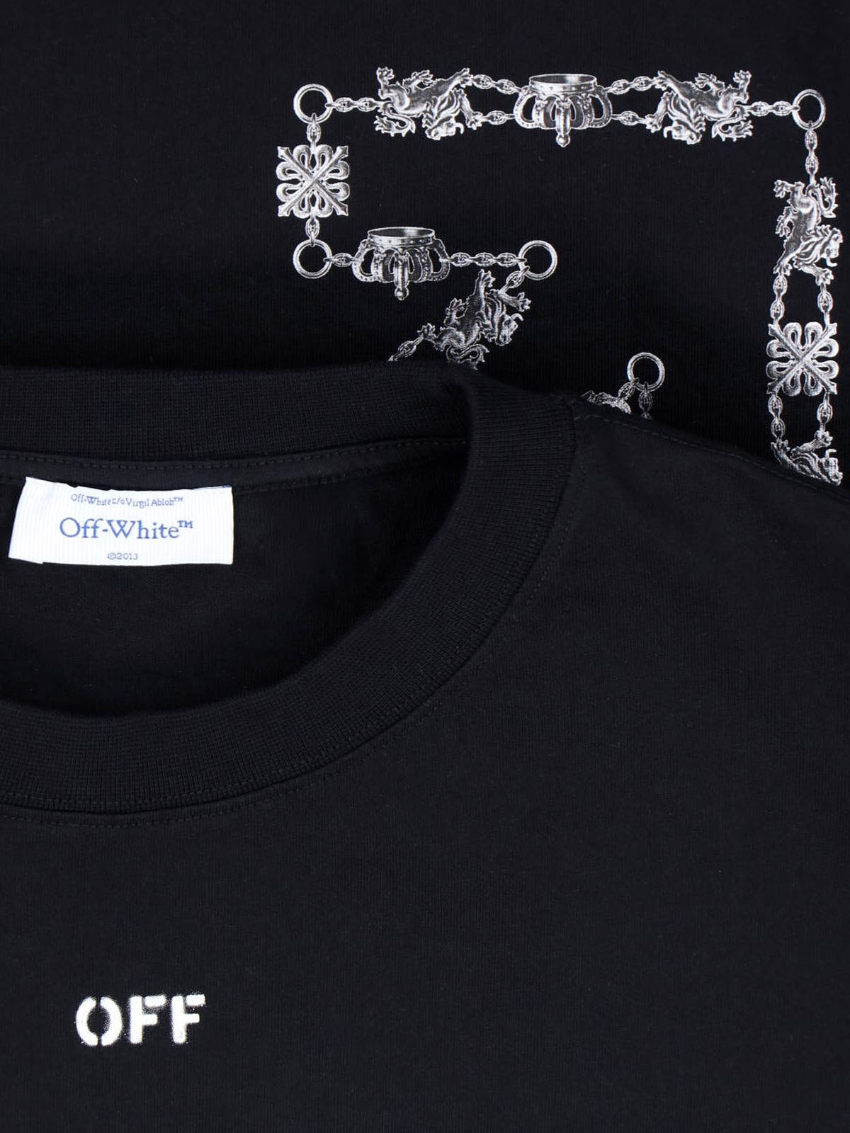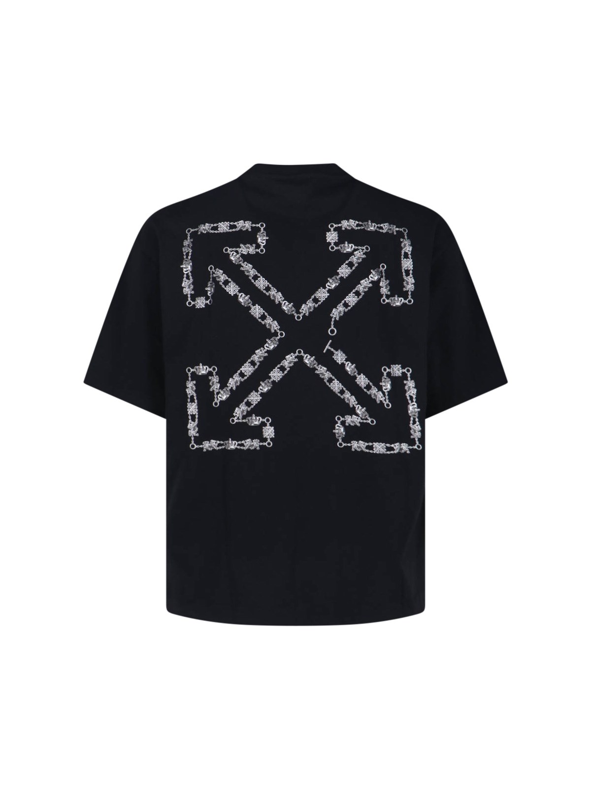 Off-White "Chain Arrow" black cotton crew neck t-shirt with dropped shoulders, short sleeves, logo print on the front, maxi arrow print on the back, ribbed trims, straight hem.