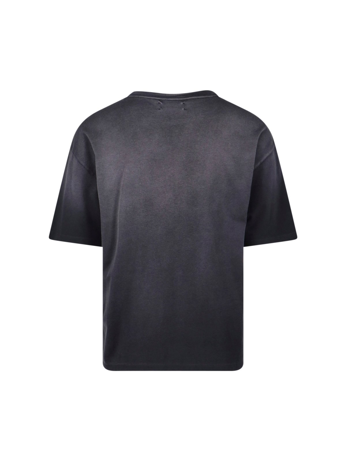 Amiri Spliced black cotton crew neck T-shirt with short sleeves, contrasting printed detail on the front, straight hem.