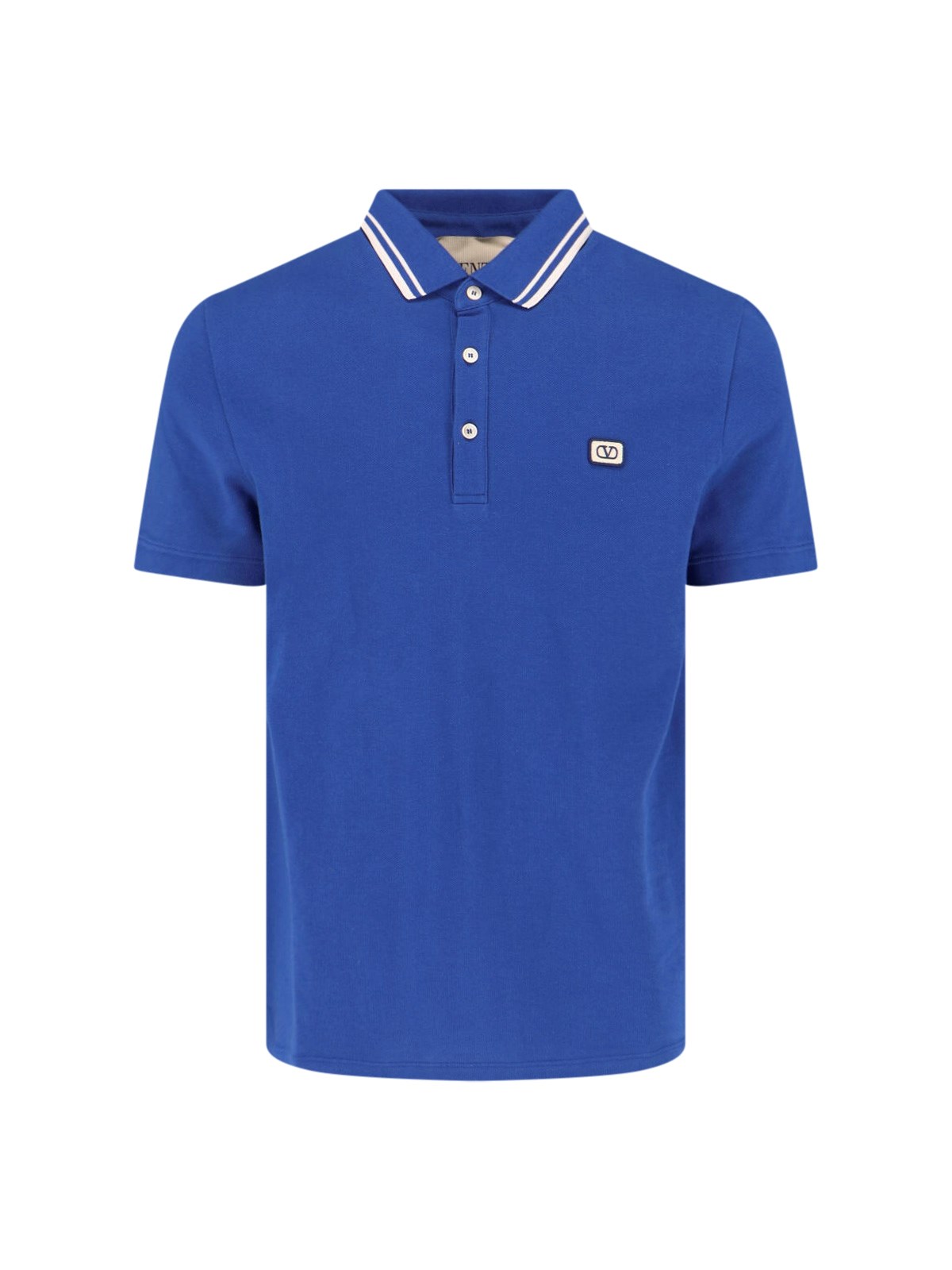 Valentino logo polo shirt in blue cotton with logo patch on the front, straight hem.
