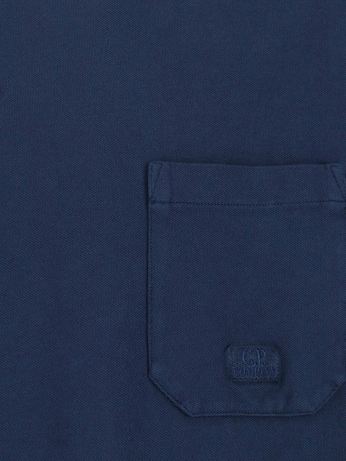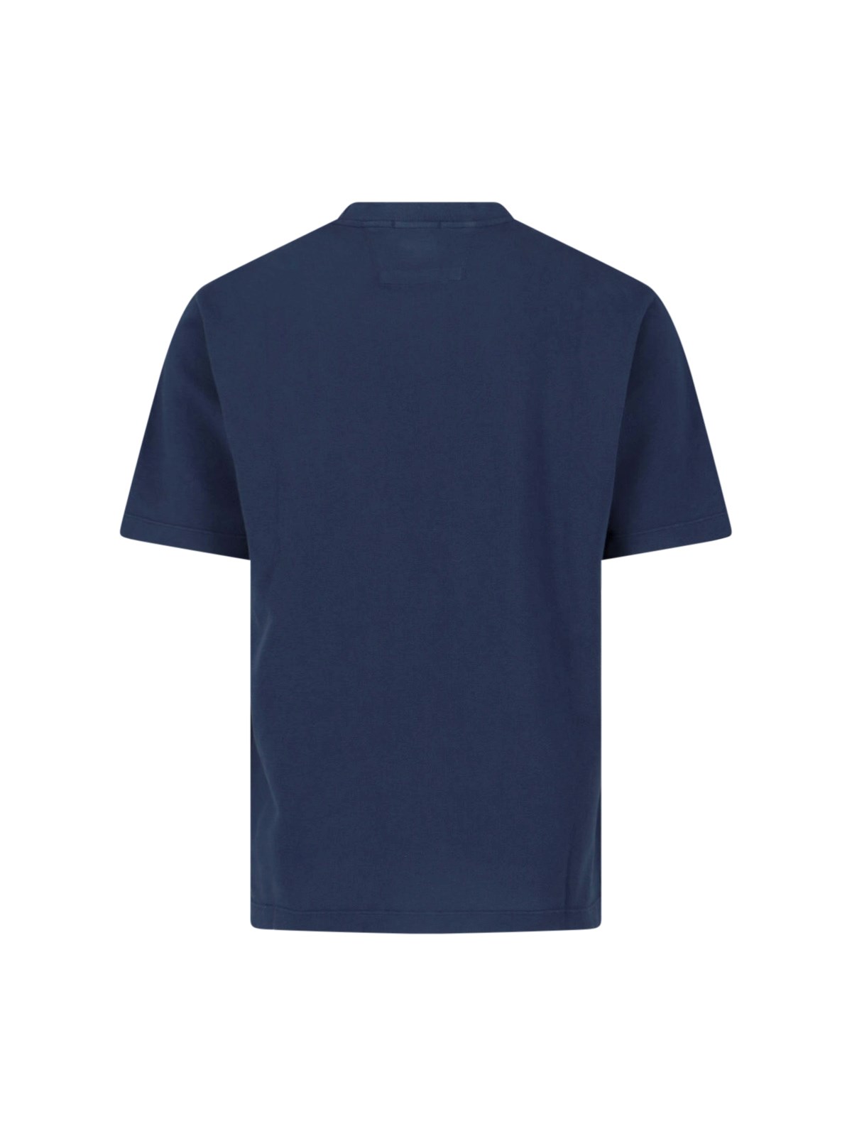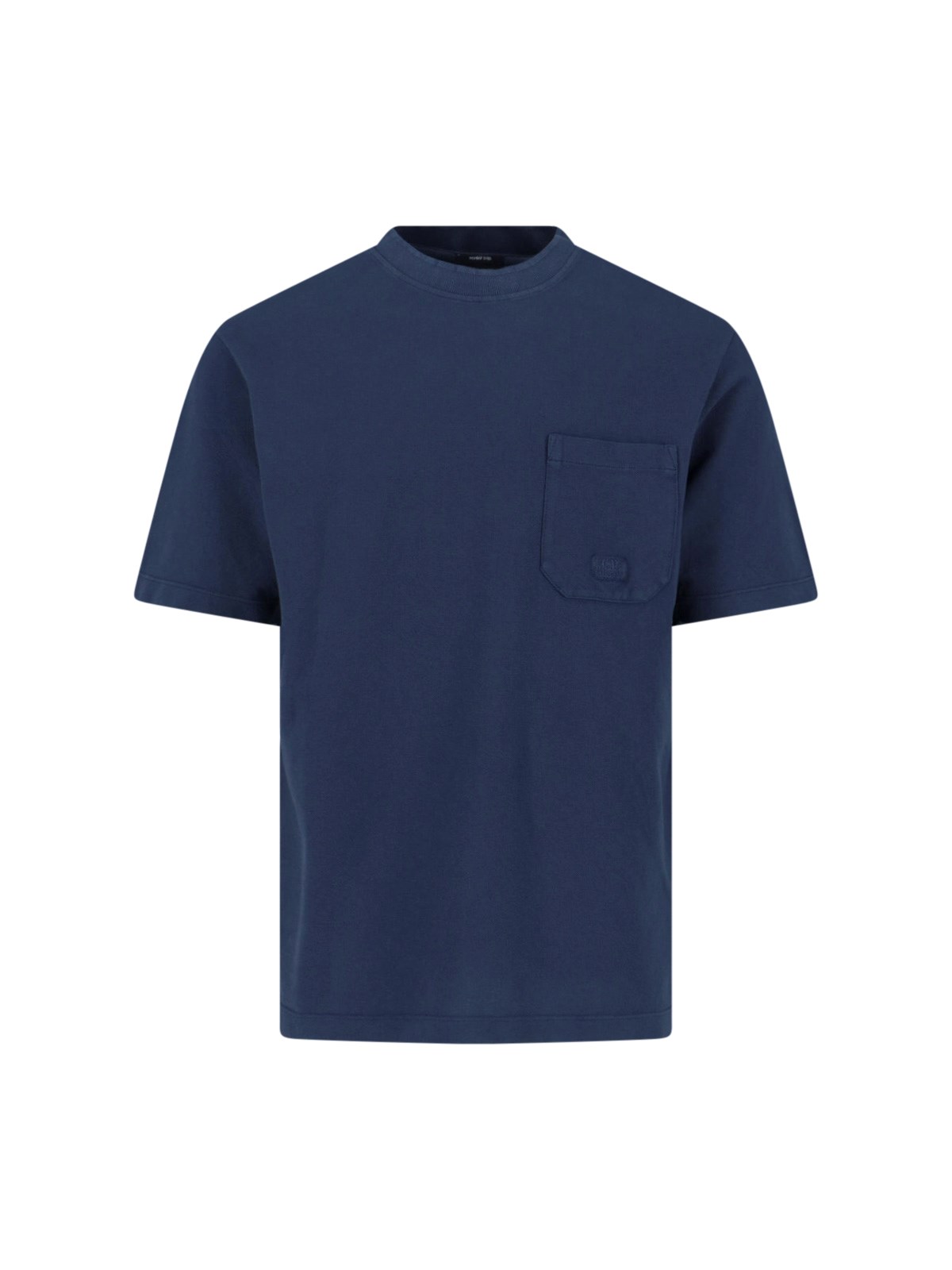 C.P. Company logo T-shirt in blue cotton, navy shade, crew neck, short sleeves, one front pocket, contrasting embroidered logo on the front, straight hem.