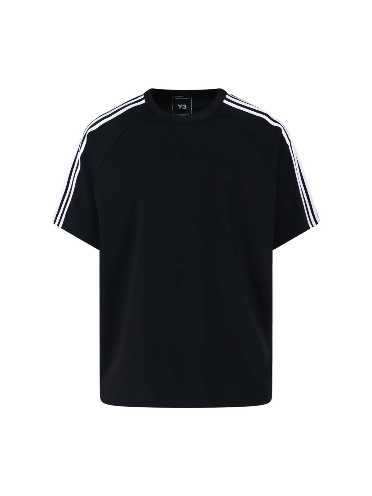 T-shirt logo Y-3. in black fabric, crew neck, short sleeves, contrasting bands on the sleeve, straight hem.