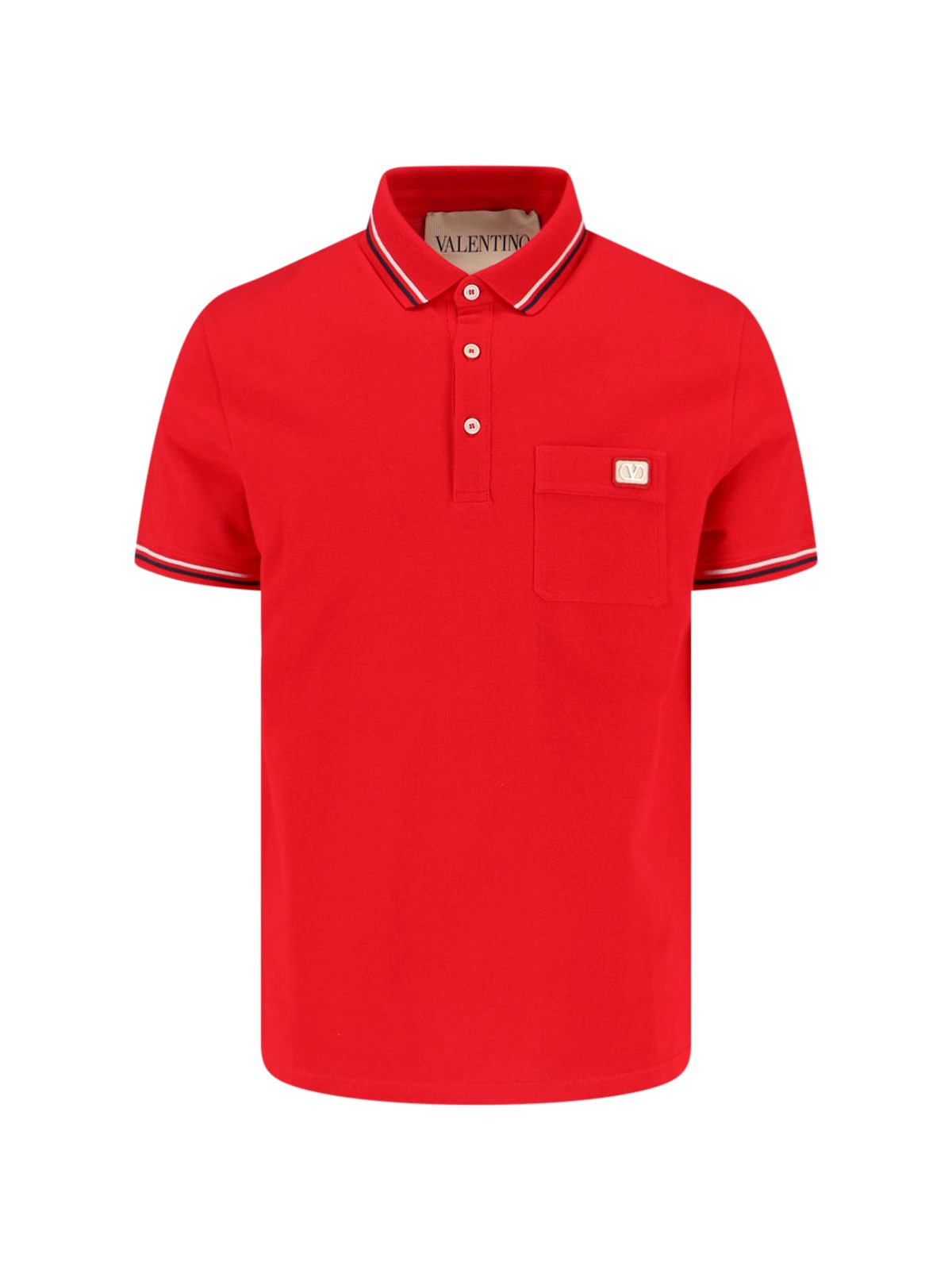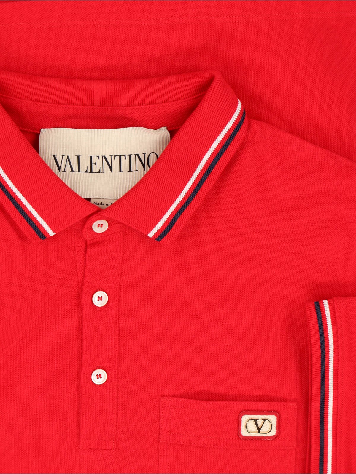 Valentino "VLogo Signature" red cotton polo shirt with collar, button closure, short sleeves, VLogo Signature logo on the front, contrast finishes, straight hem.